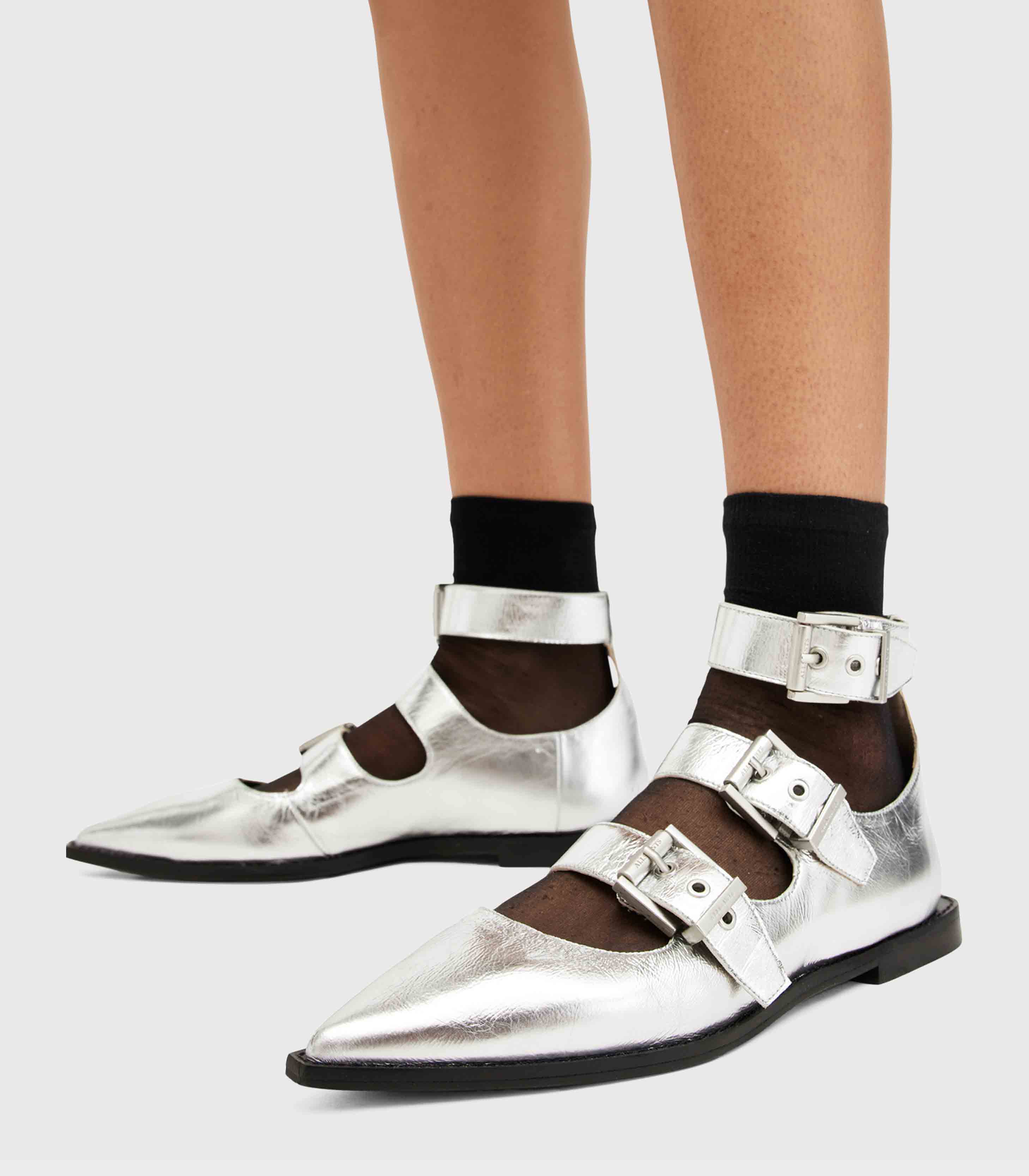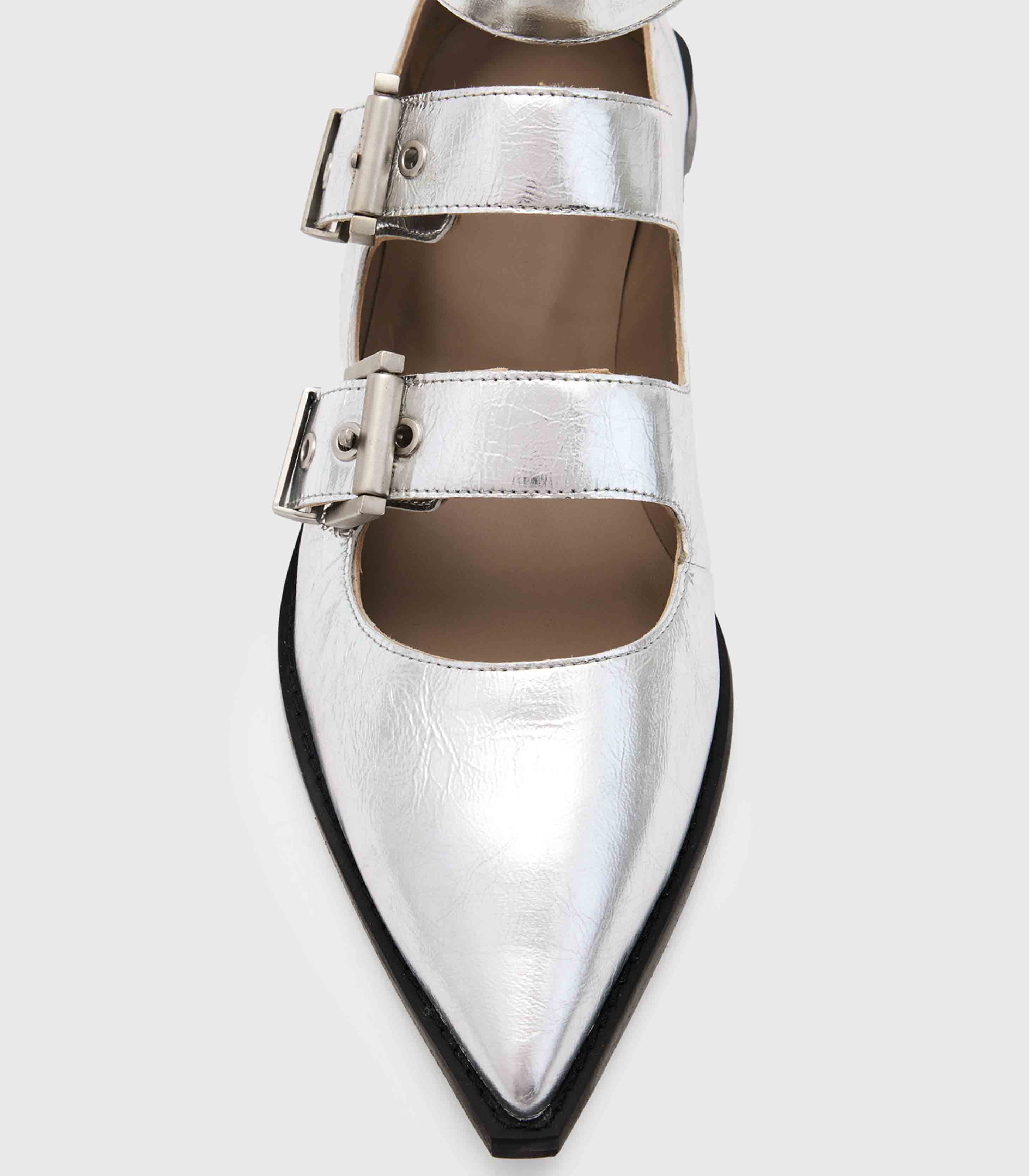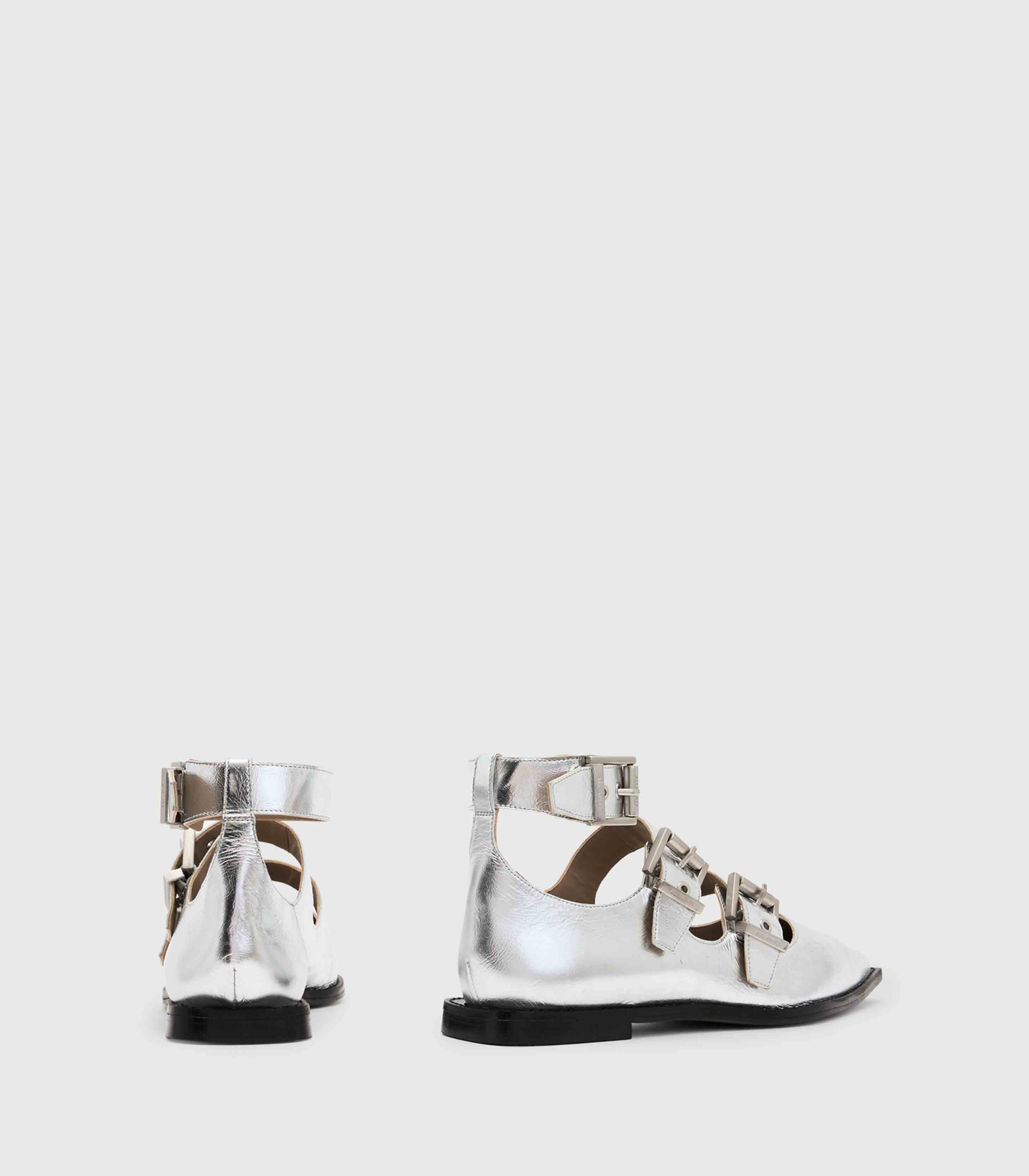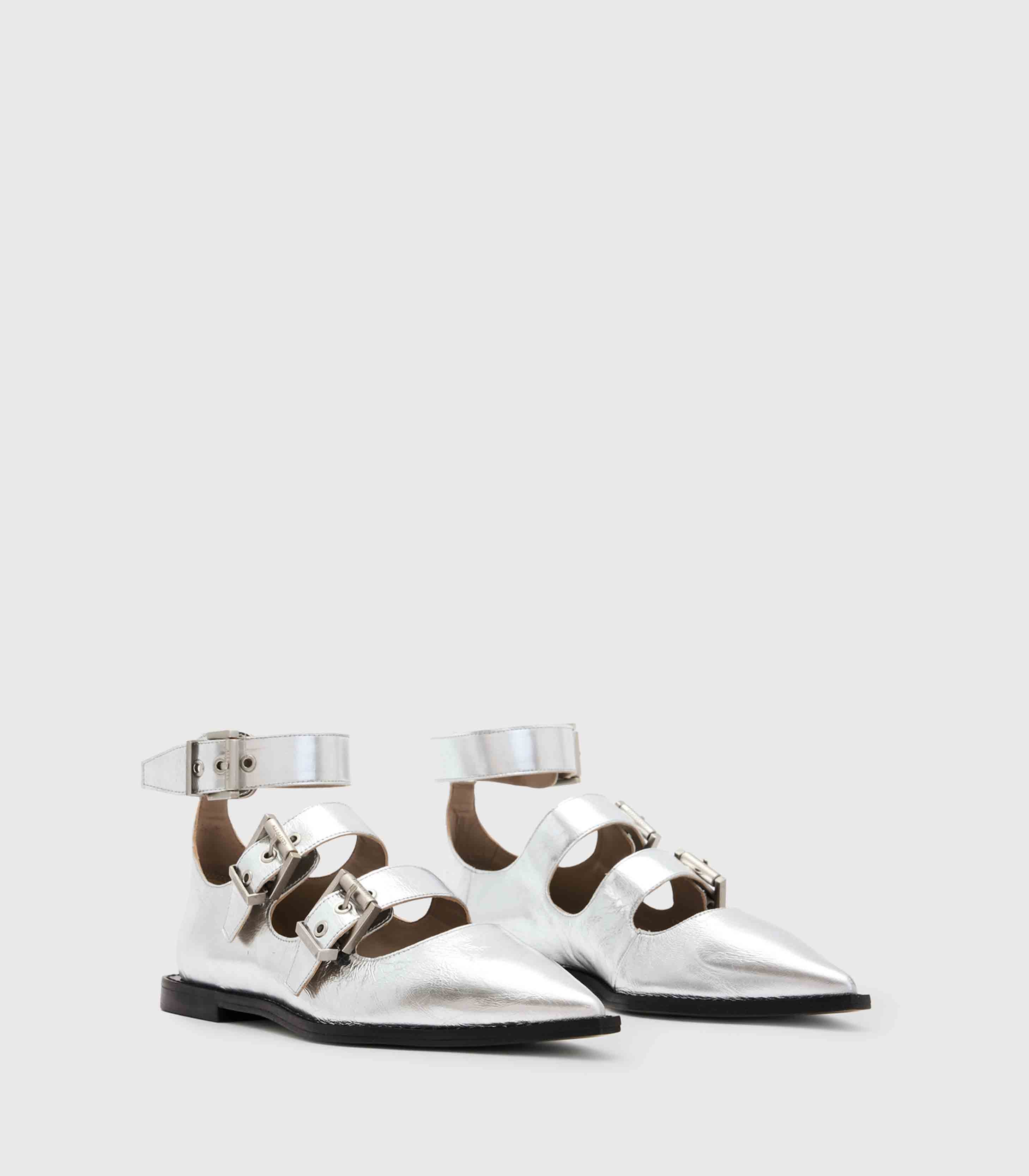 Allsaints- Susan Buckle Metallic Leather Shoes
