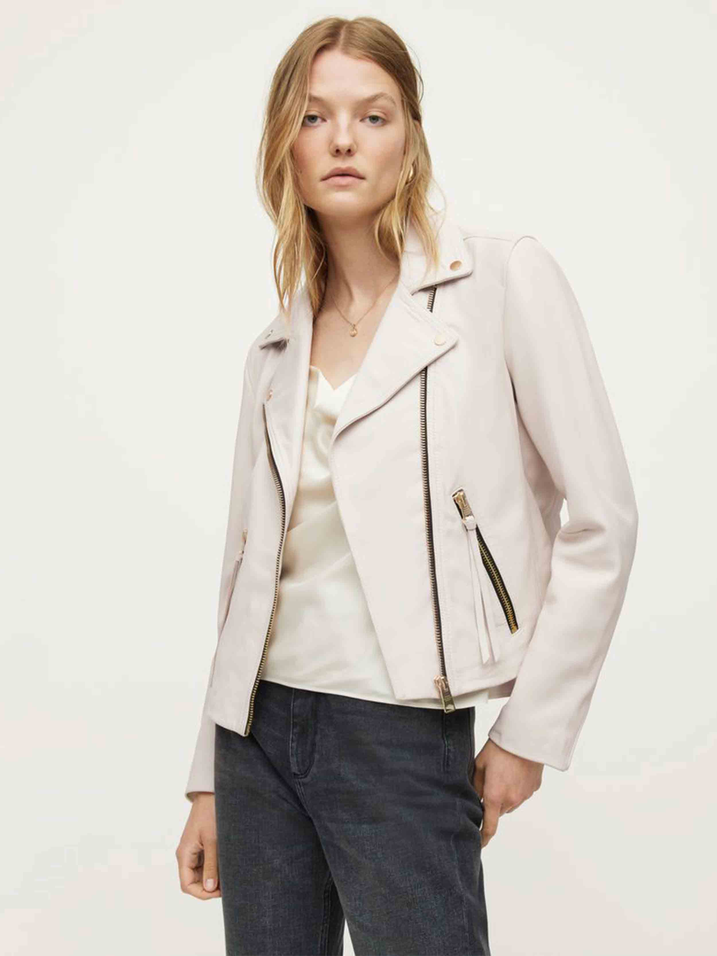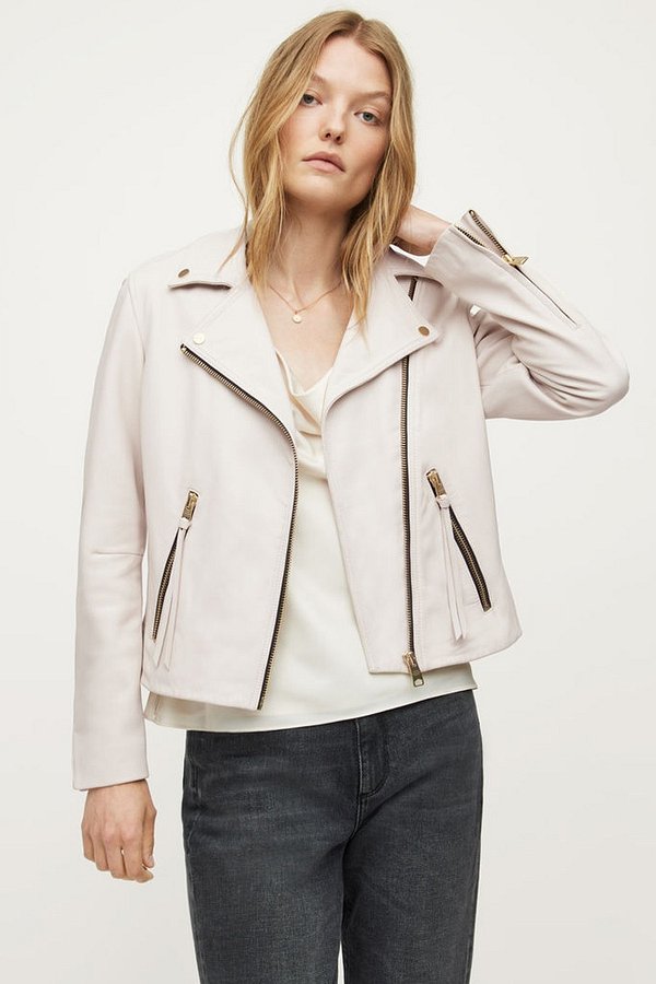 • Allsaints- Cream 'Dalby' Leather Jacket