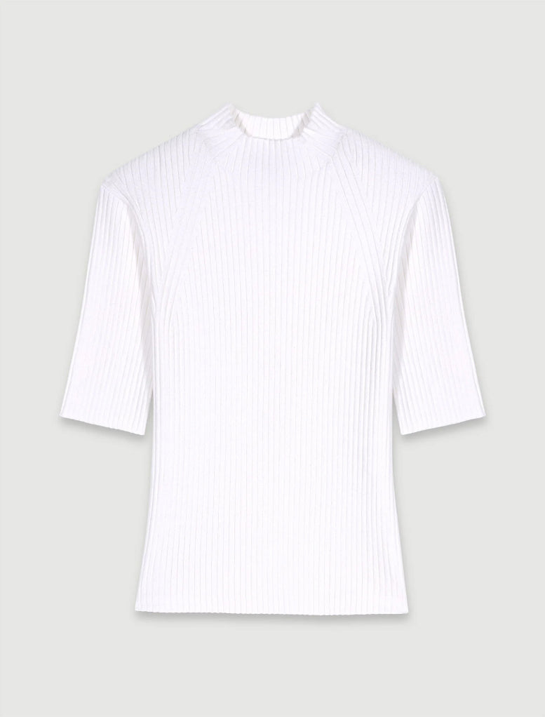 • Alongside a high neck and short sleeves, this rib knit jumper has a slim fit for a second-skin effect. Both chic and casual, a Clover tag on the back is a signature detail to accentuate your seasonal outfit.