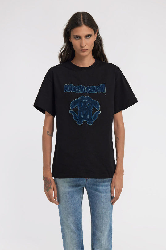 Roberto Cavalli - Embellished Logo Stretch Cotton T-shirt