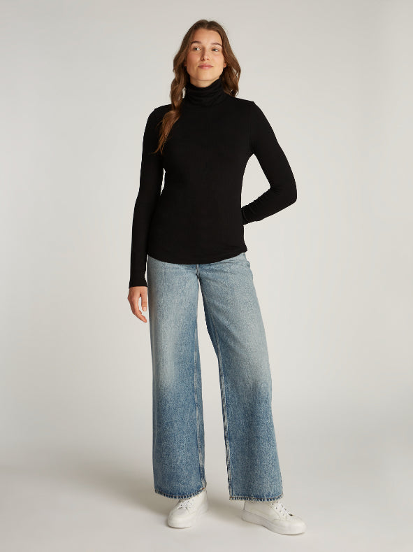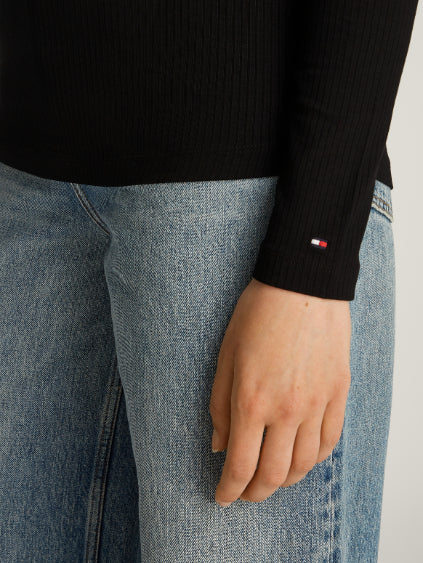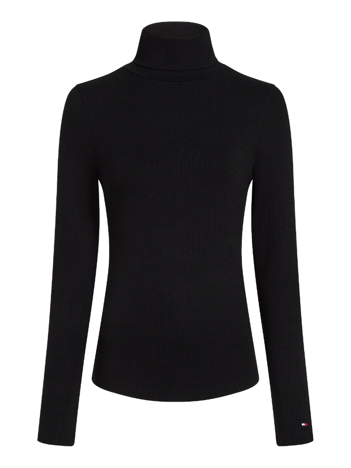 Tommy Hilfiger - SLIM 5X2 RIB ROLL-NK LS , L , Black , Style WW0WW39826