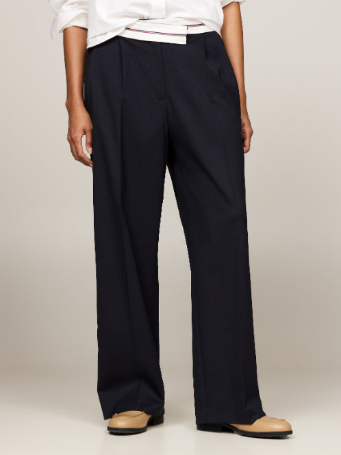 Tommy Hilfiger - Crossover Waistband Pleated Wide Leg Trousers
