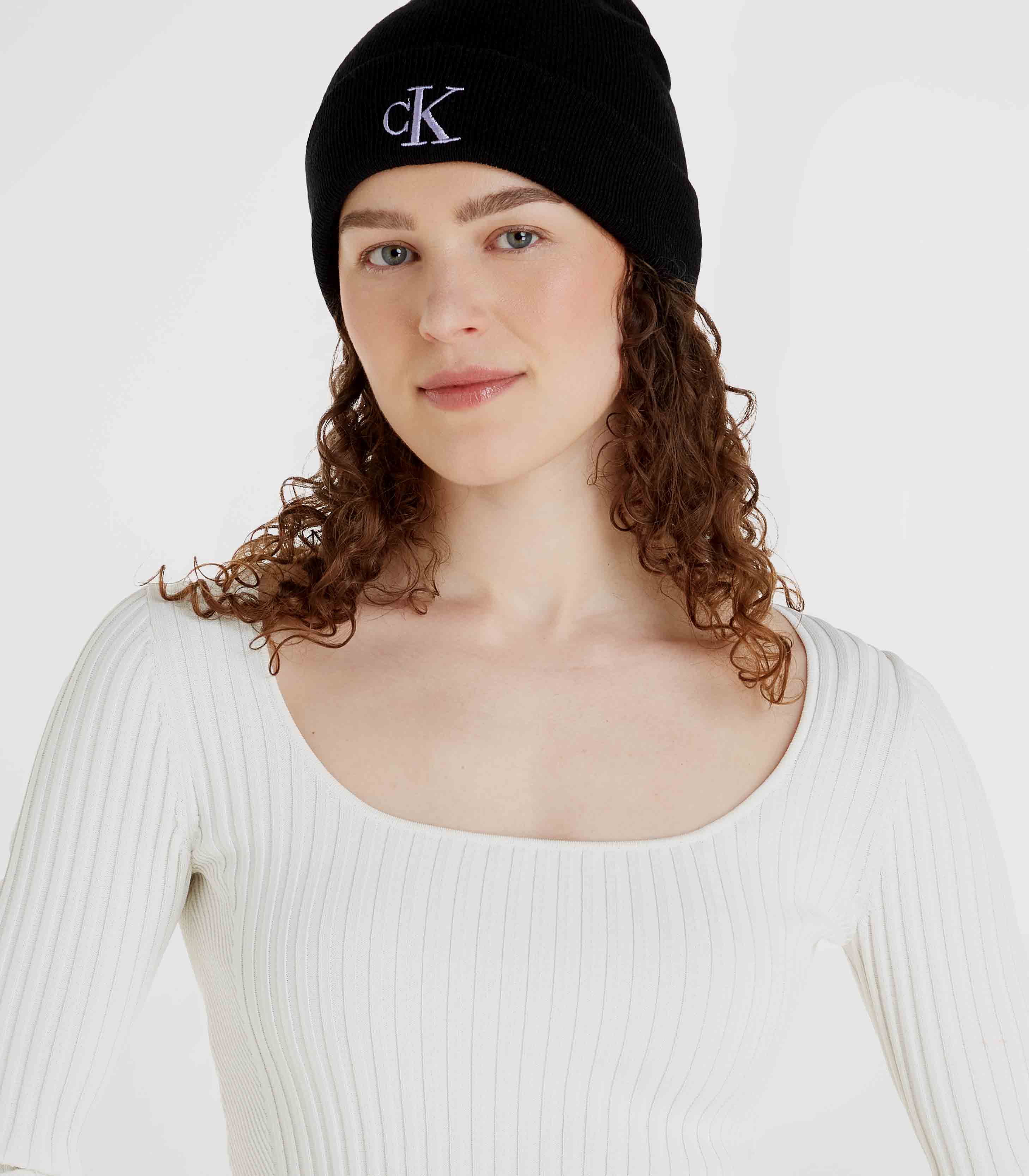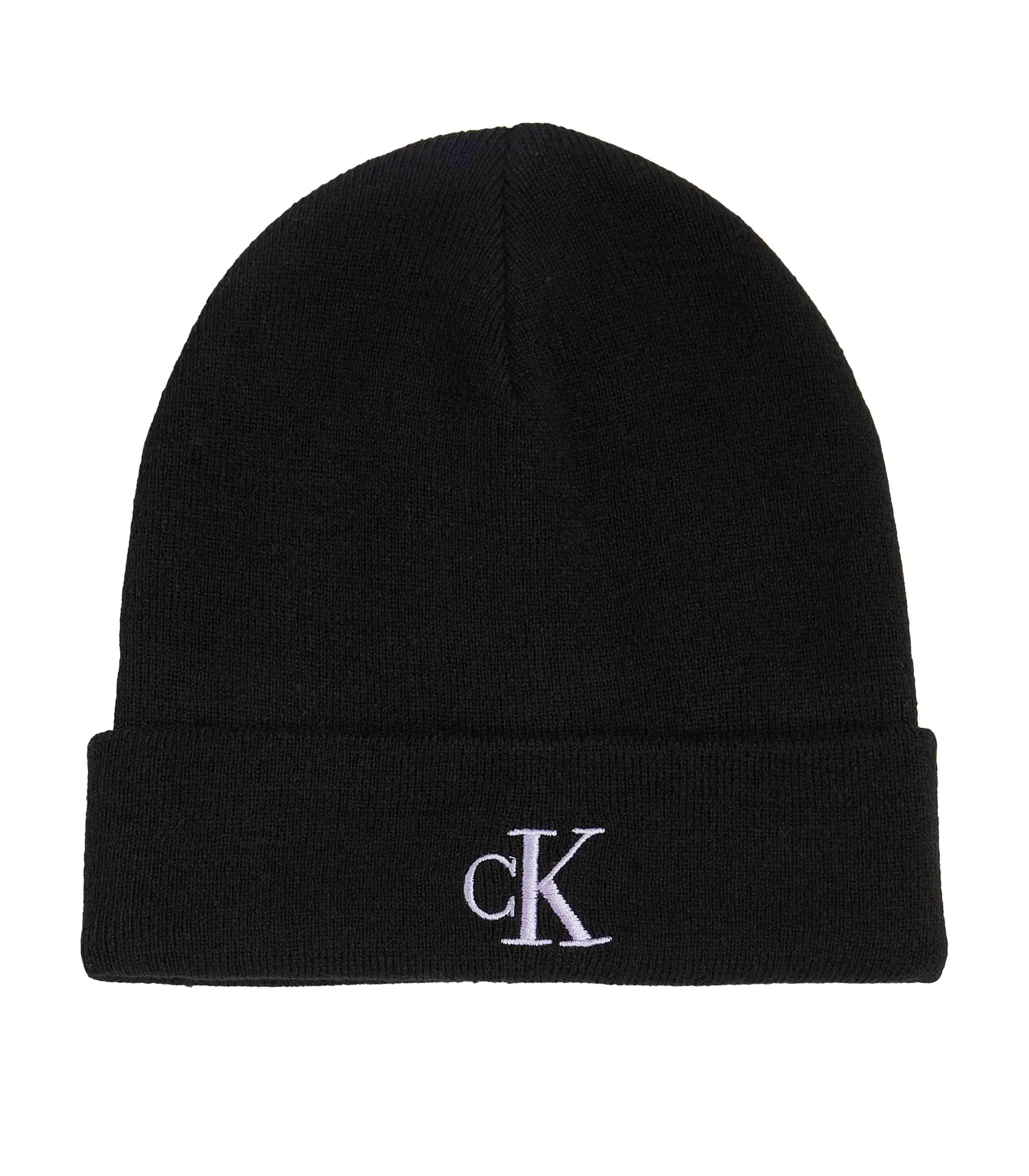 Calvin Klein - MONOGRAM EMBRO BEANIE , OS , Black/Pastel Lilac , Style K60K612319