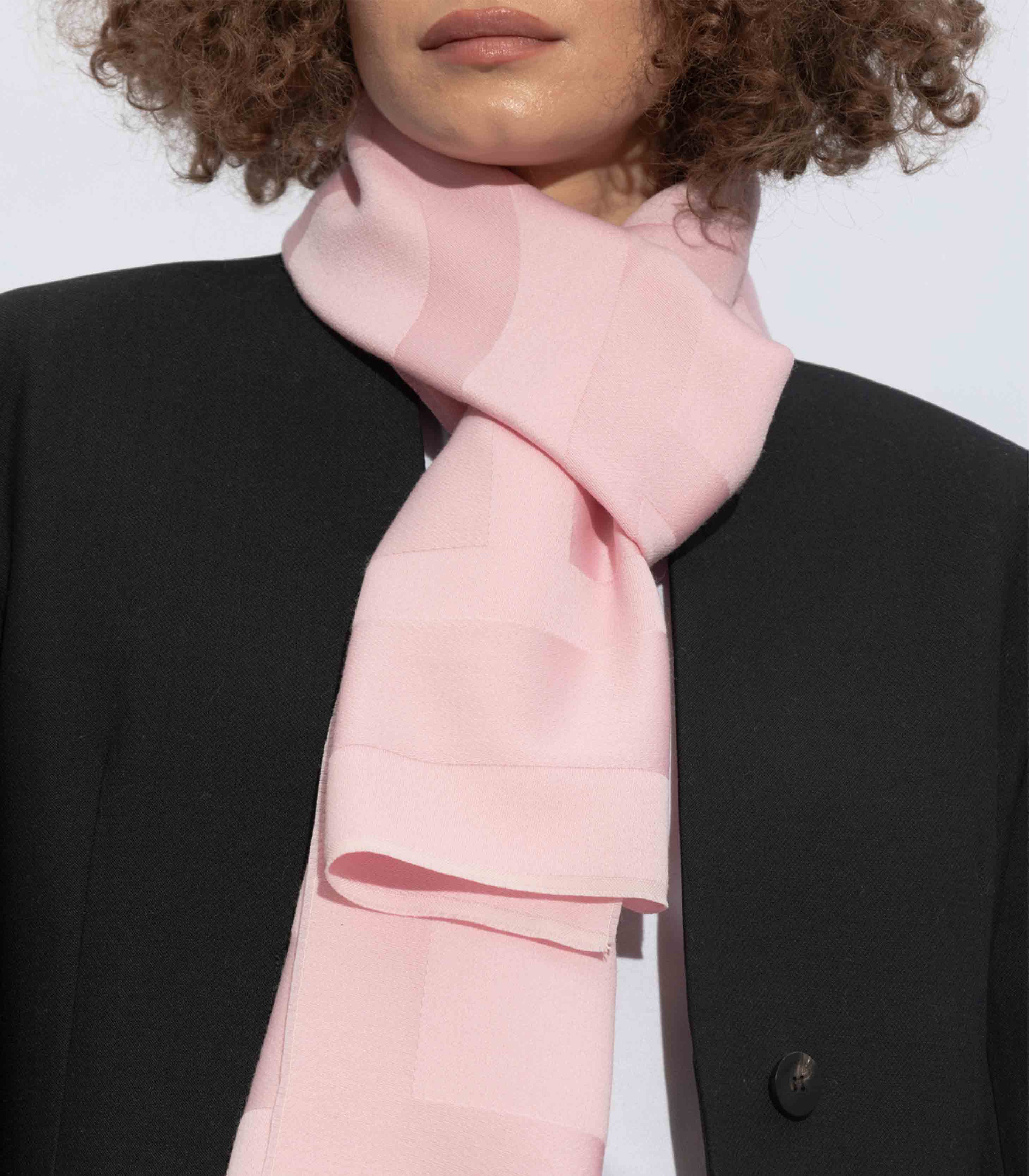 • This wool scarf features a rectangular shape with a tonal logo jacquard motif and is finished with neat edges for a refined and stylish look.