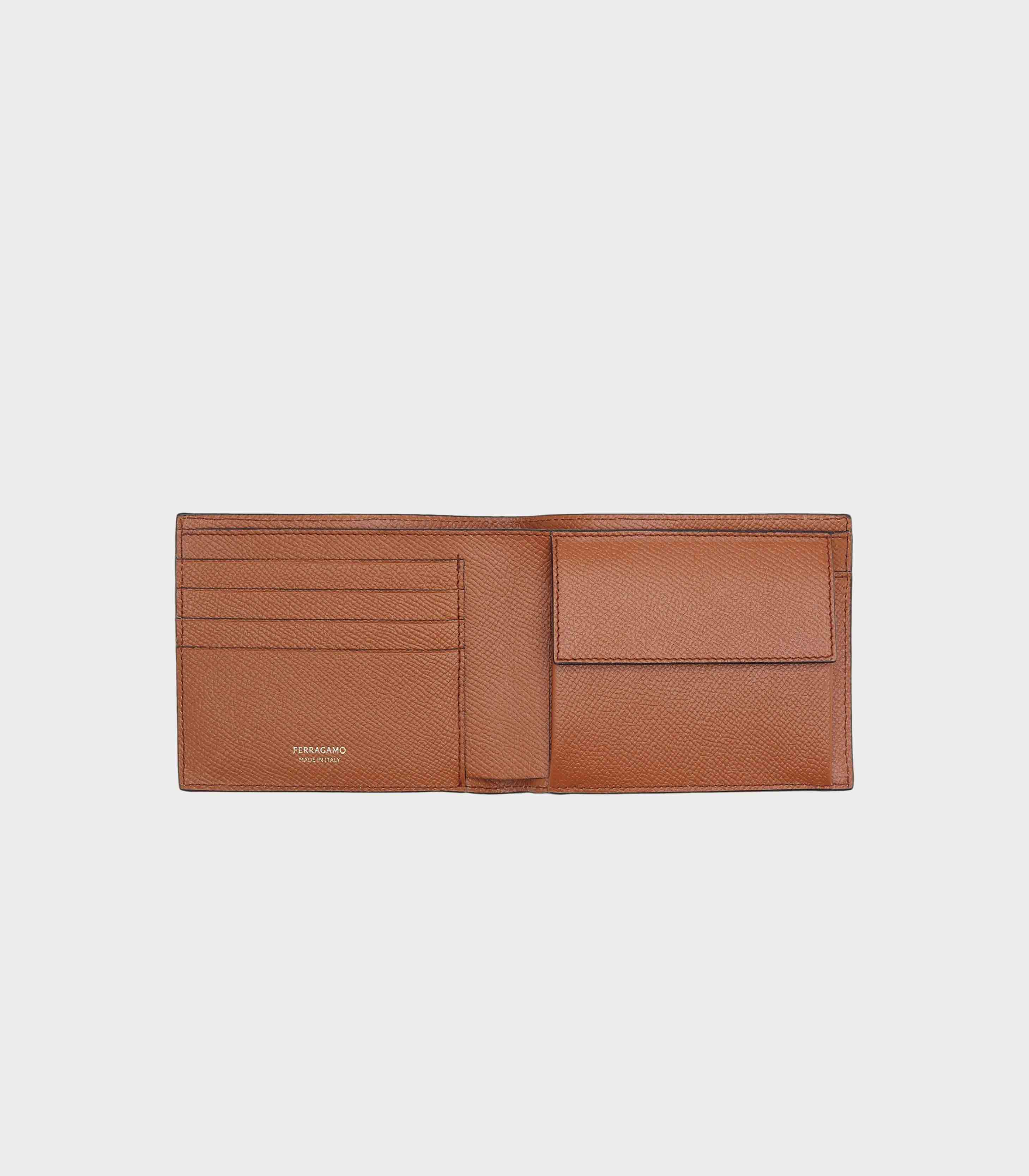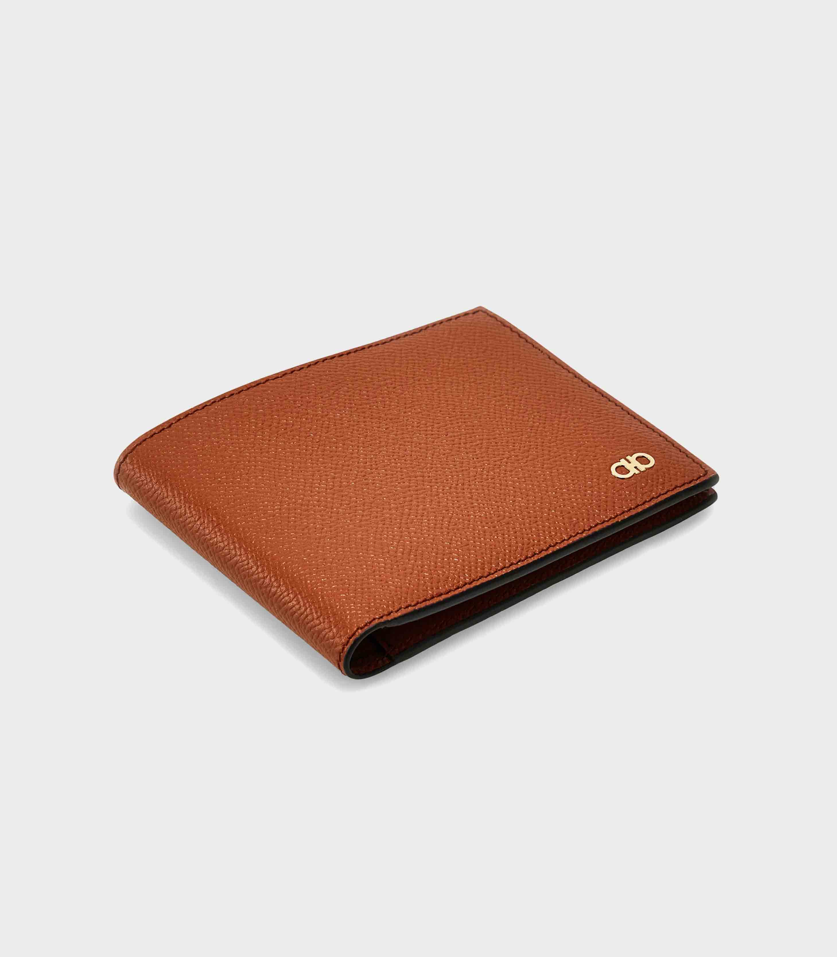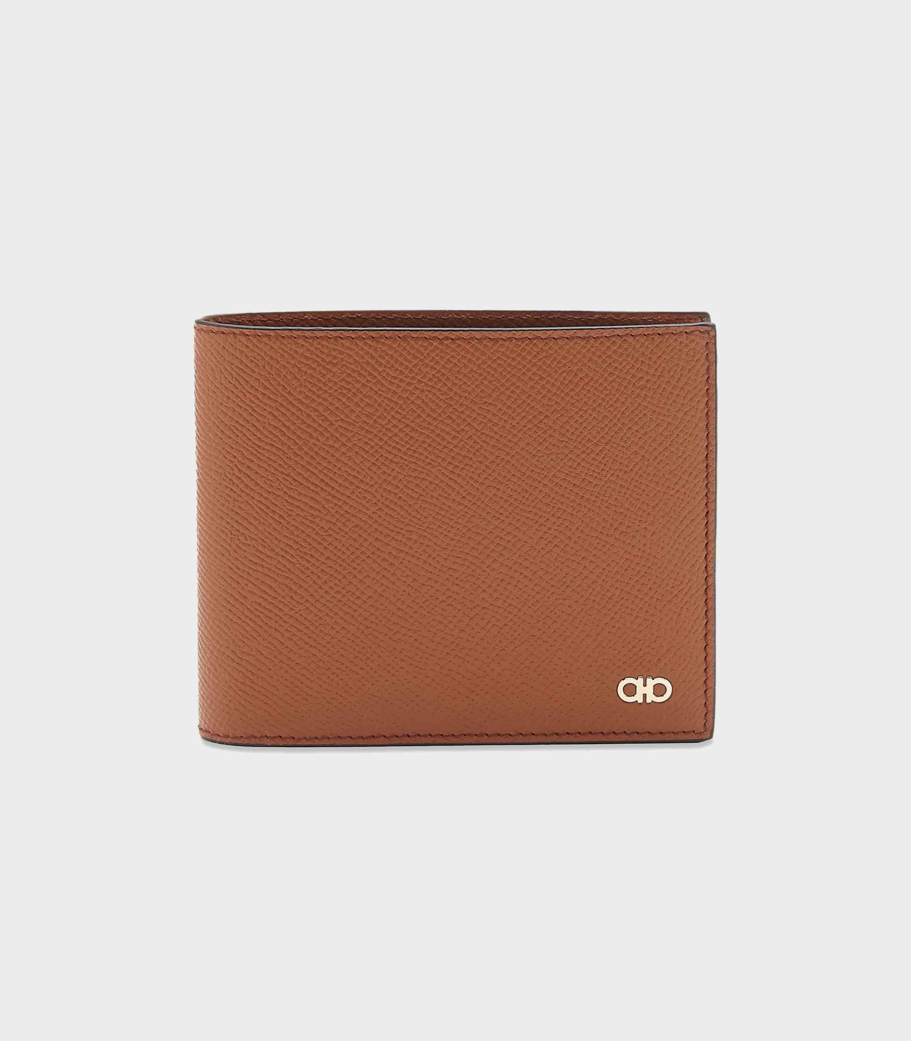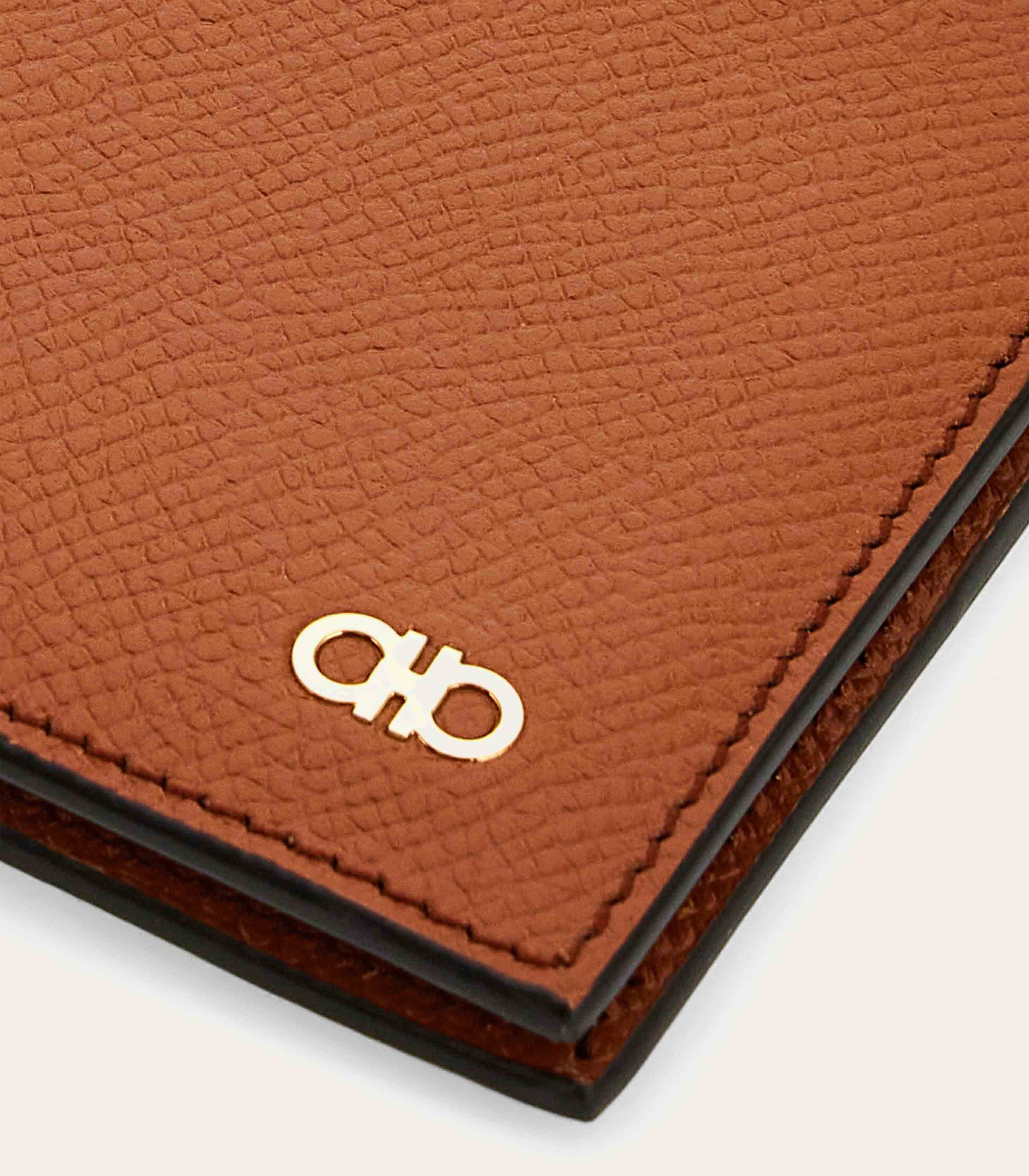 • Hammered to enhance its natural grain, the soft calfskin leather of this new Ferragamo bifold wallet is punctuated by a small golden Gancio on the front.