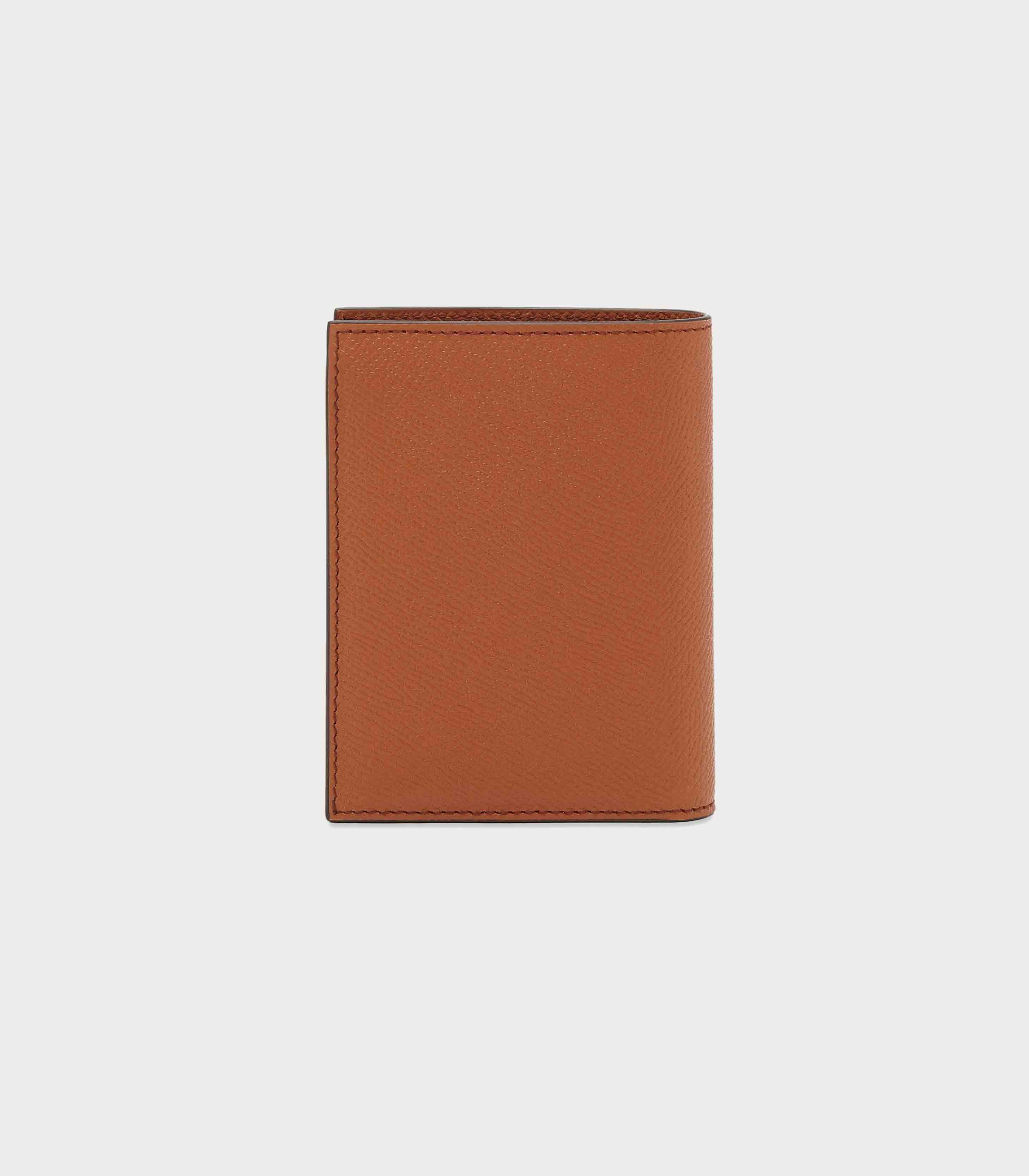 • The leather is punctuated by a small golden Gancio on the front, and the inside features several slots for credit cards, a wide pocket for banknotes, and a moveable transparent slot for a keycard or ID.