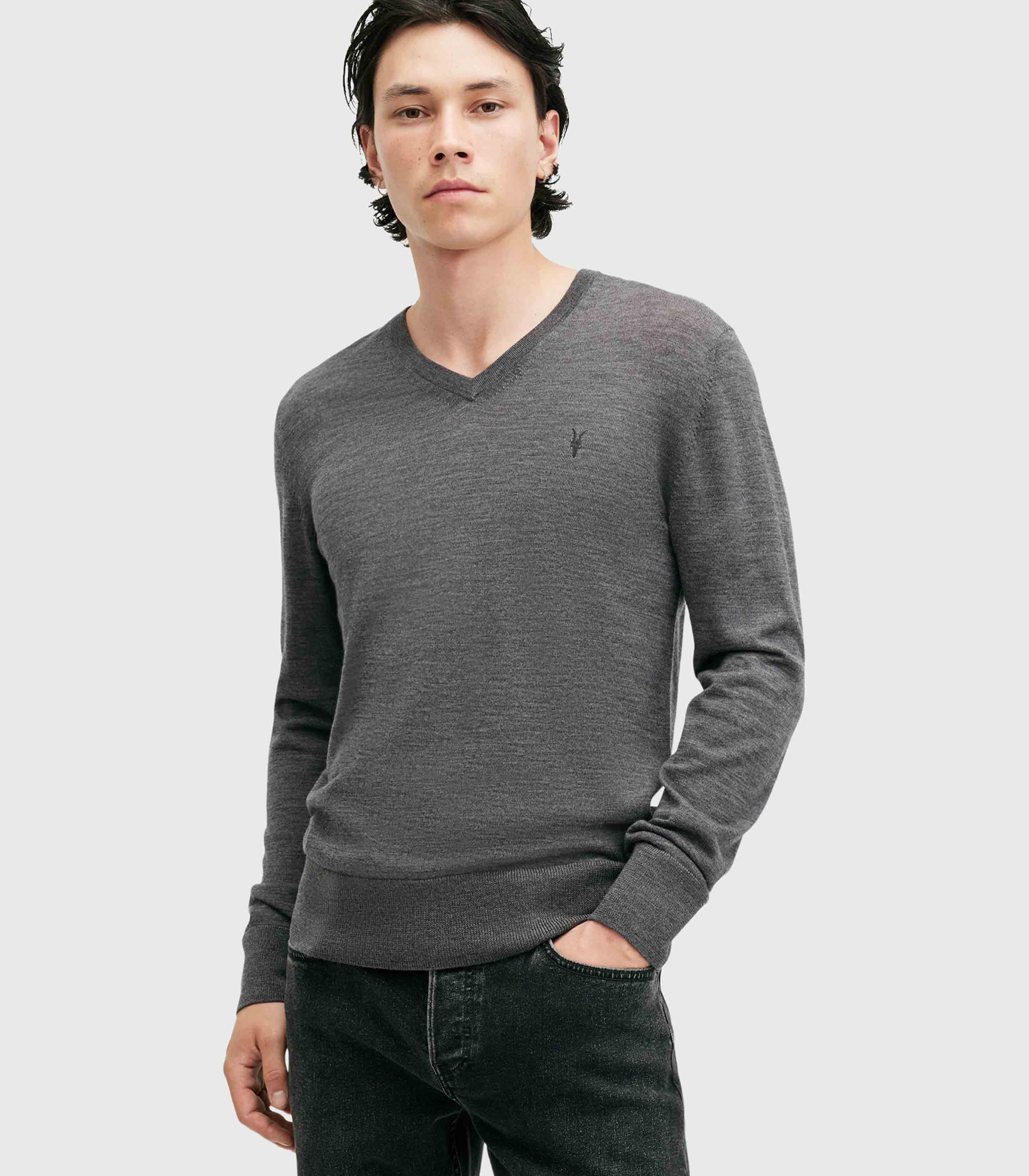 • A sweater from the AllSaints collection. Featuring a pointed neckline, this sweater is crafted from a fine knit with merino wool.
