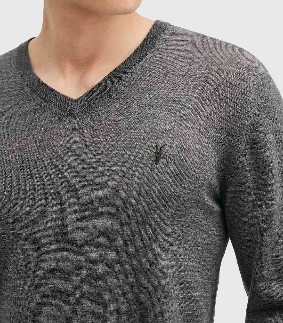 AllSaints - Mode Merino V-Neck Ramskull Jumper