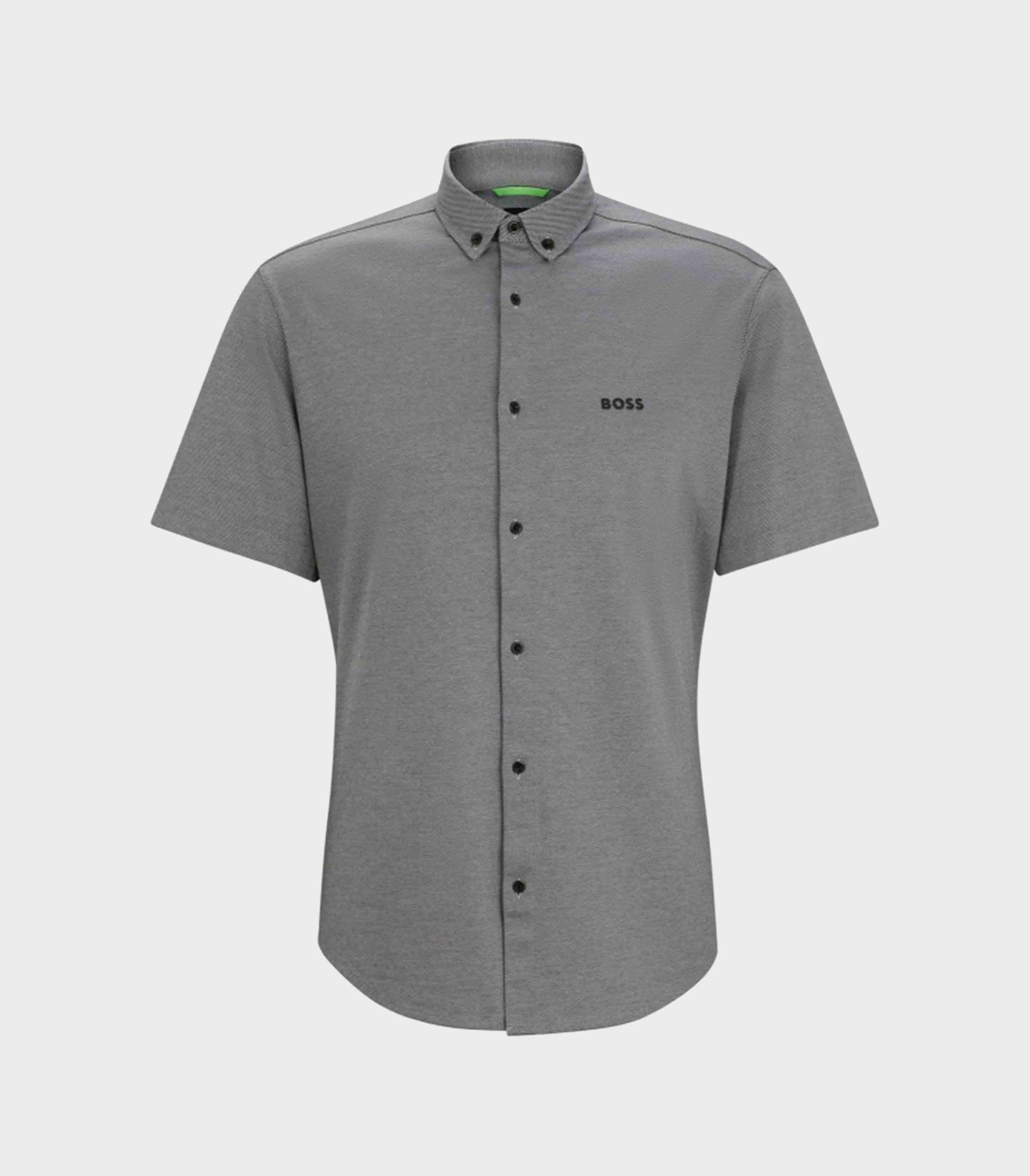 • A signature polo shirt with a jacquard monogram from the BOSS collection. This fitted polo features a turn-down collar, a zip closure, and short sleeves, detailed with a contrasting logo on the chest. Crafted from durable, comfortable fabric.