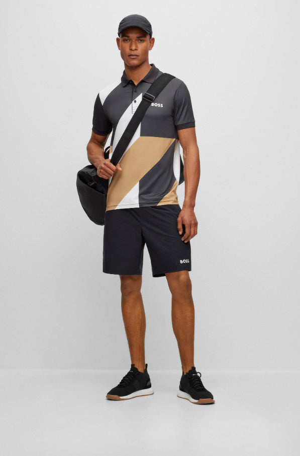 • French Open, Boss Open / sweat absorbent and quick dry 4 way stretch fabric / fully elasticated waistband with drawstring / large mesh pocketbags / large logo print / iconic stripe details / wide hem for maximum freedom of movement / 1/2 hem width: 31cm