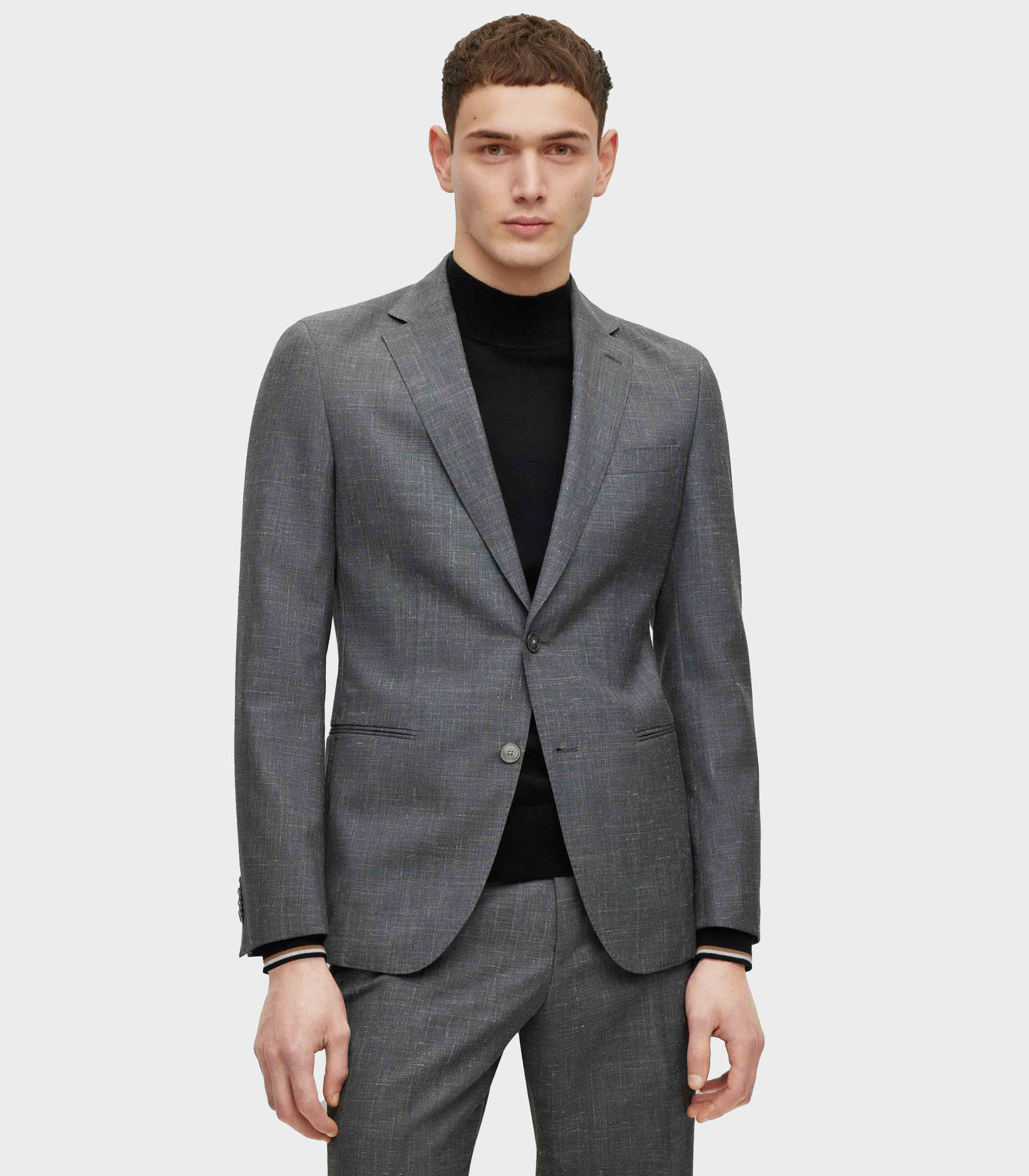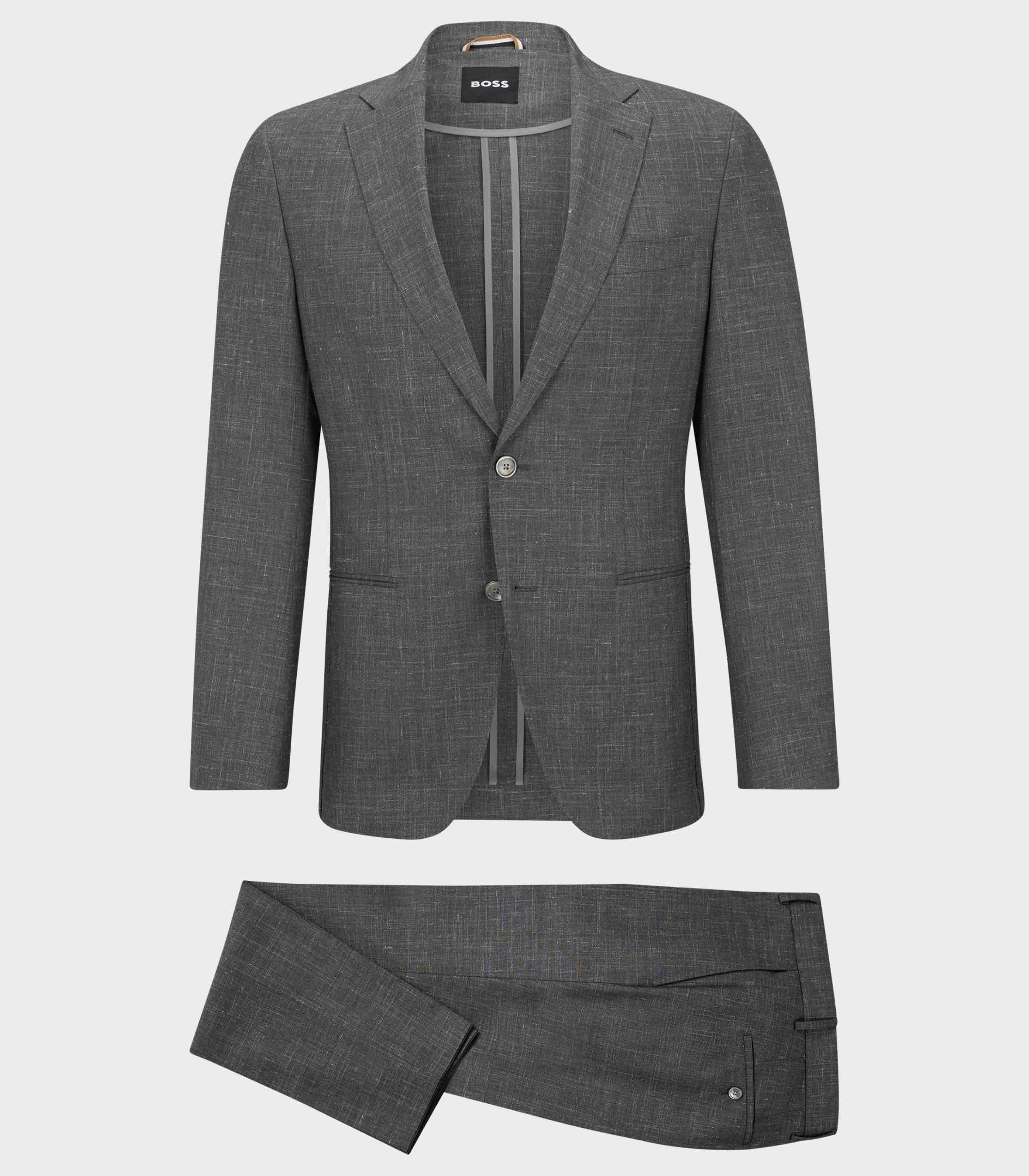 • BOSS BLACK CASUAL - Our casual styles: Explore highest wearing comfort compared with modern fits for fashionable everyday looks-SLIM FIT SUIT - CASUAL SLIM-FIT 2-PIECE SUIT WITH SOFT CONSTRUCTED SHOULDERS, NOTCH LAPEL, JETTED POCKETS, UNLINED, SIDE VENTS, AMF STITCHING, KISSING CUFF BUTTONS.-Wool blend