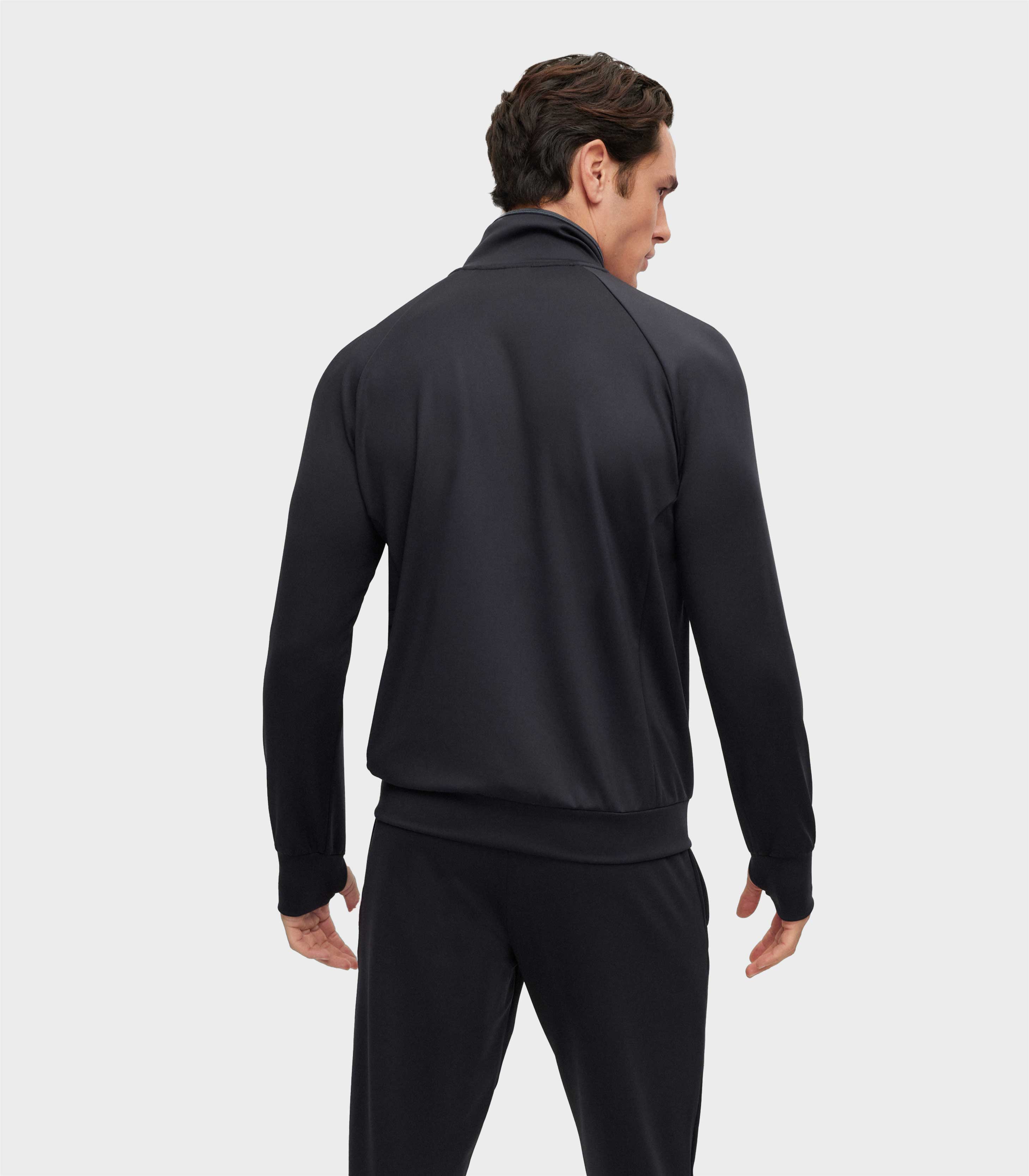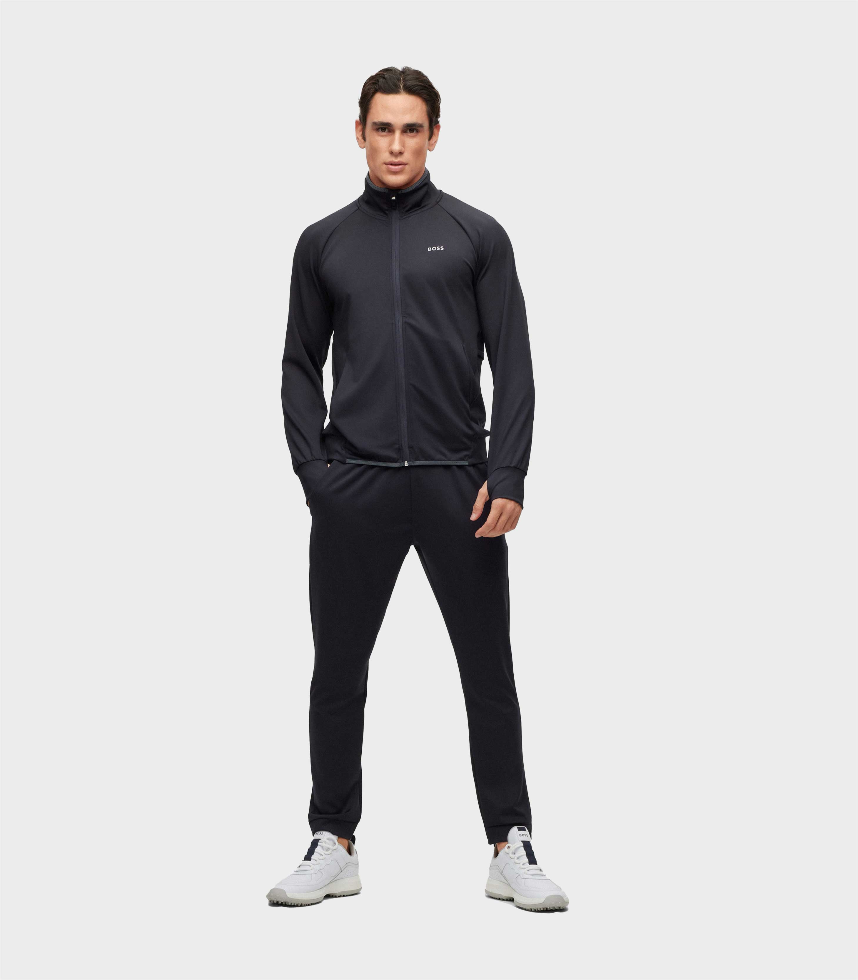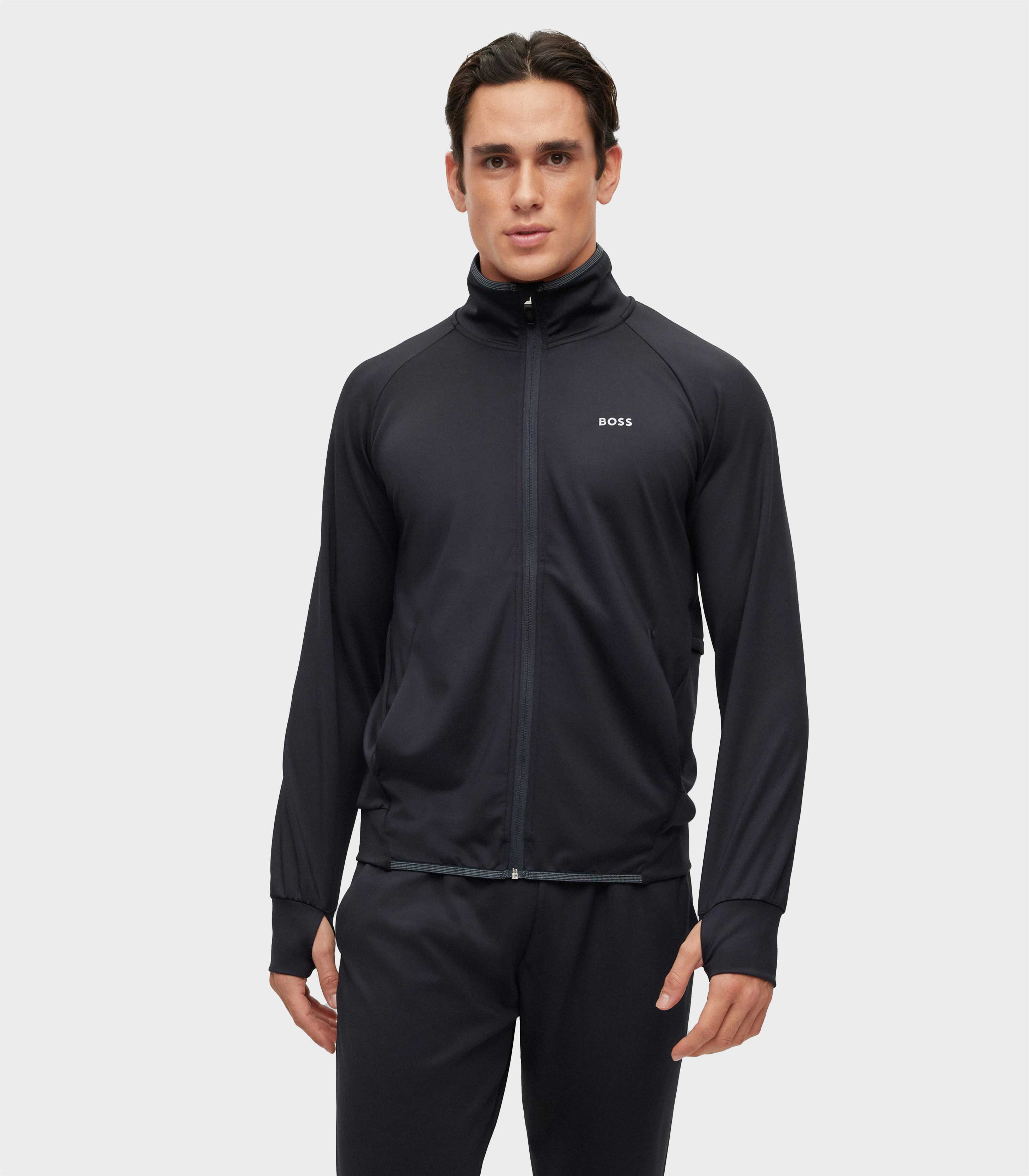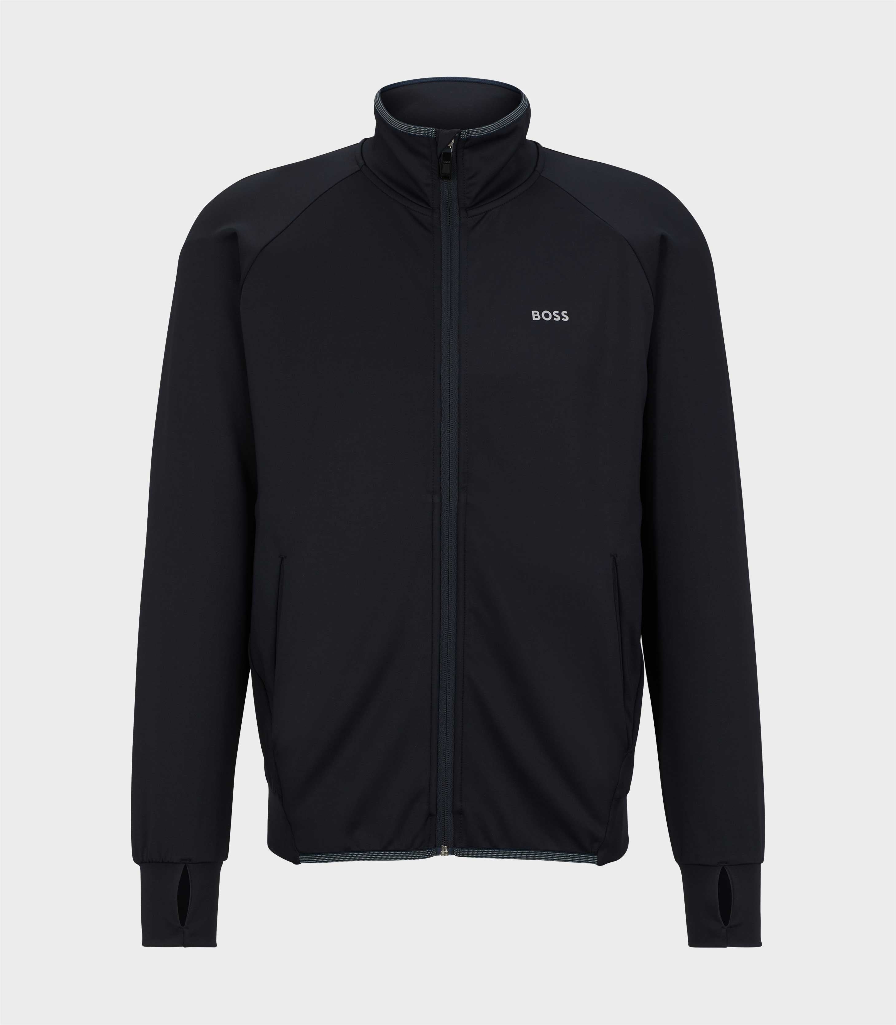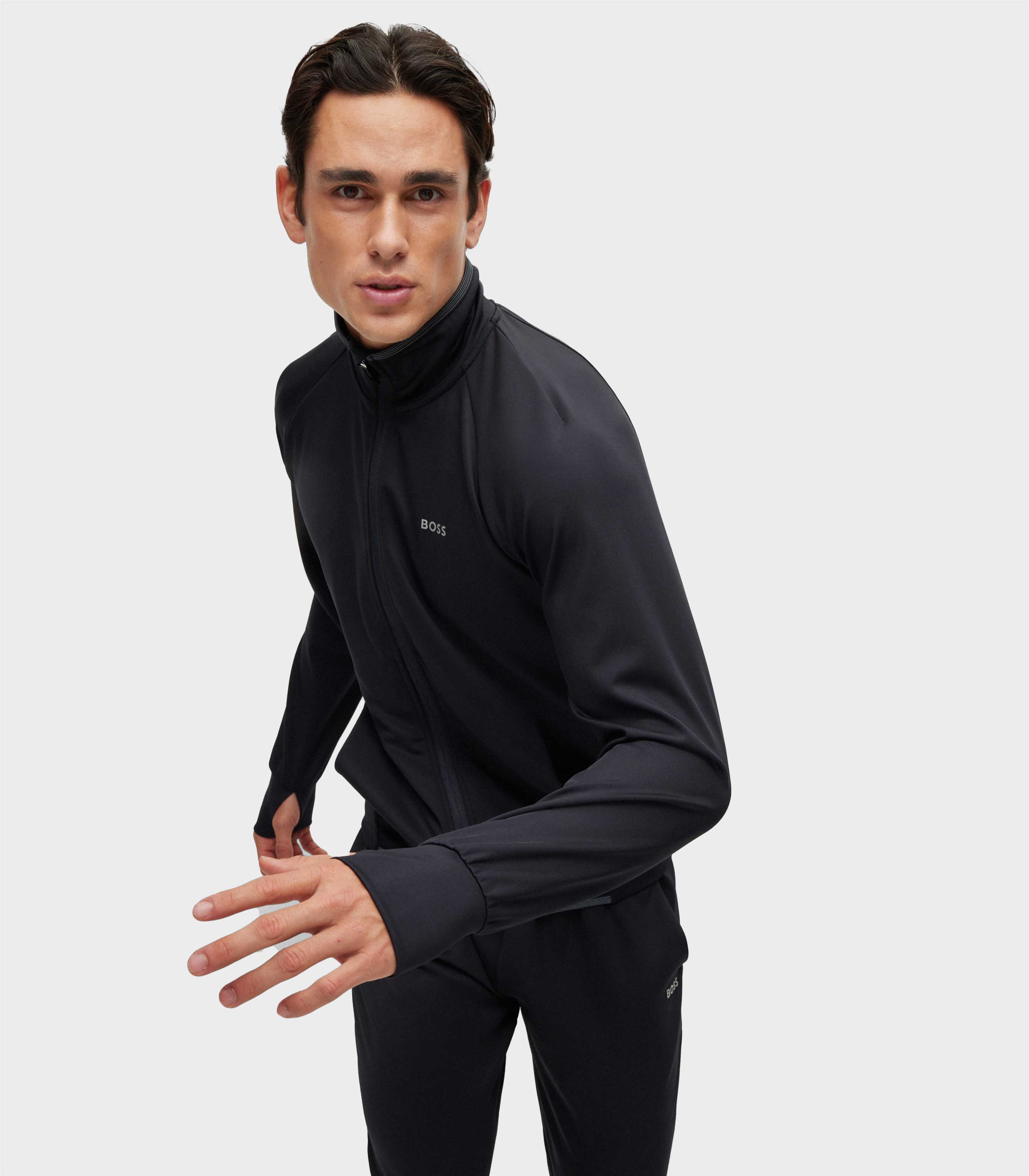 • A regular-fit zip-up sweatshirt by BOSS Menswear, designed in active-stretch fabric with decorative reflective elastic binding, a logo detail and sporty thumbholes.