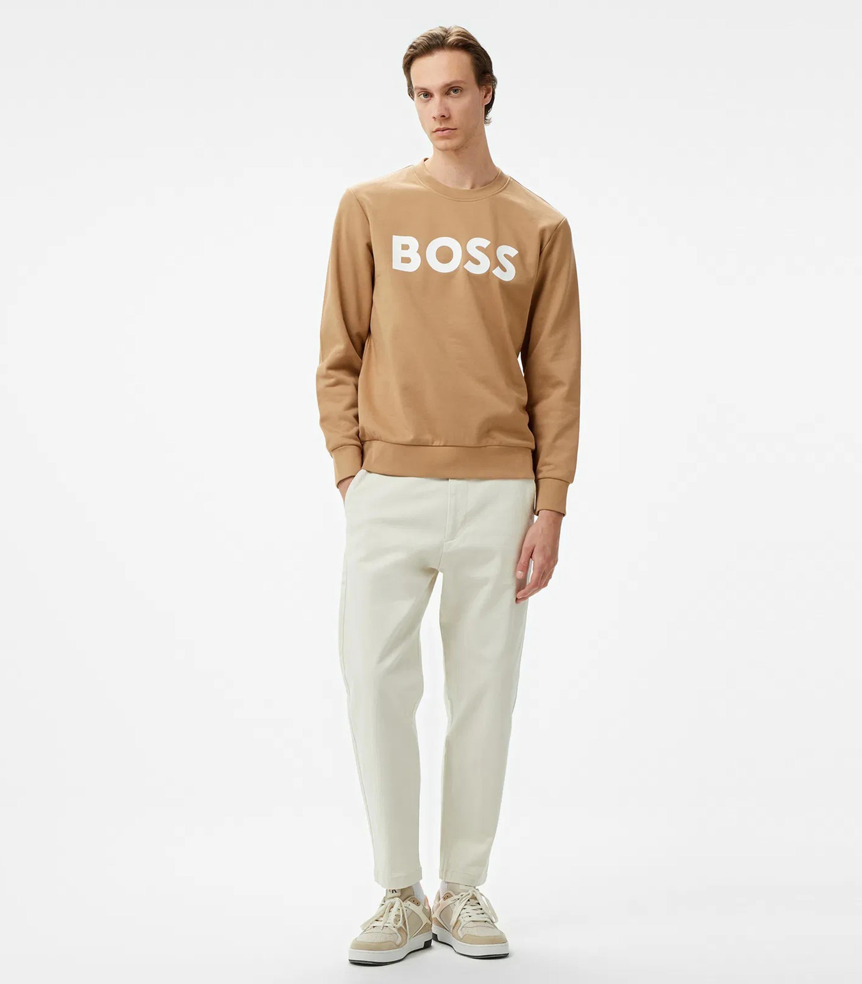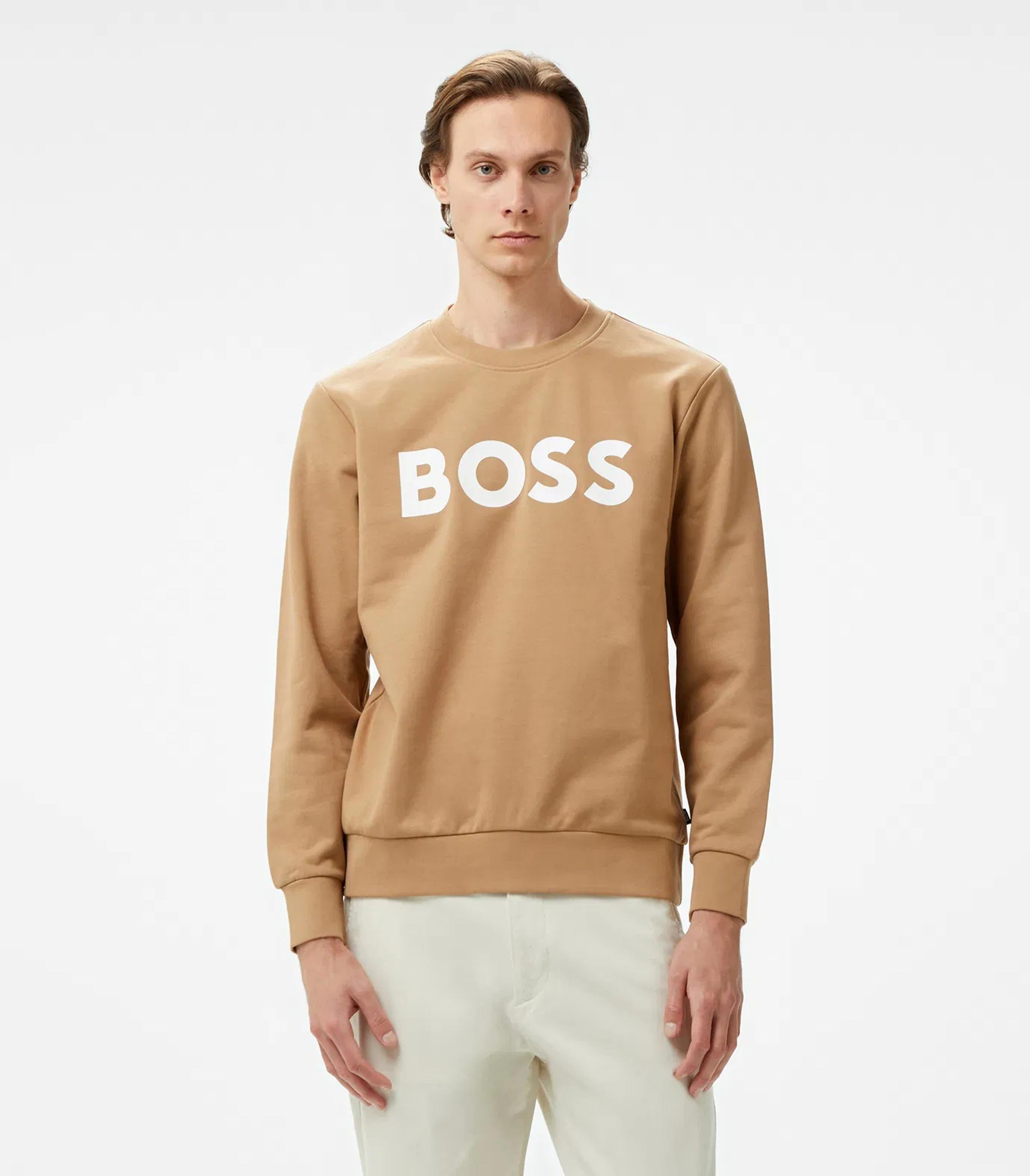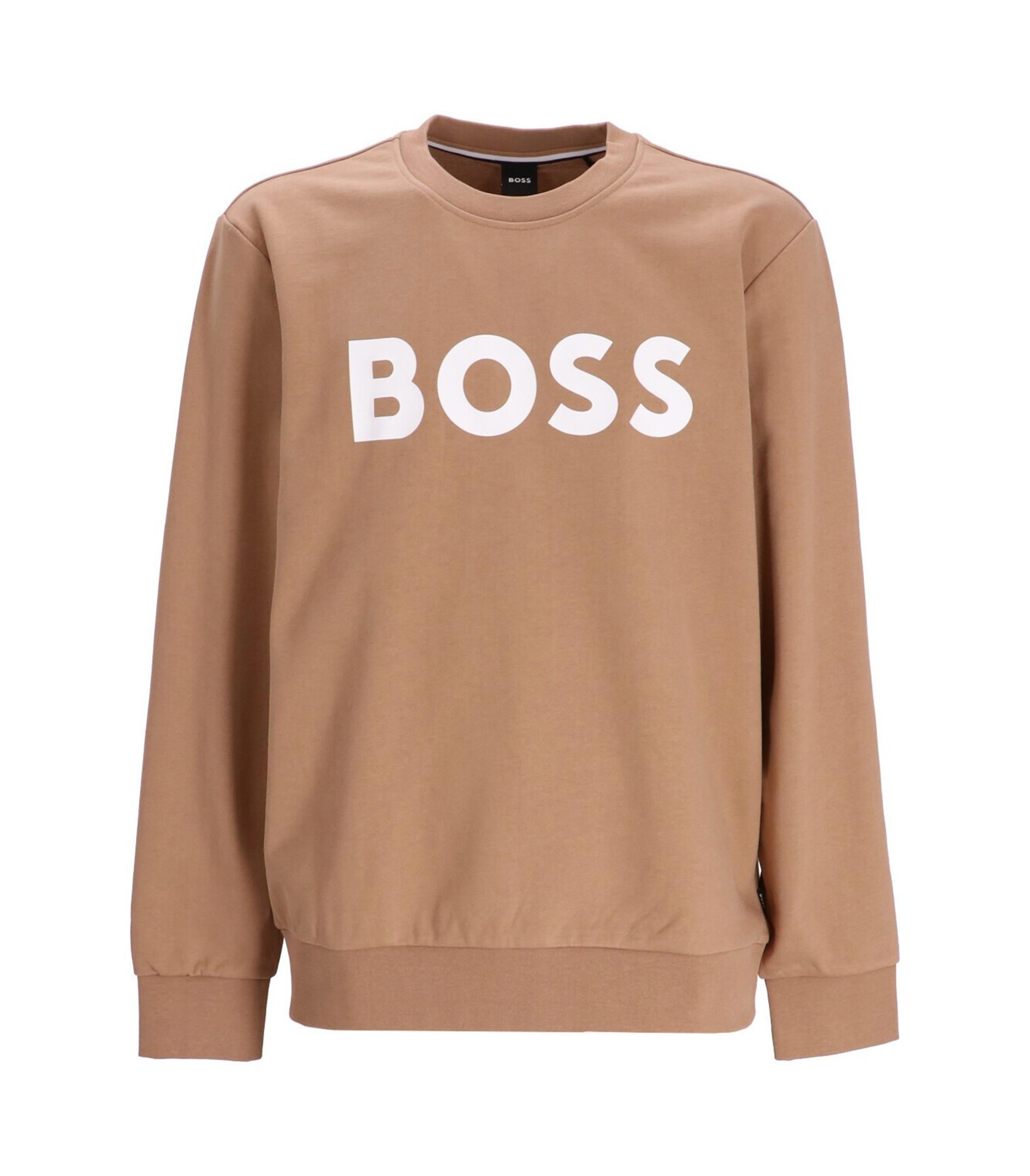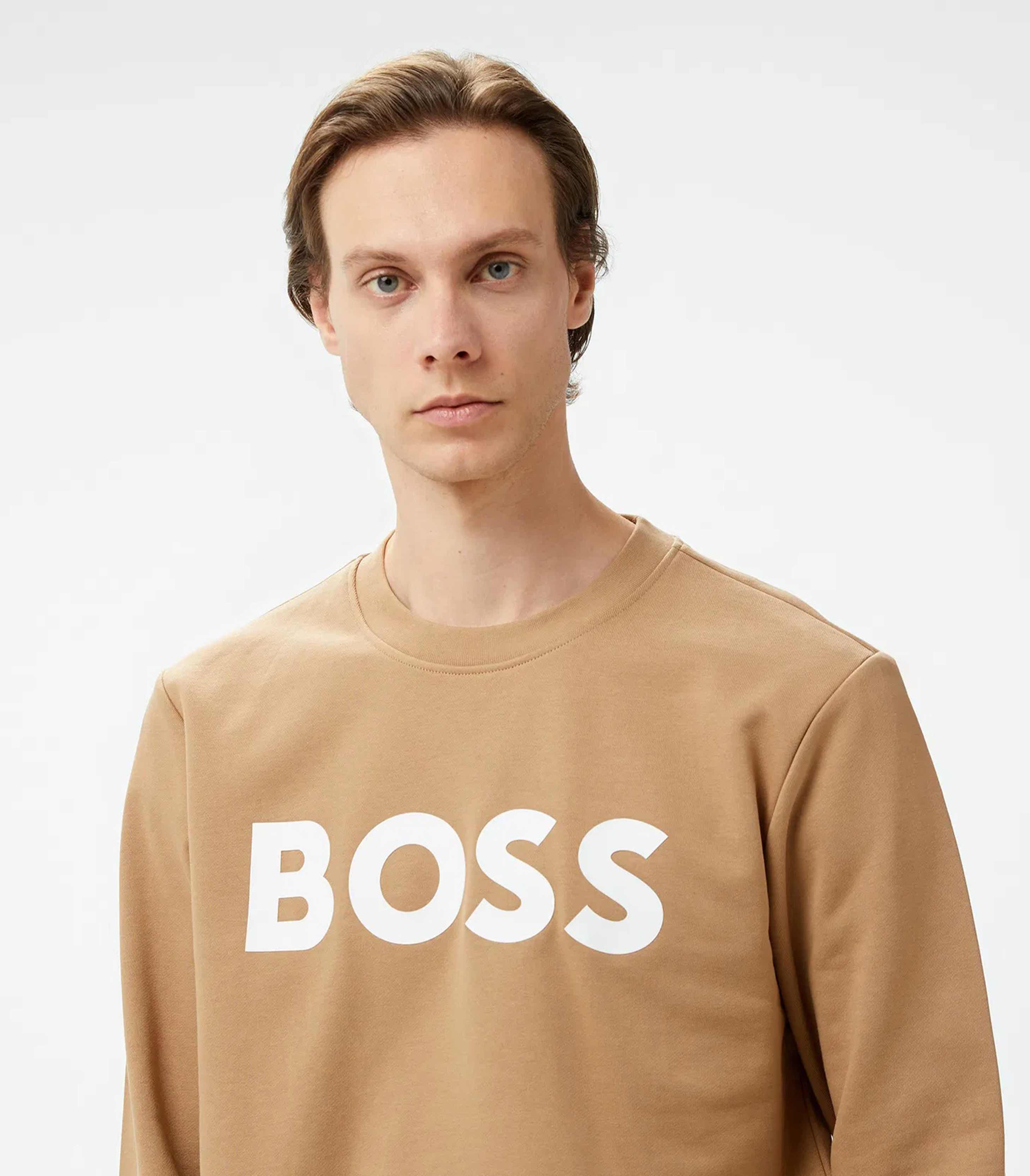 • HUGO BOSS cotton sweatshirt. Contrasting color logo lettering on the front. Crew neck and long sleeves. Ribbed collar, cuffs and bottom.