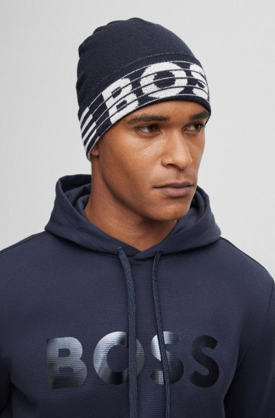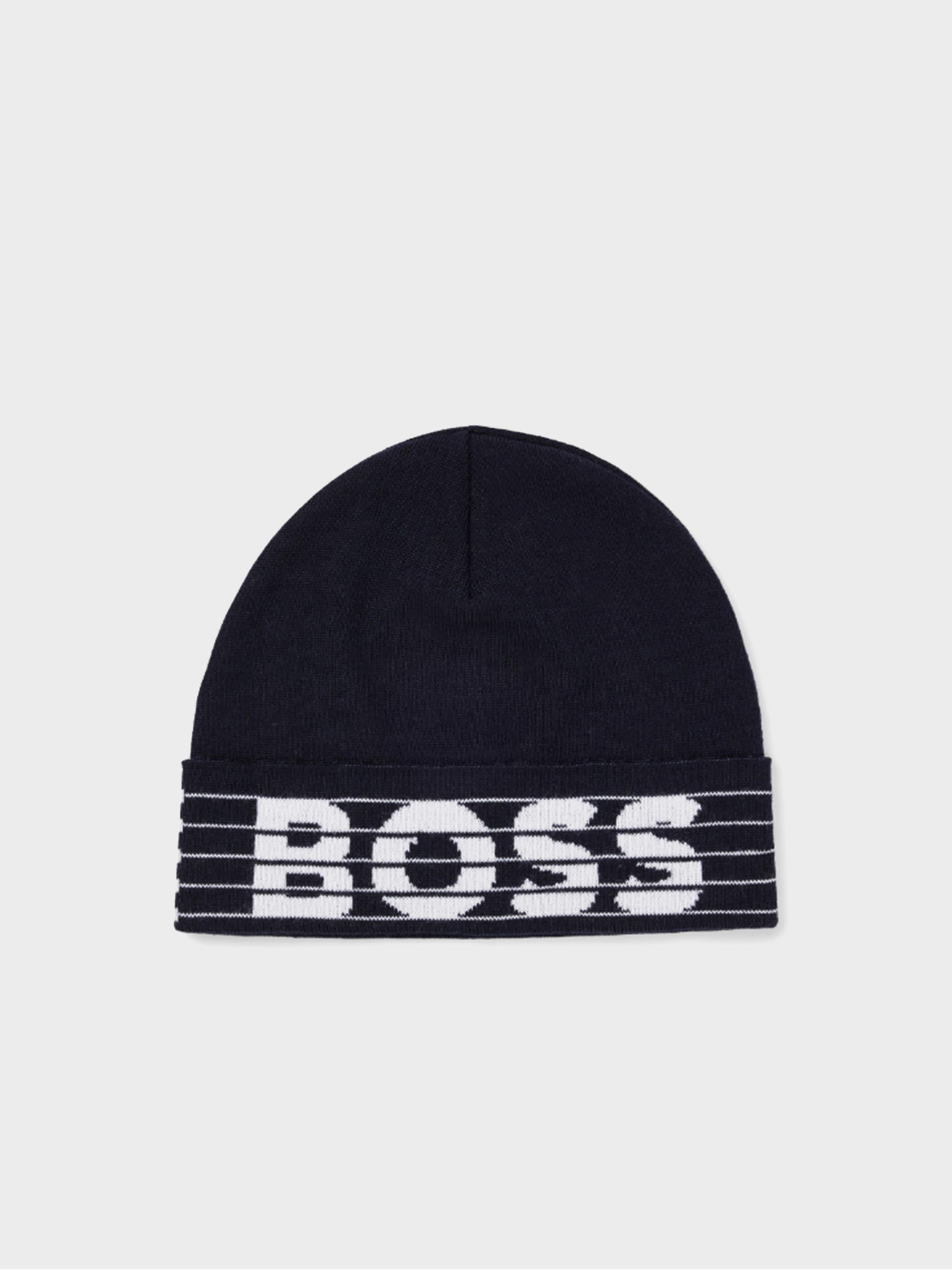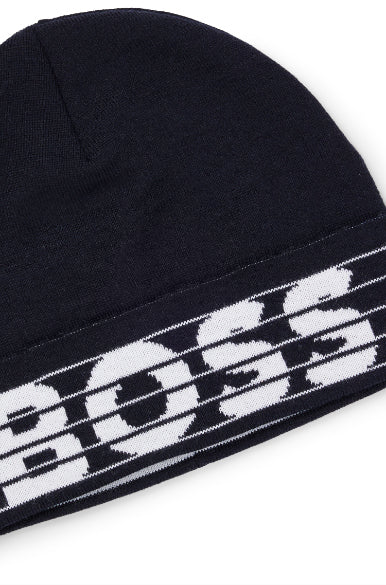 • A wool-blend beanie by BOSS, knitted with a metaraya logo at the cuff.