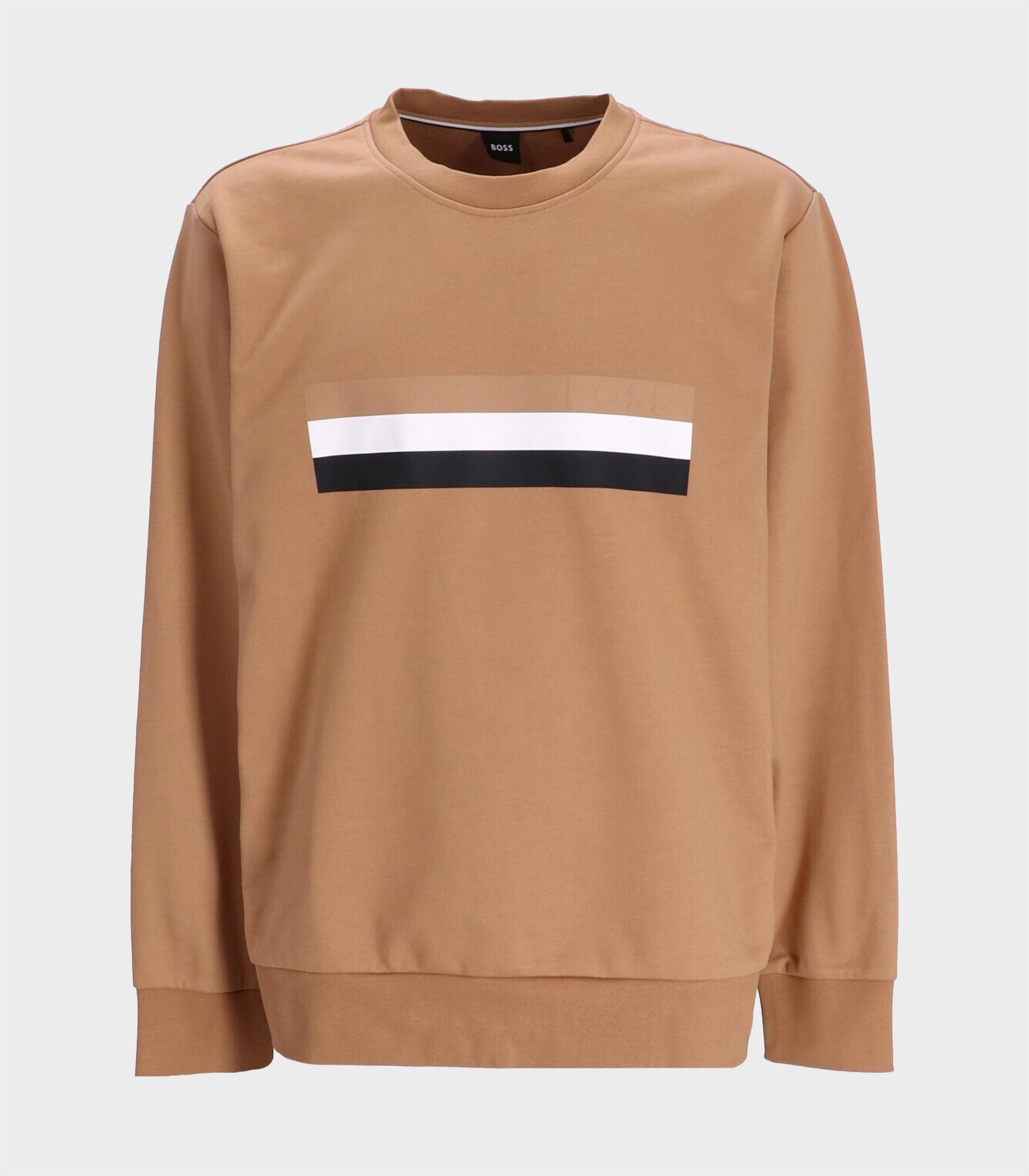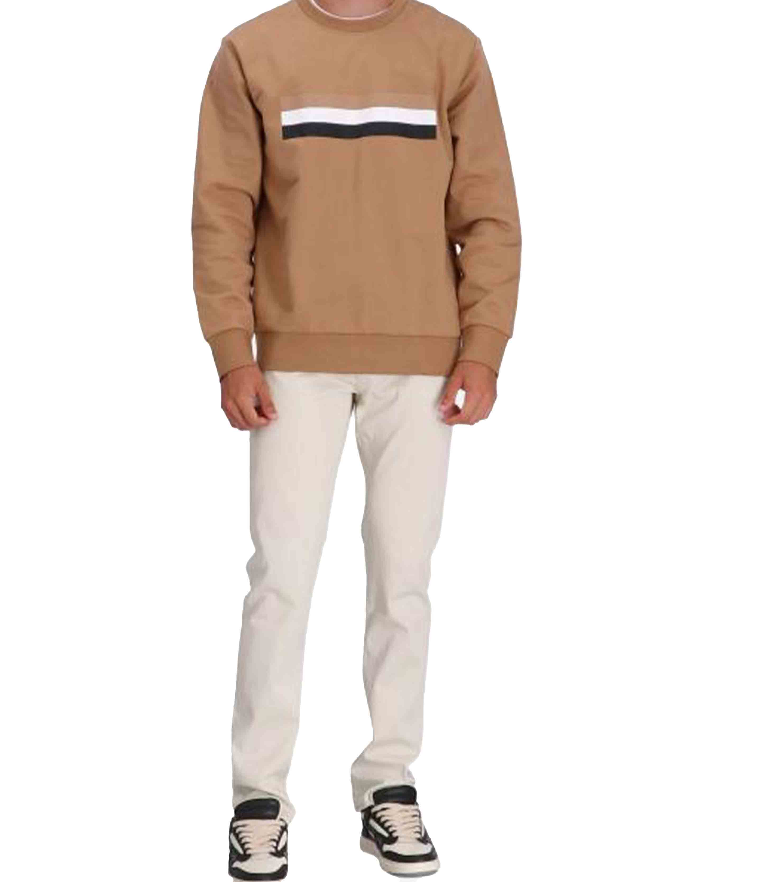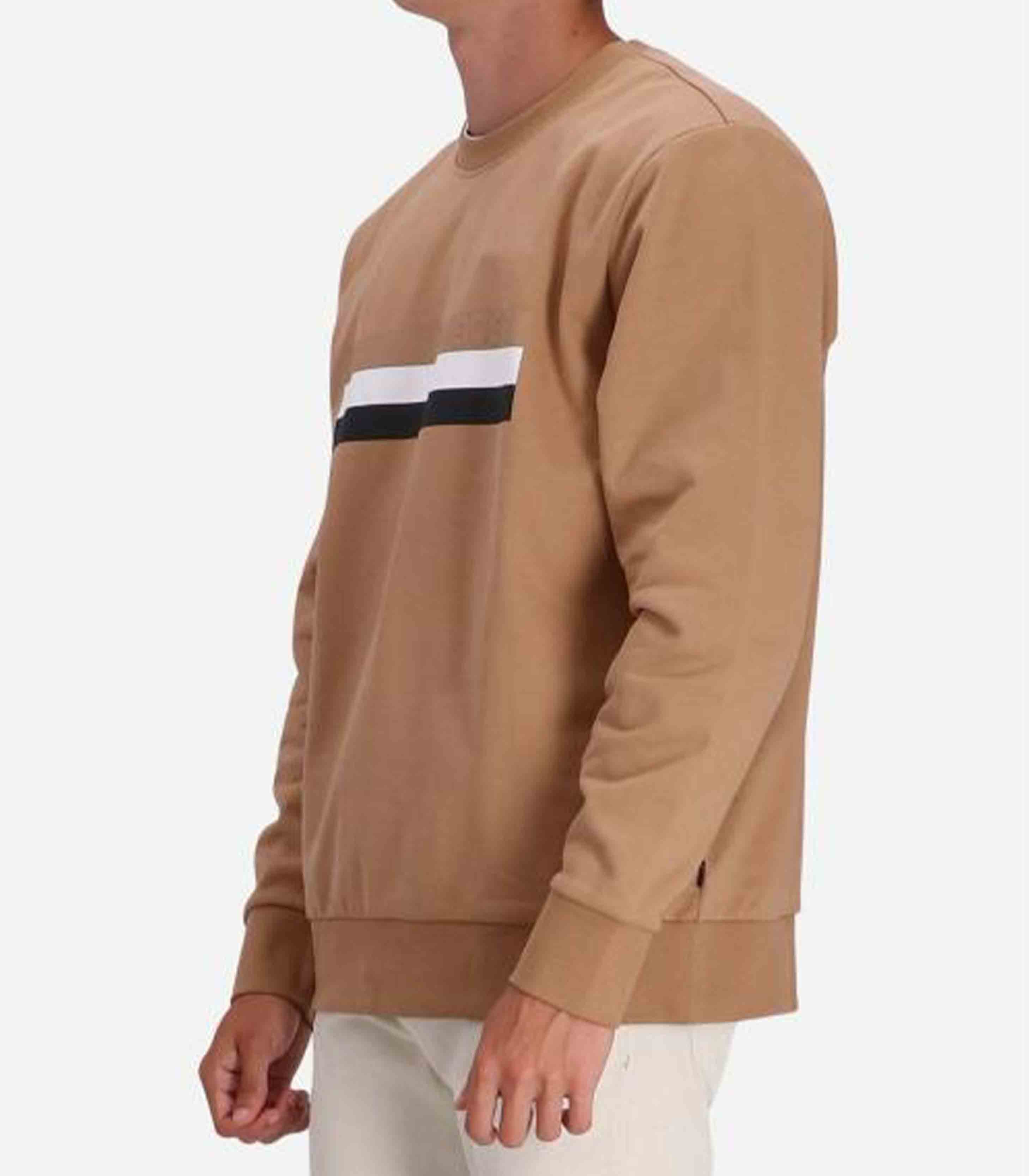 • Hugo Boss sweatshirt made in French Terry with printed logo and typical lines of the brand. Nuts around and long sleeves. Finished with coasts on neck, wrists and background.