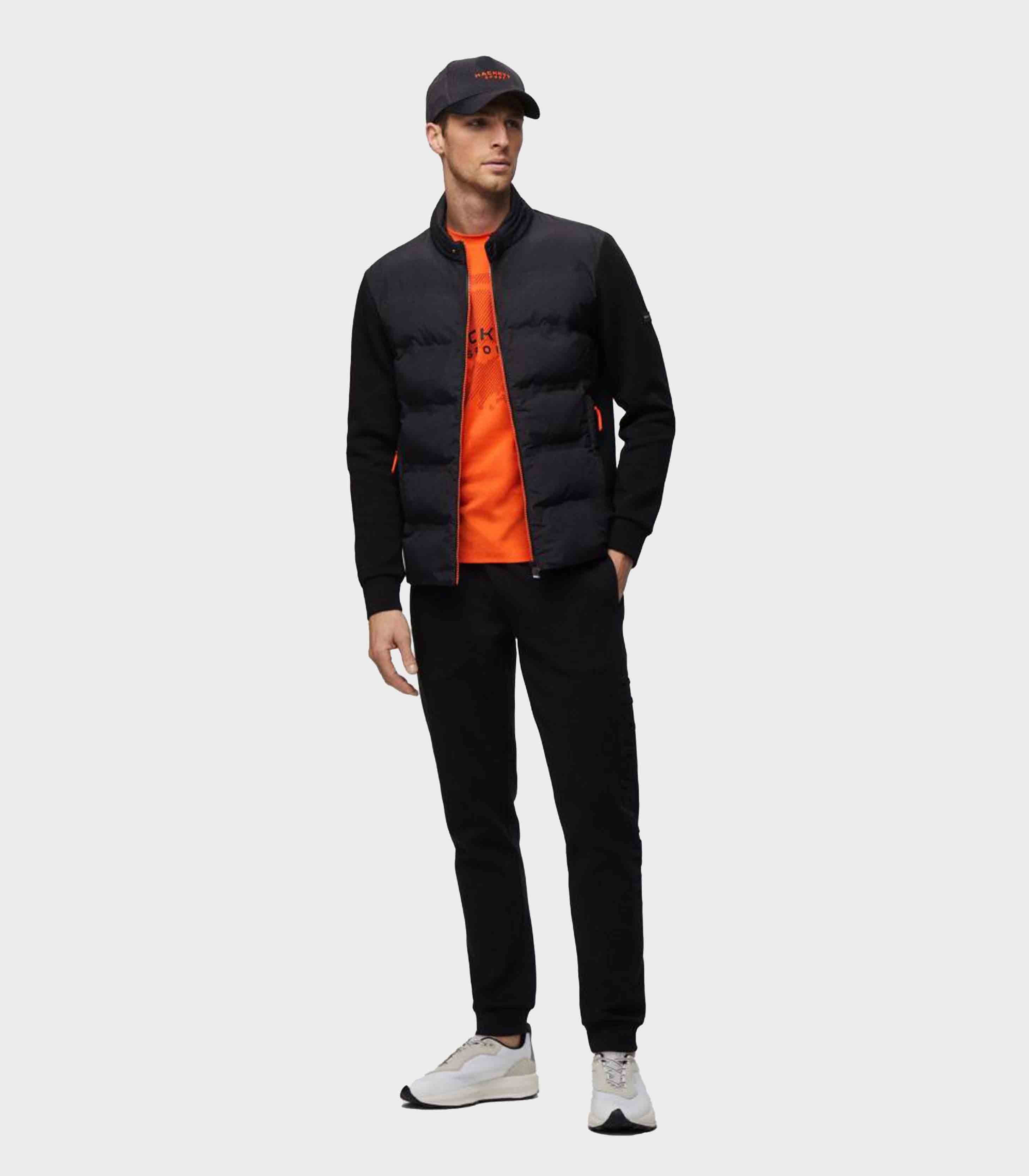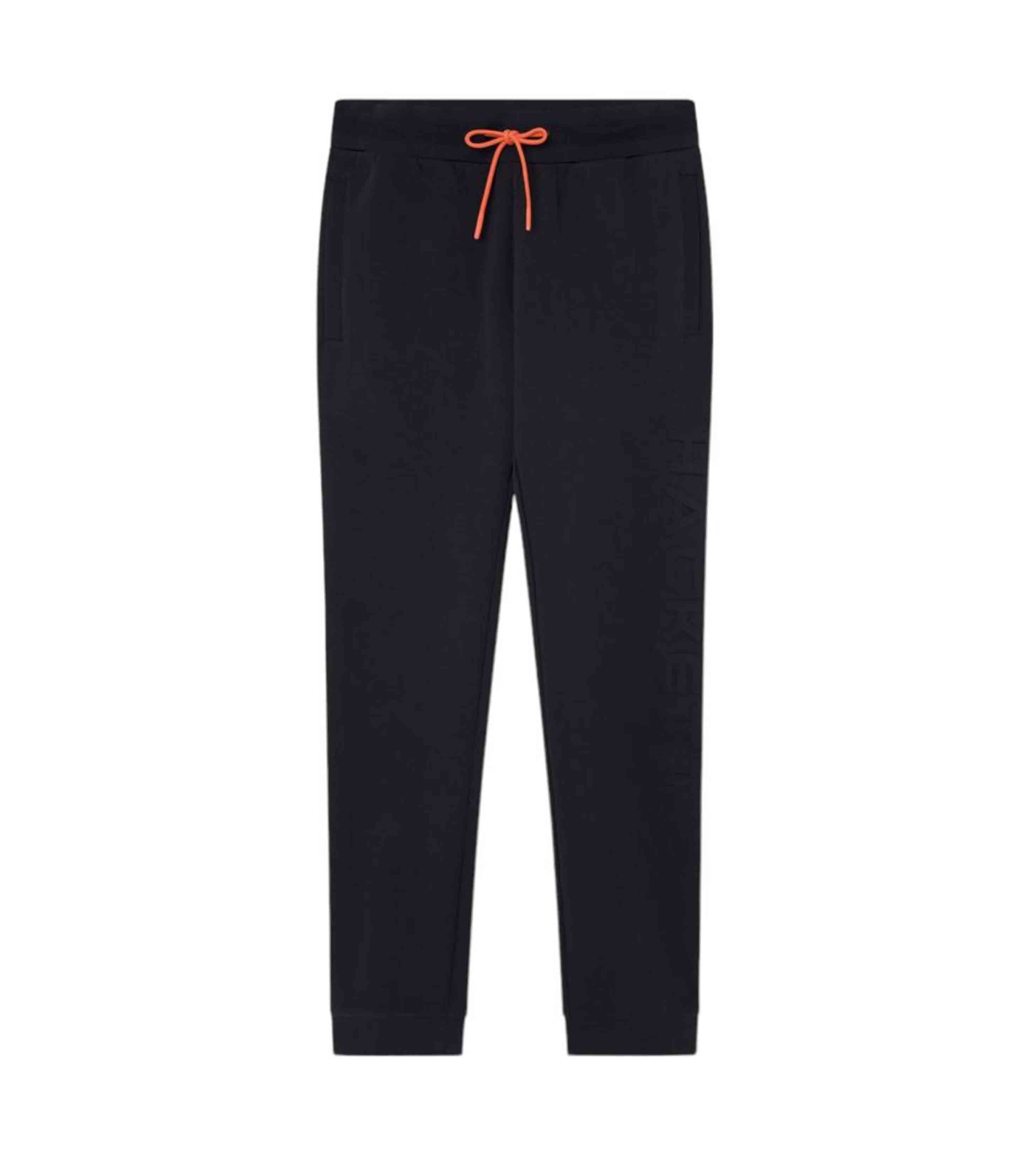 • Enjoy maximum comfort and style with our Joggers. This exceptional design combines functionality and fashion with a high quality finish. The joggers feature a double-sided fabric for warmth and versatility, perfect for everyday wear. The polyester jacquard trim adds a touch of texture and visual detail, enhancing the modern look of the trousers. Highlights include a stylish contrasting orange drawstring and Hackett embossed detail on the leg, which adds a distinctive and stylish touch. Ideal for a casual sporty look or for lounging at home in style, these joggers are a must-have in your streetwear collection.