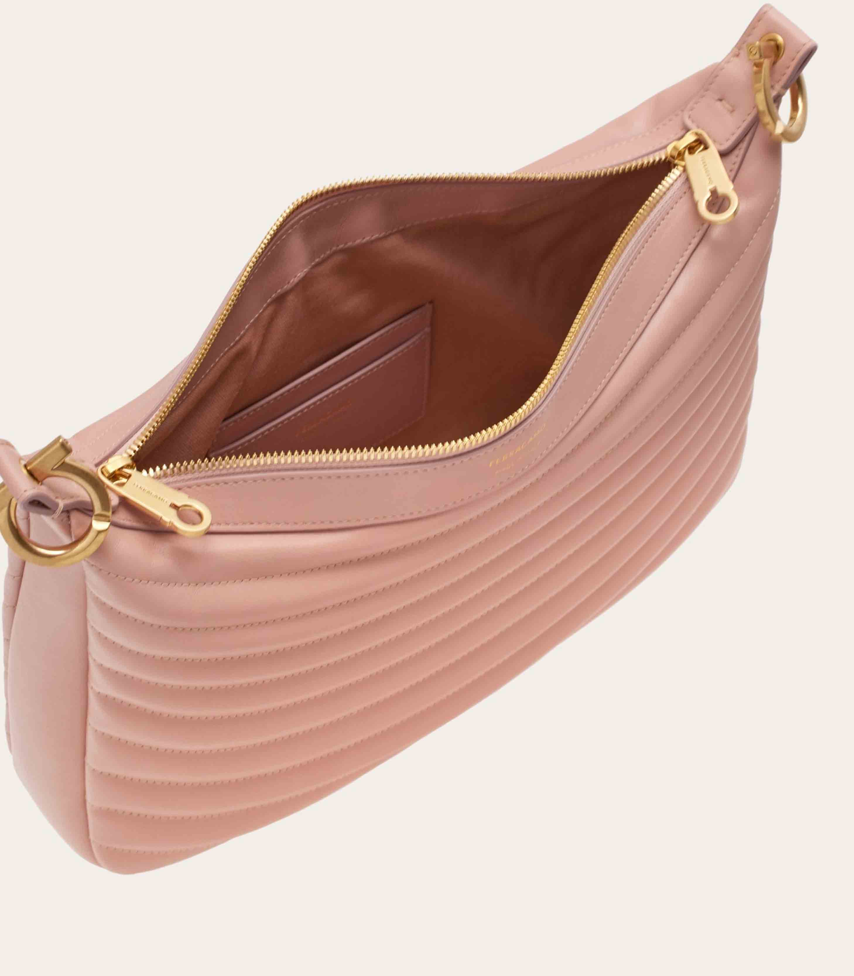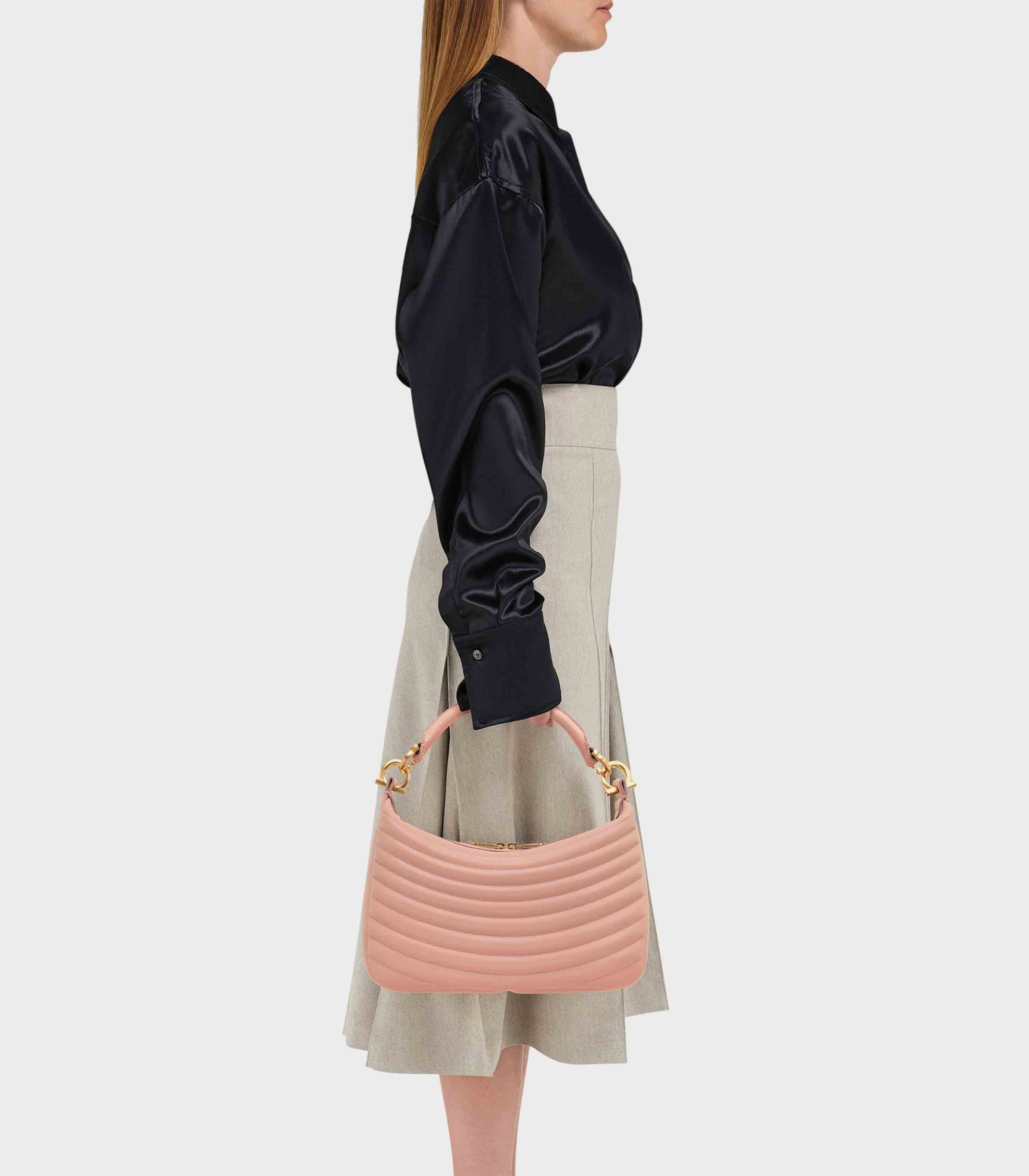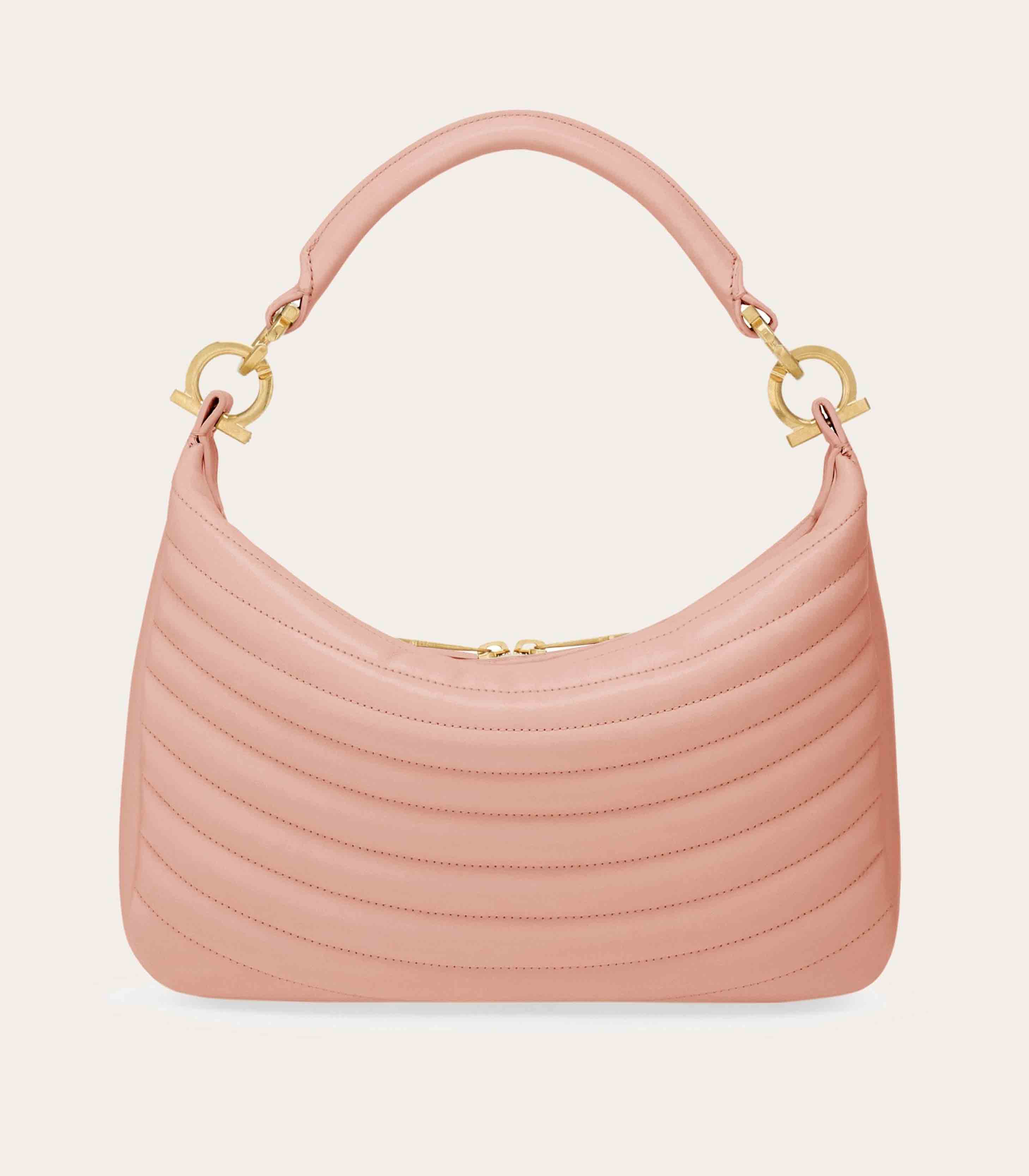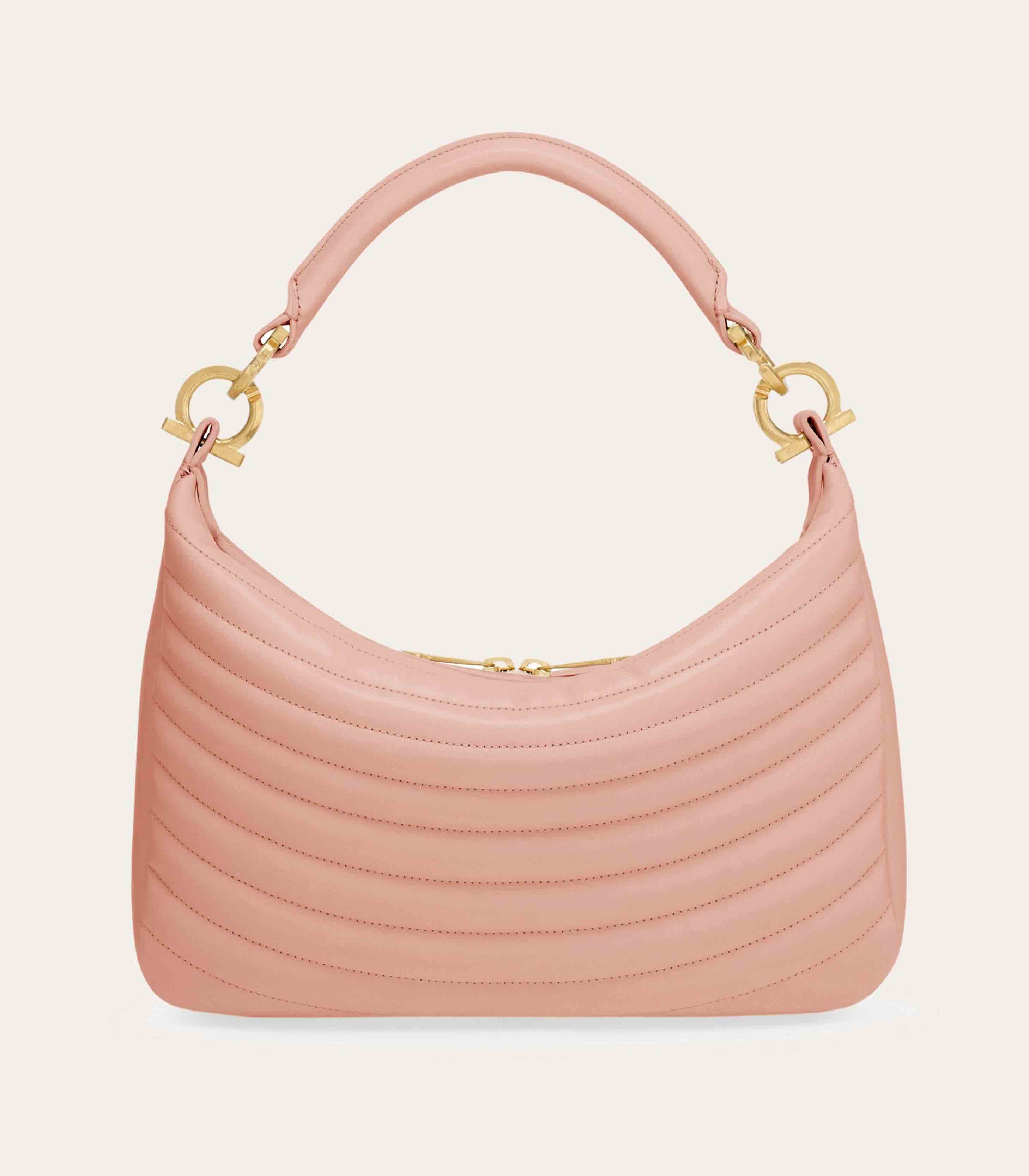 • The quilted ripples on this new Ferragamo bowling bag are inspired by the iconic Rainbow shoe, designed by Salvatore Ferragamo for Judy Garland in 1938.