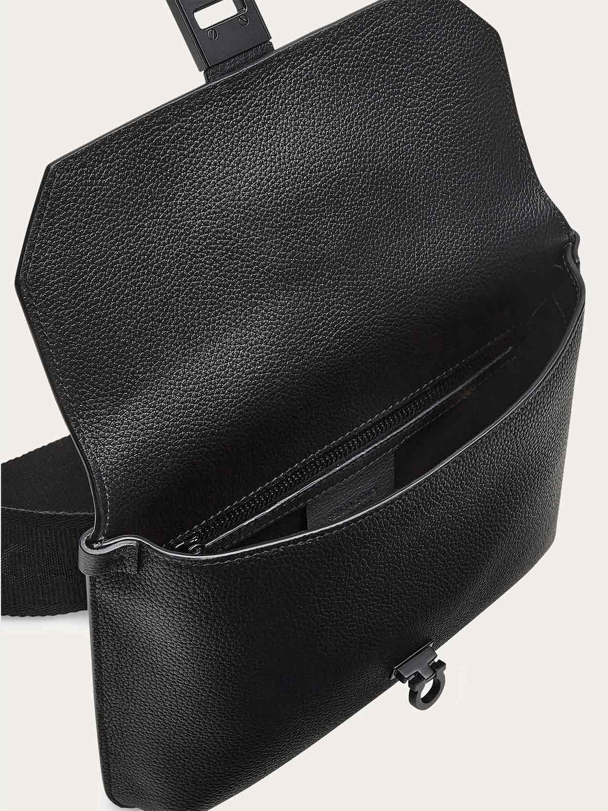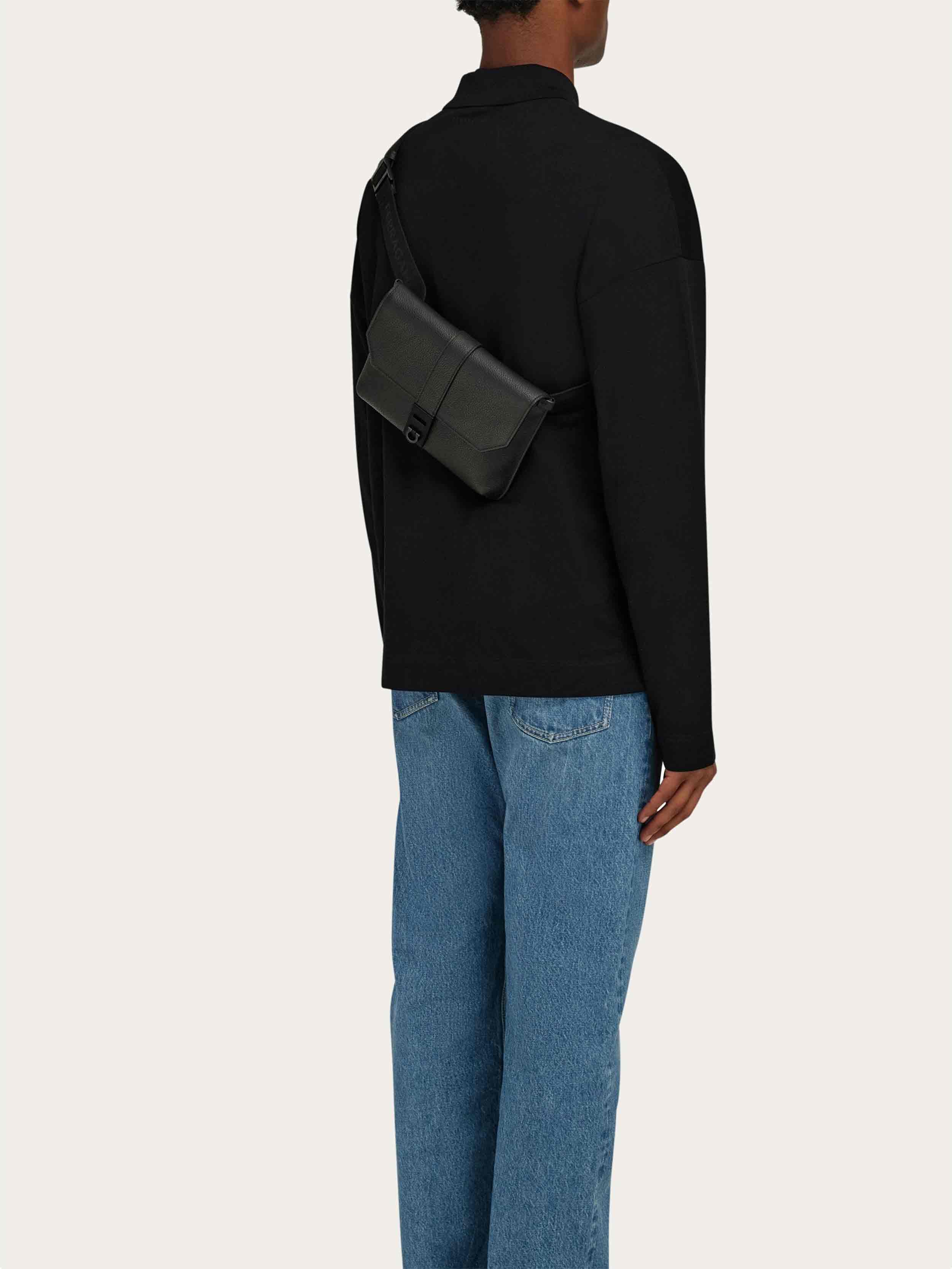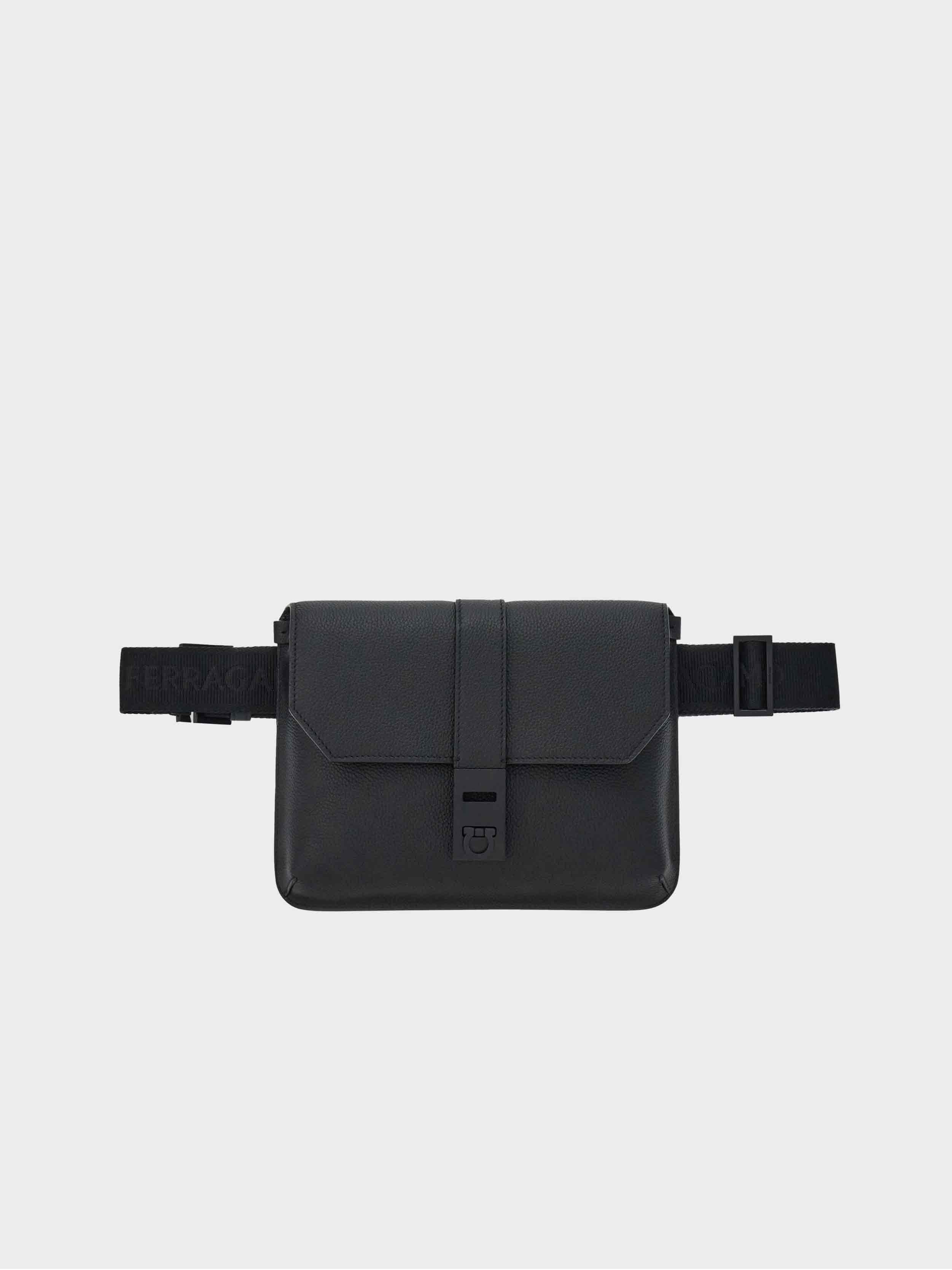 • The detachable jacquard tape belt with logo can be taken out to transform the belt bag into a convenient pouch. The painted-finish Gancini Hug buckle adds an urban edge.
