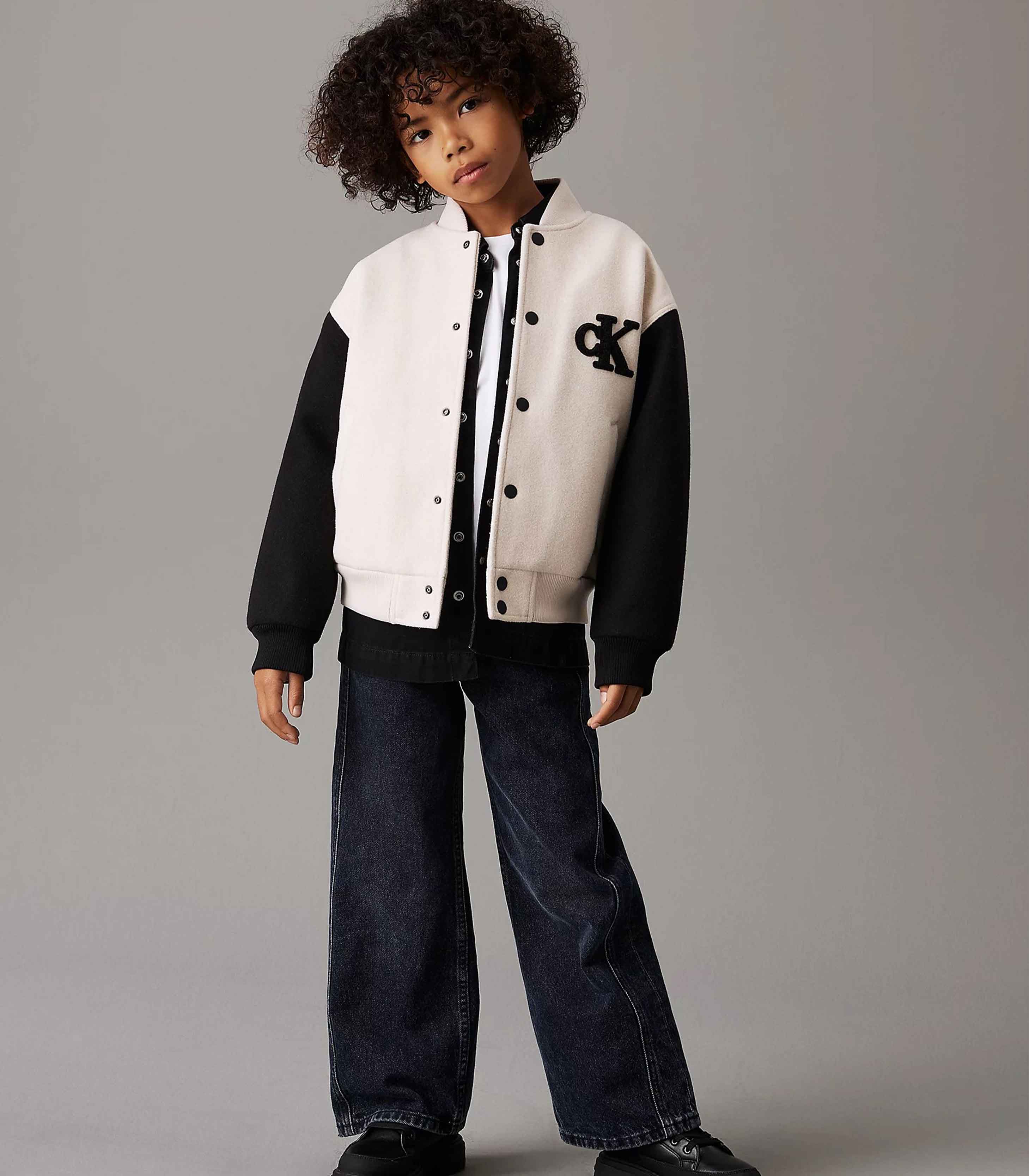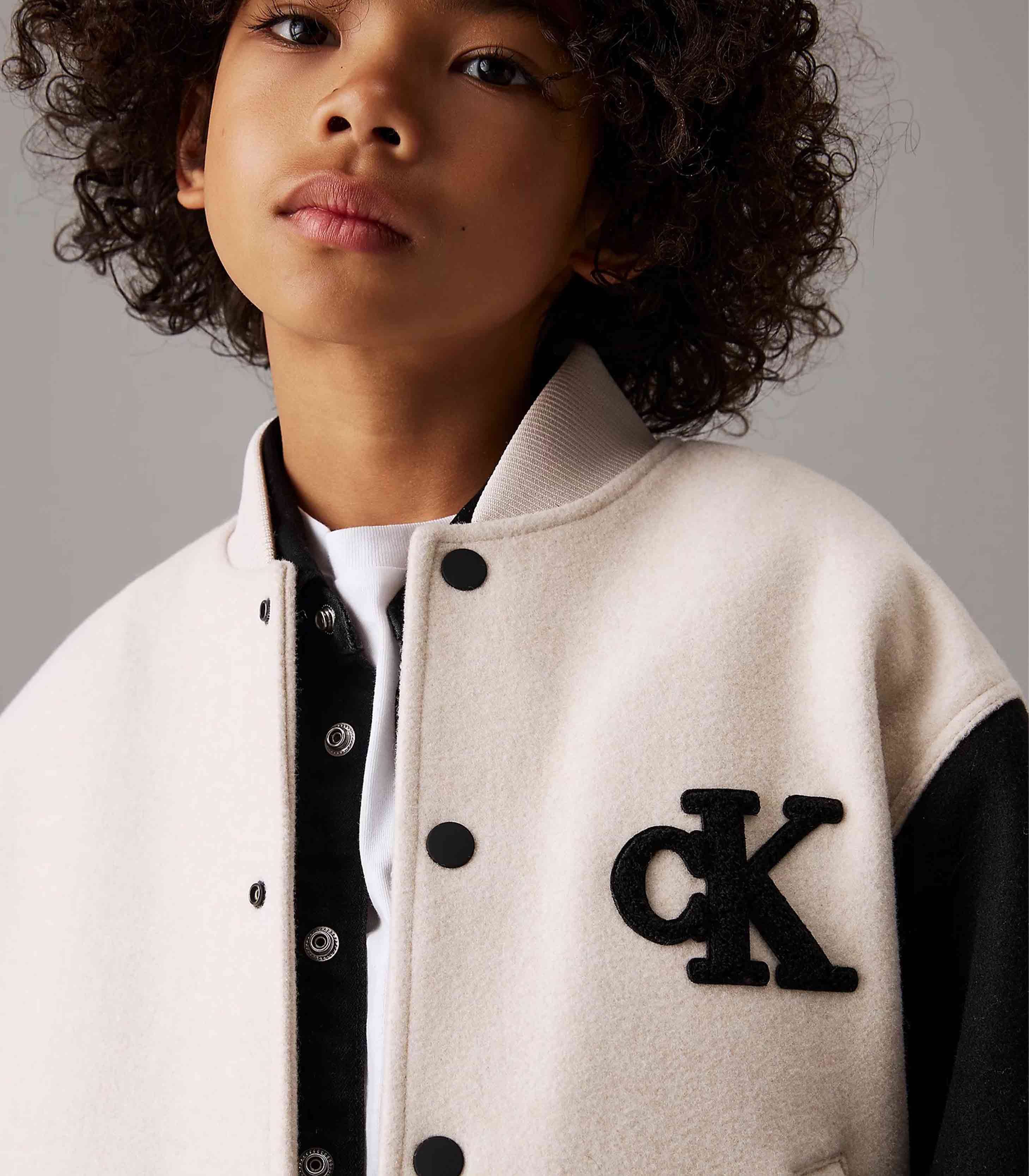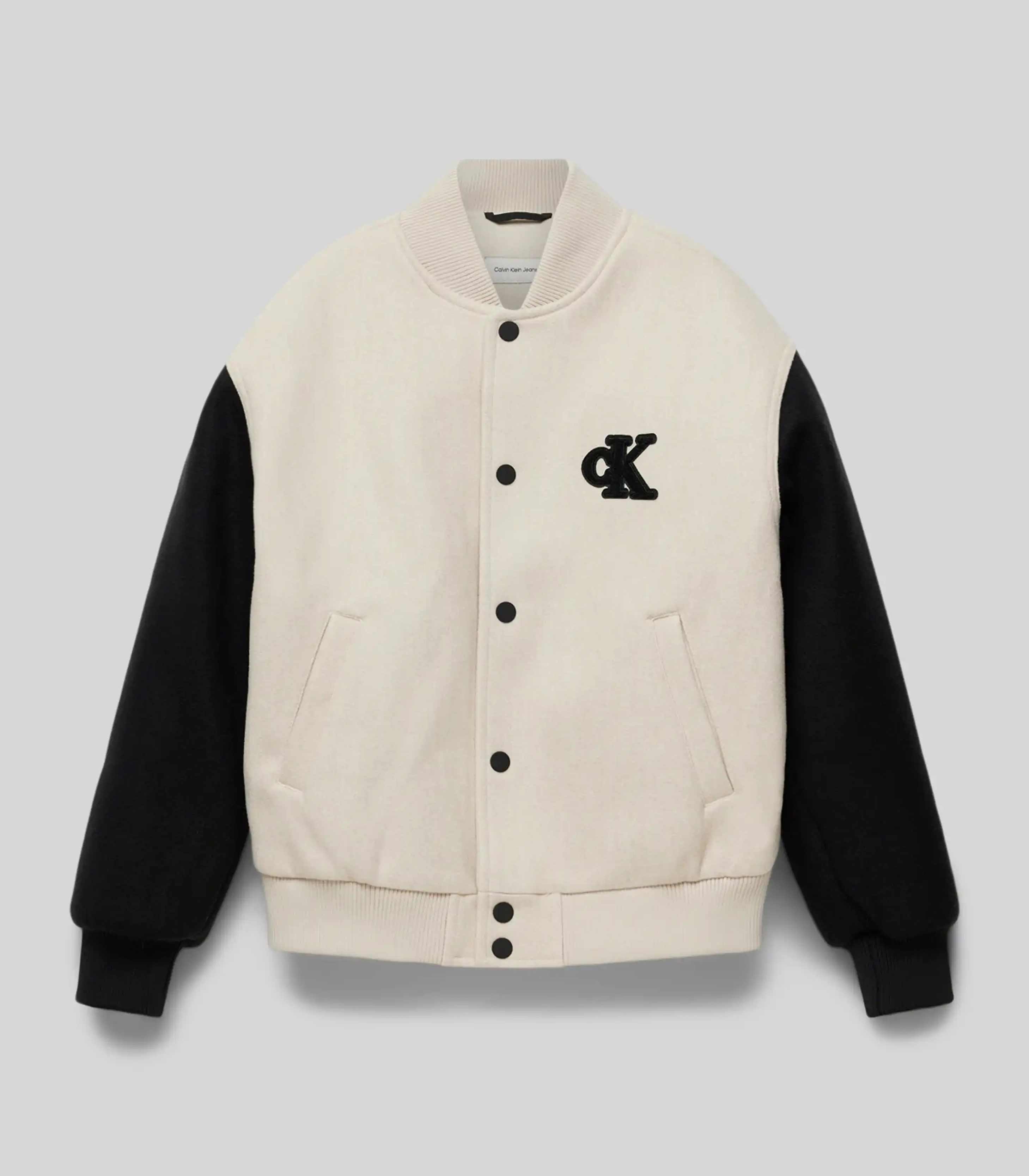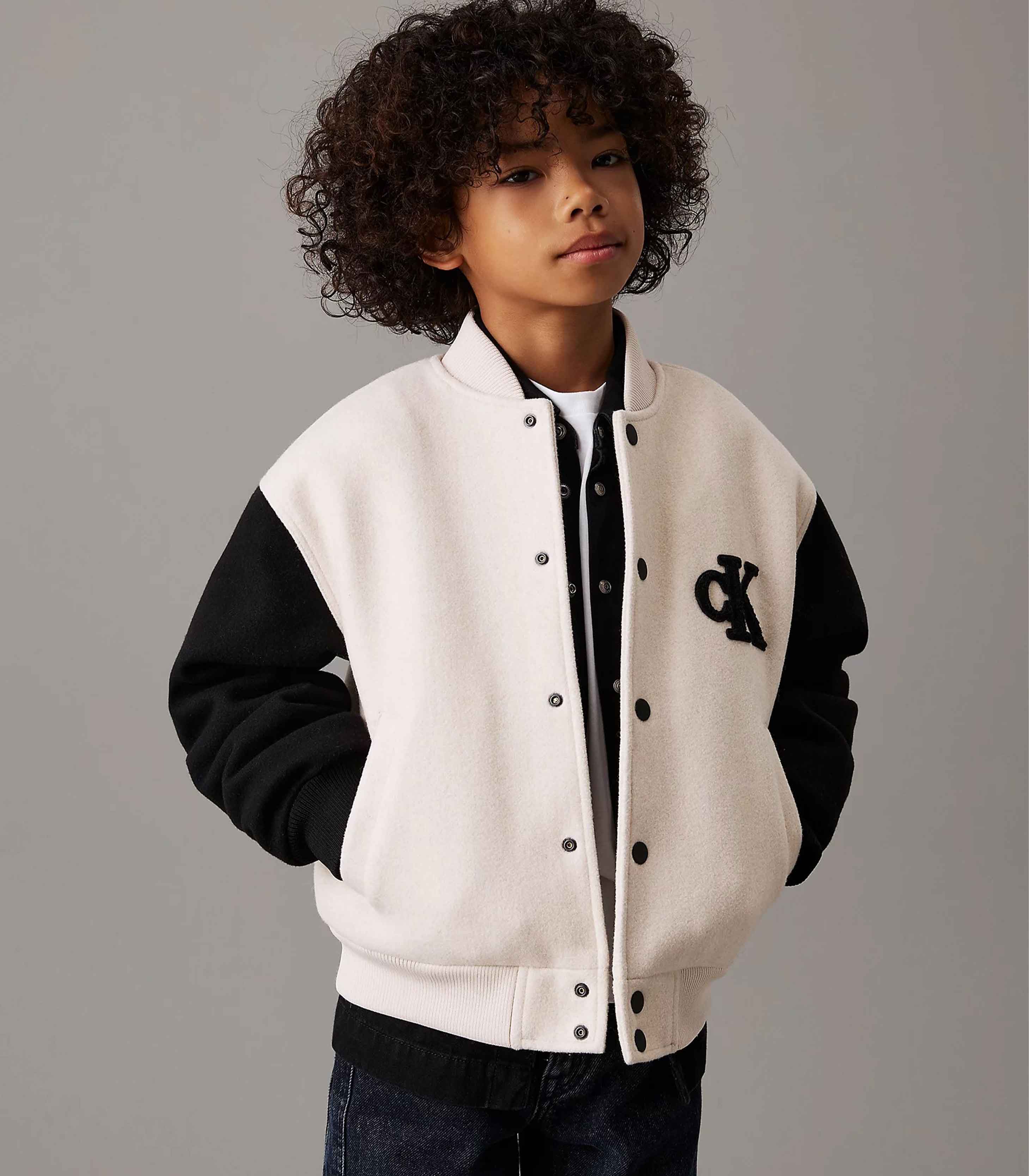 Calvin Klein - HEATHER VARSITY JACKET , 8 , OATMEAL HEATHER , Style IB0IB02294