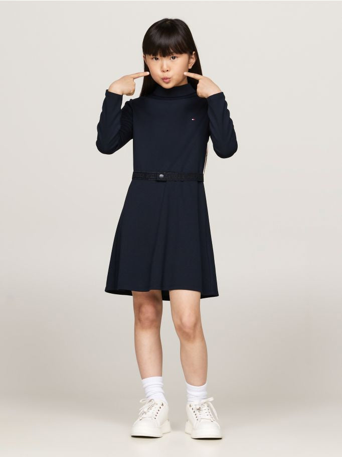 Tommy Hilfiger - Girls Belted Long Sleeve Extra Slim Dress