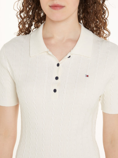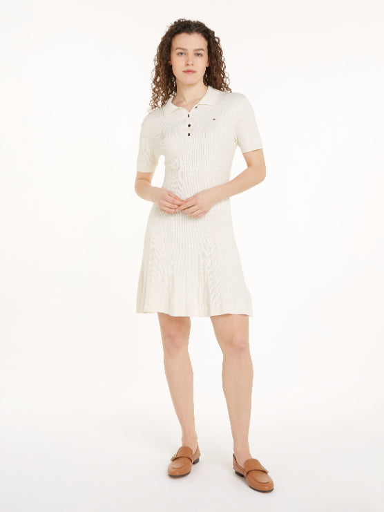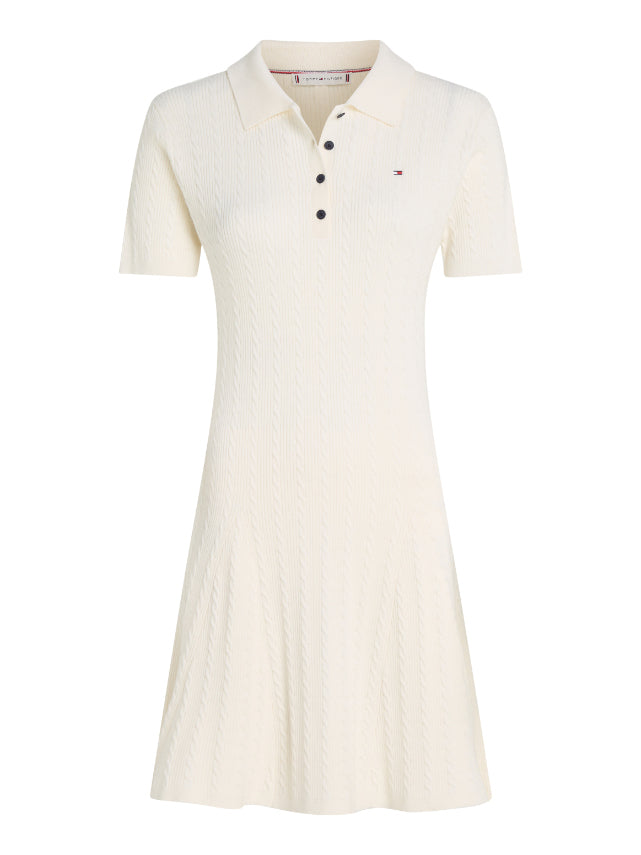Tommy Hilfiger - CO CABLE POLO SS SWT DRESS , L , Ivory Petal , Style WW0WW43087