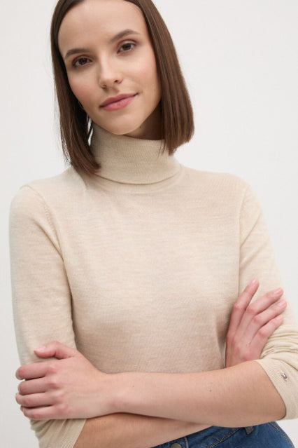 Tommy Hilfiger - MERINO ROLL-NK LS SWEATER , XL , Classic Beige Heather , Style WW0WW43098