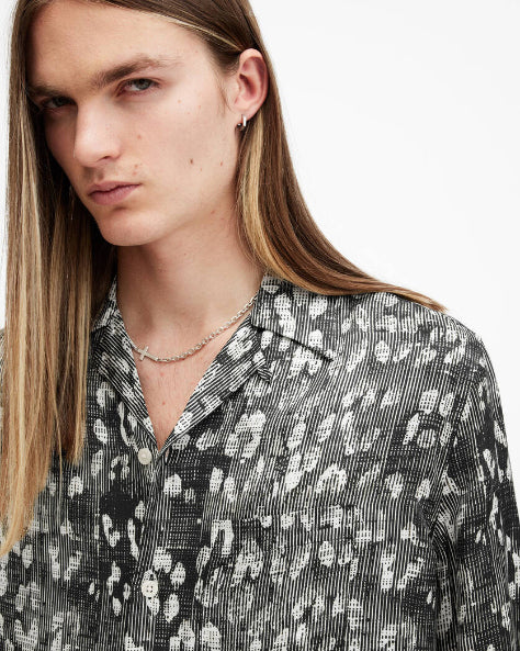 • Our Hawaiian shirts are a key piece for layering. Try the Oscillation – it's based on one of our bestselling shirt designs, with an added dose of leopard print (our favorite). Made from a responsibly sourced lightweight fabric, the shape is super relaxed with a revere collar and short sleeves.