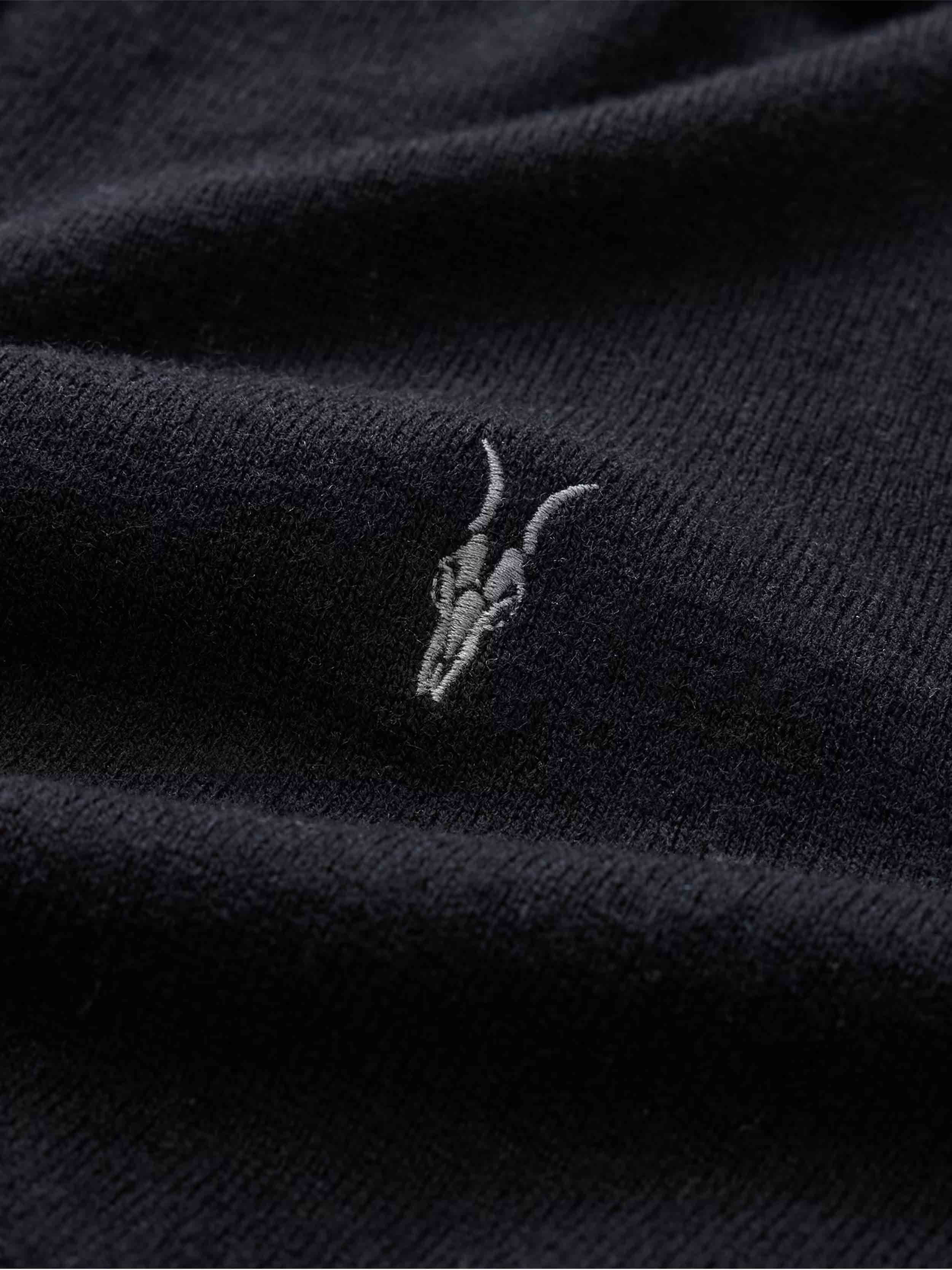 • A knitted take on a favourite – this is the Kilburn Zip Funnel Neck Jumper. Inspired by the Raven Sweatshirt, it's crafted from a wool-blend fabric for warmth. Detailed with our Ramskull on the chest.
