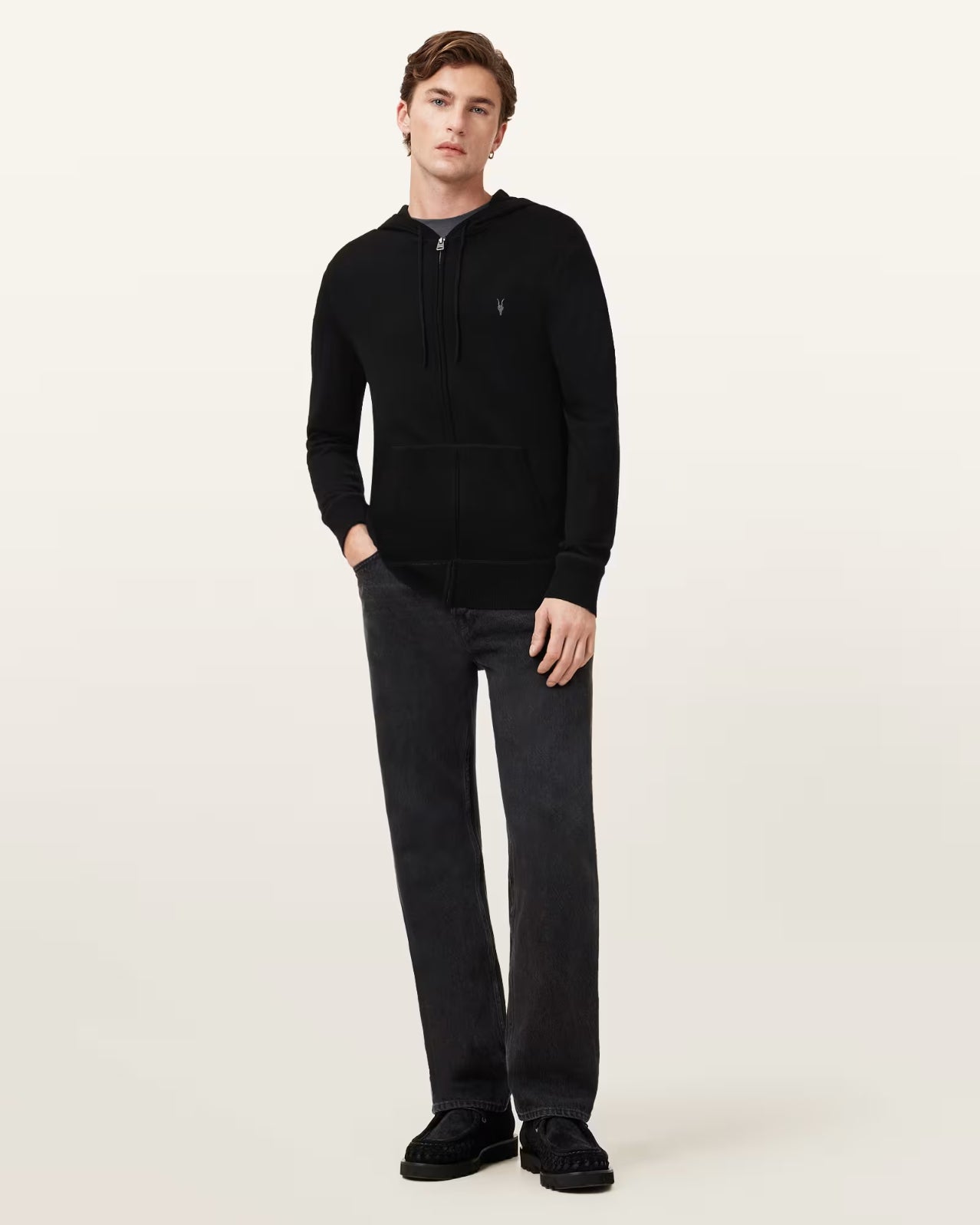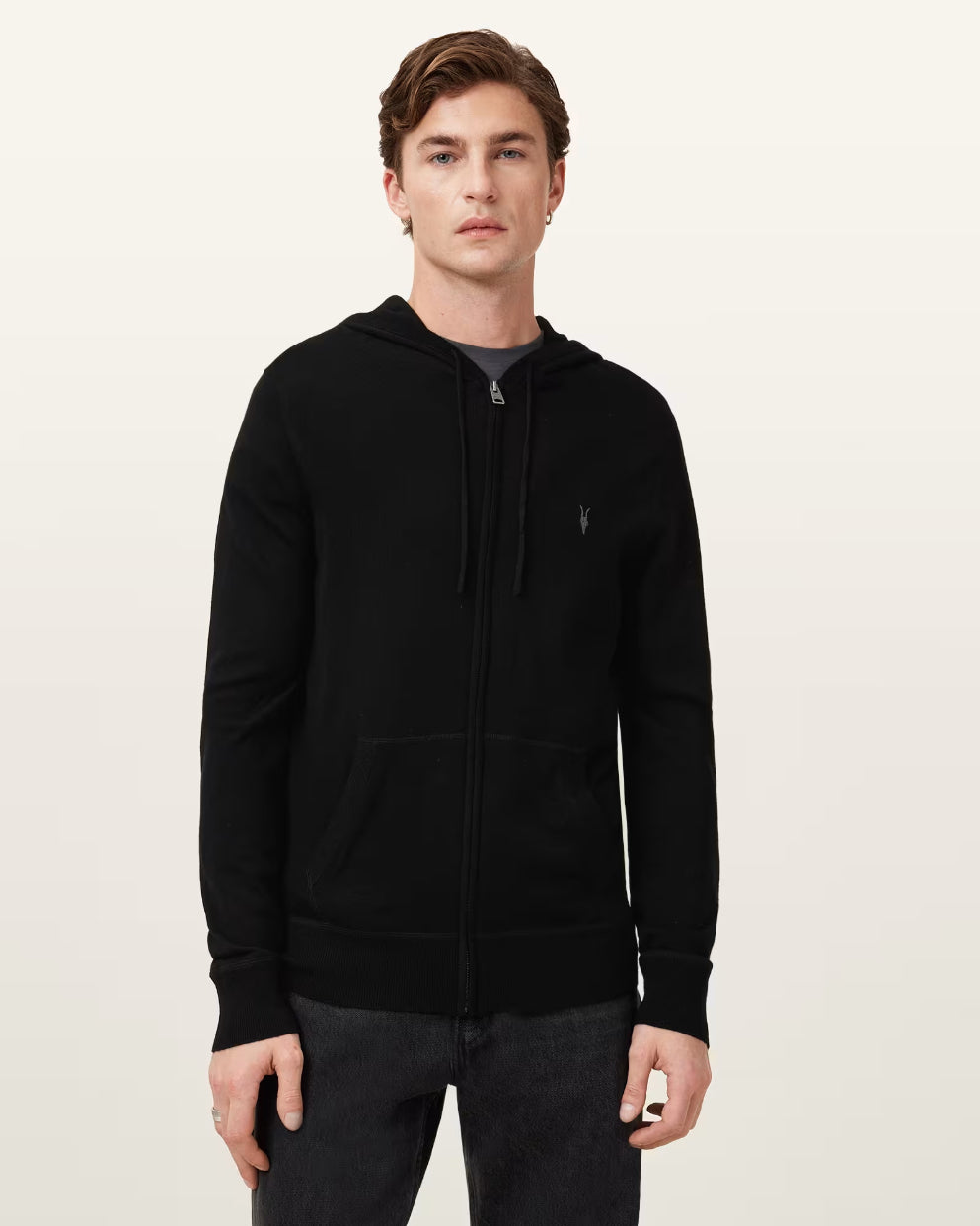 • AllSaints - Men's Mode Merino Zip Up Ramskull Hoodie