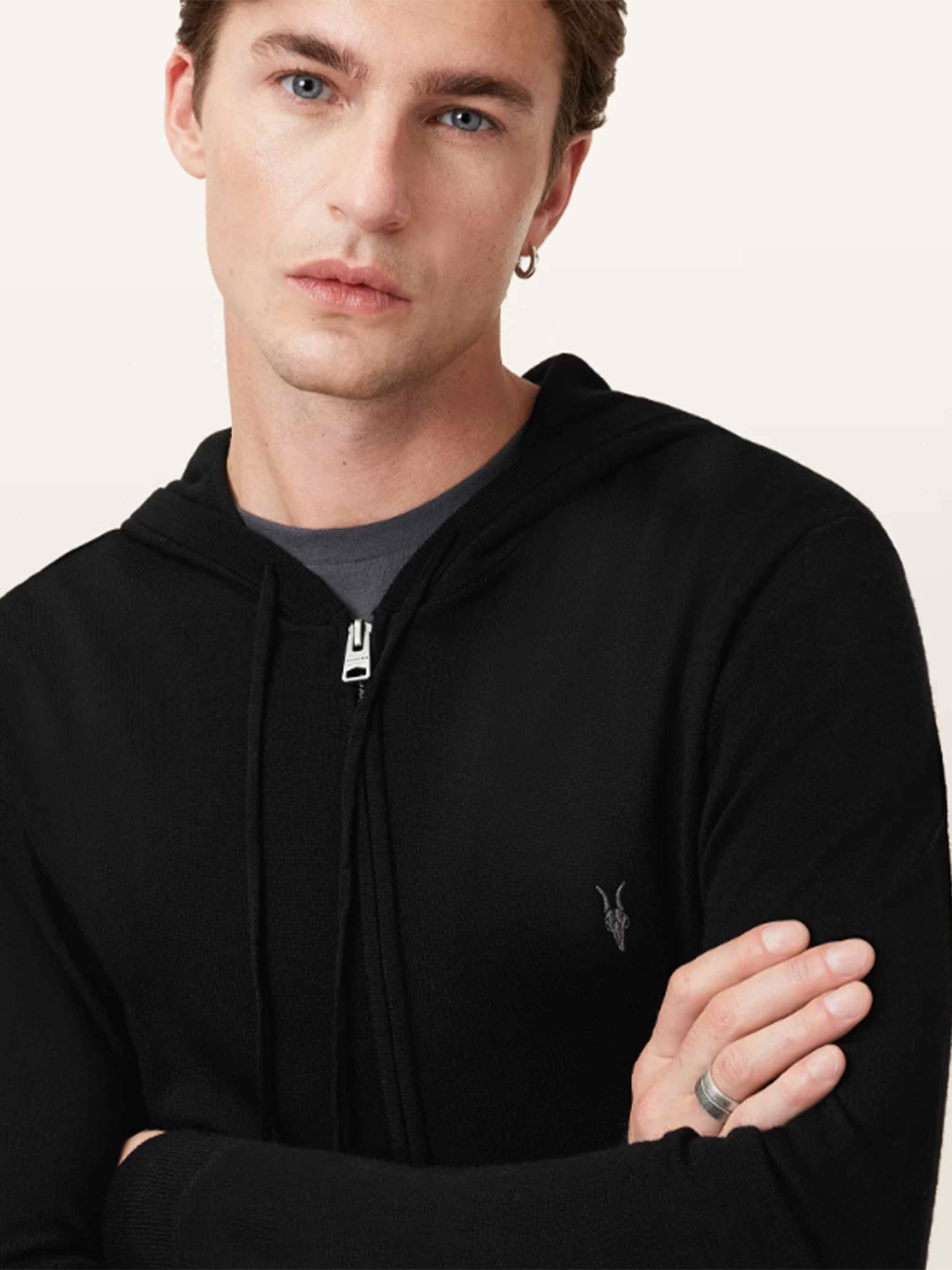AllSaints - Men's Mode Merino Zip Up Ramskull Hoodie