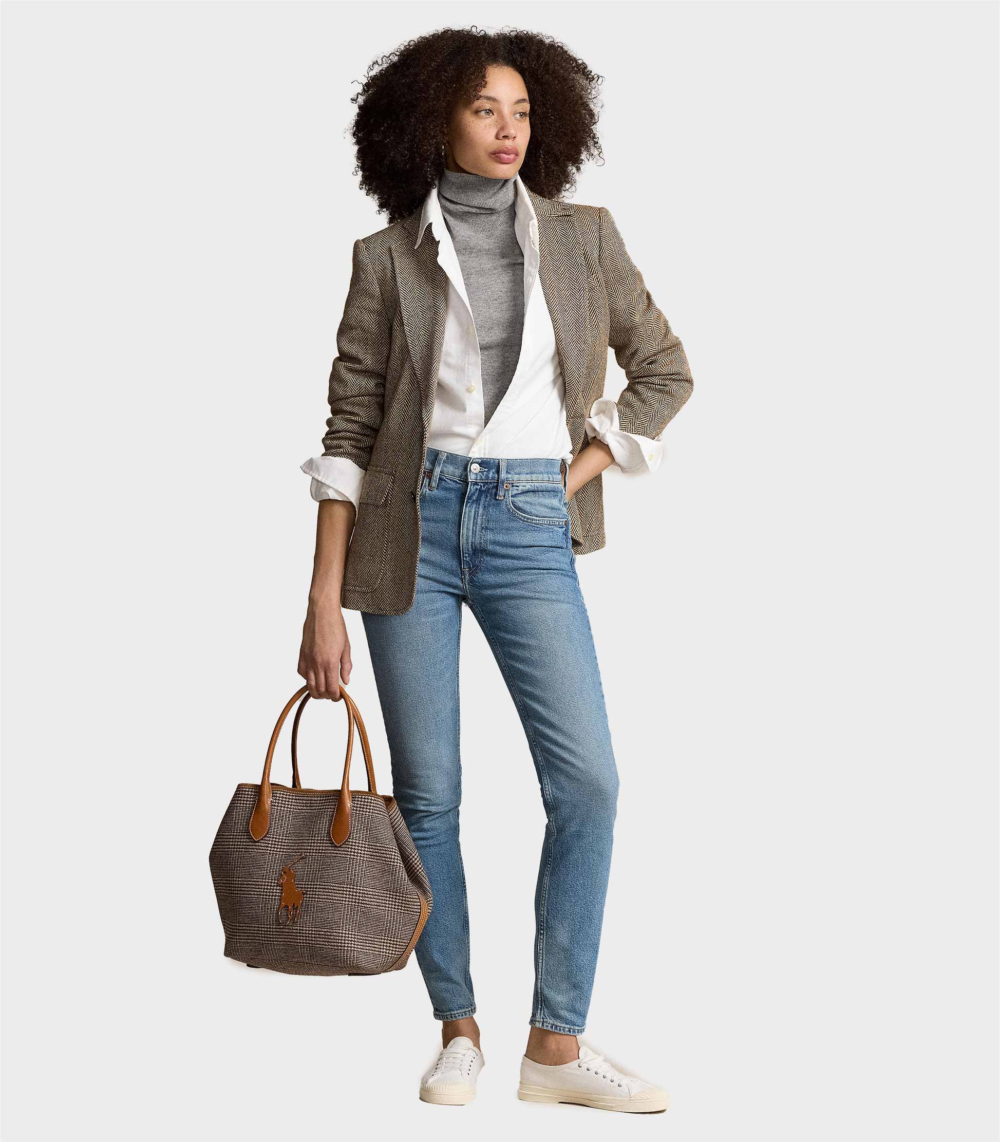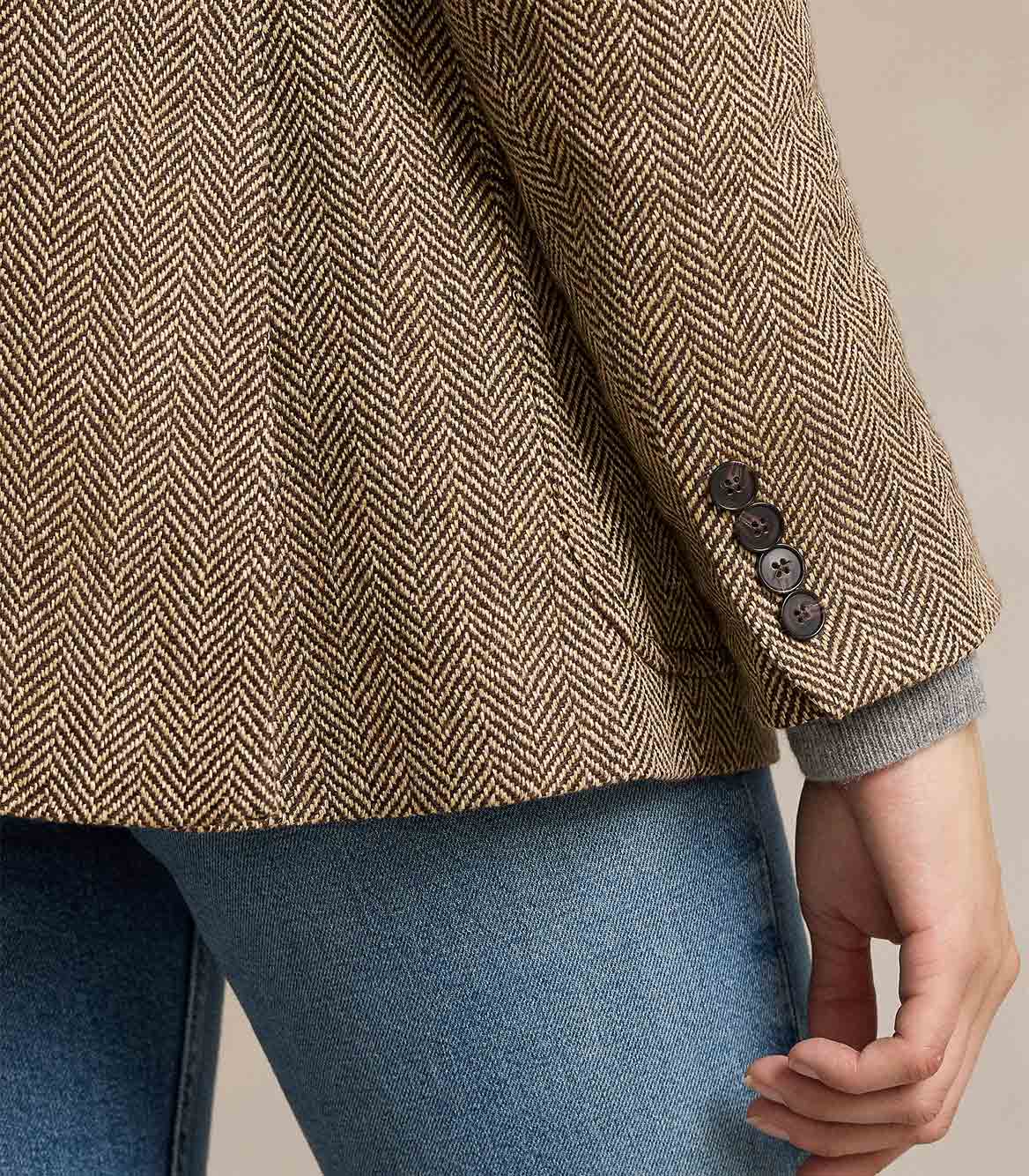• Featuring a timeless herringbone pattern, this blazer is masterfully crafted in Portugal with a luxe blend of Italian-spun yarn. A sophisticated staple, it's enhanced with traditional tailoring details, including waist darts and princess seams.