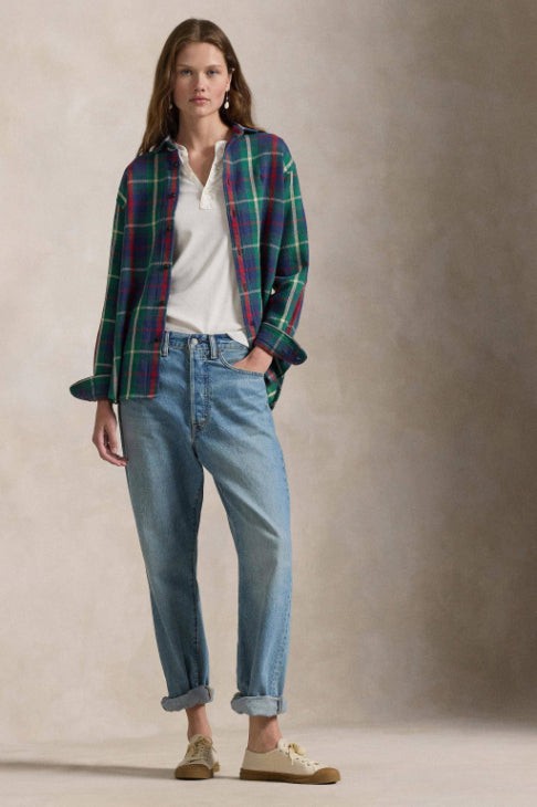 • This relaxed-fitting cotton shirt has a classic plaid motif, a high-low shirttail hem and our signature embroidered Pony on the left chest.