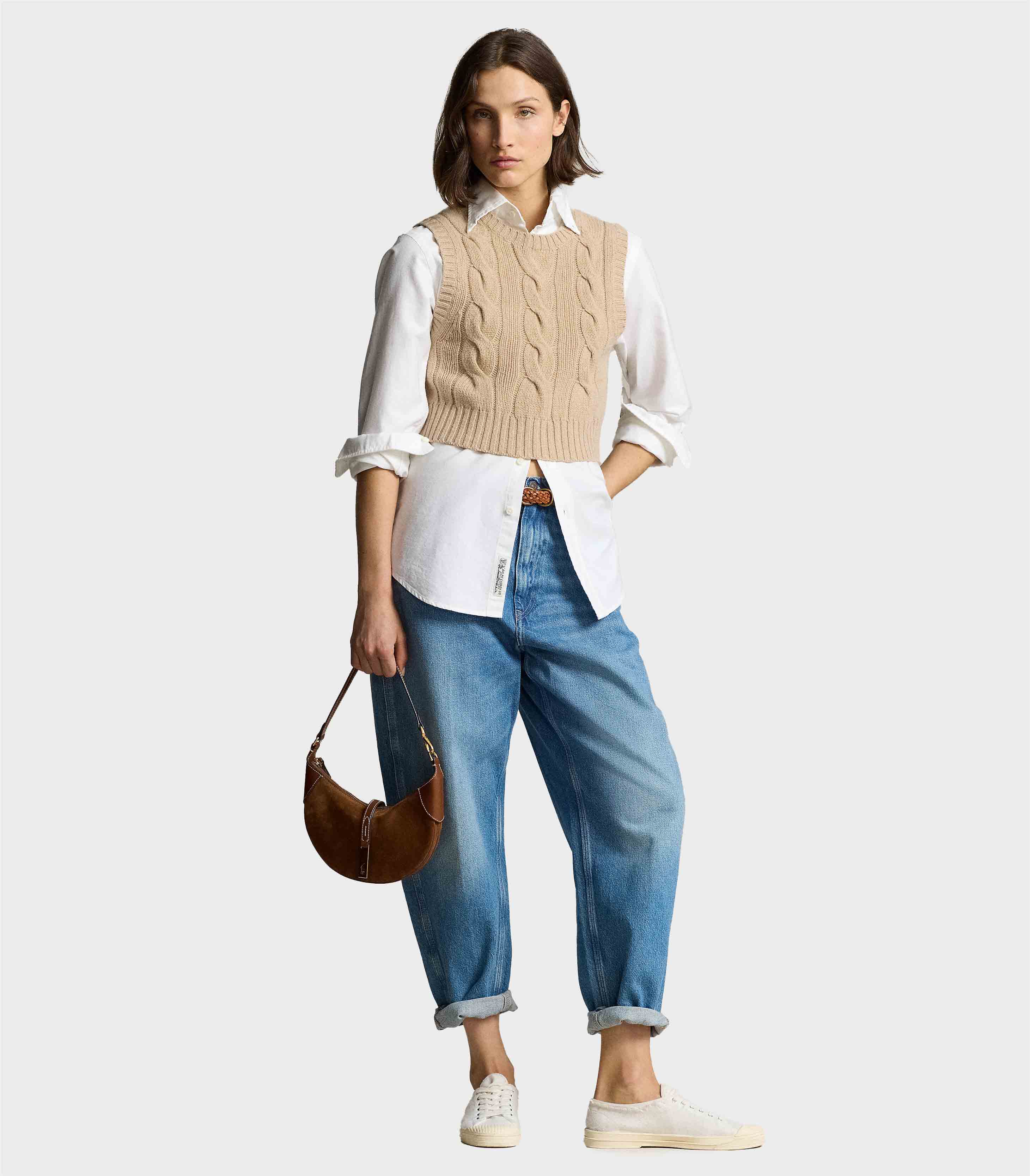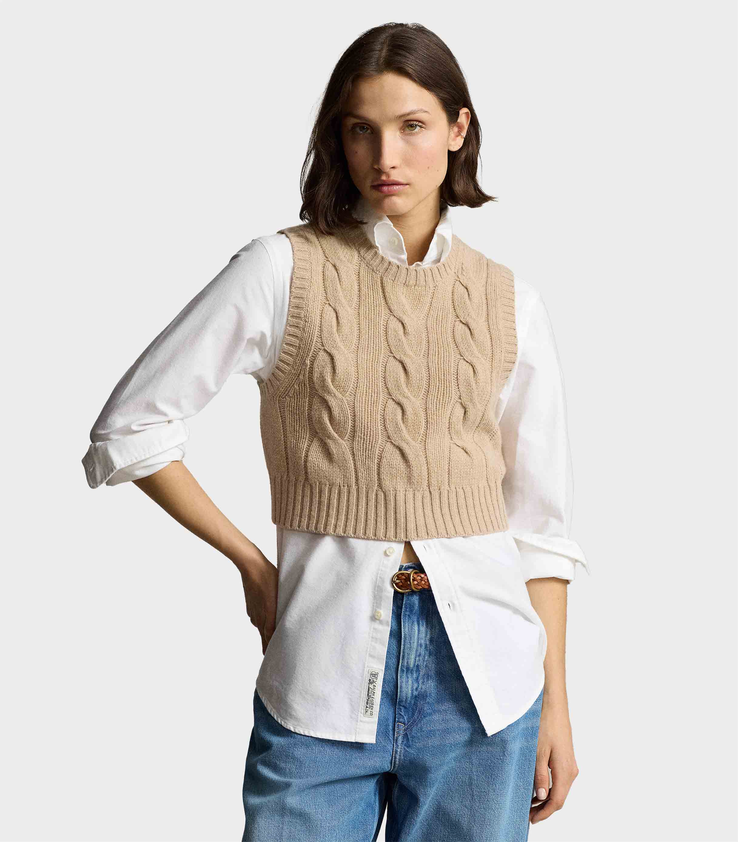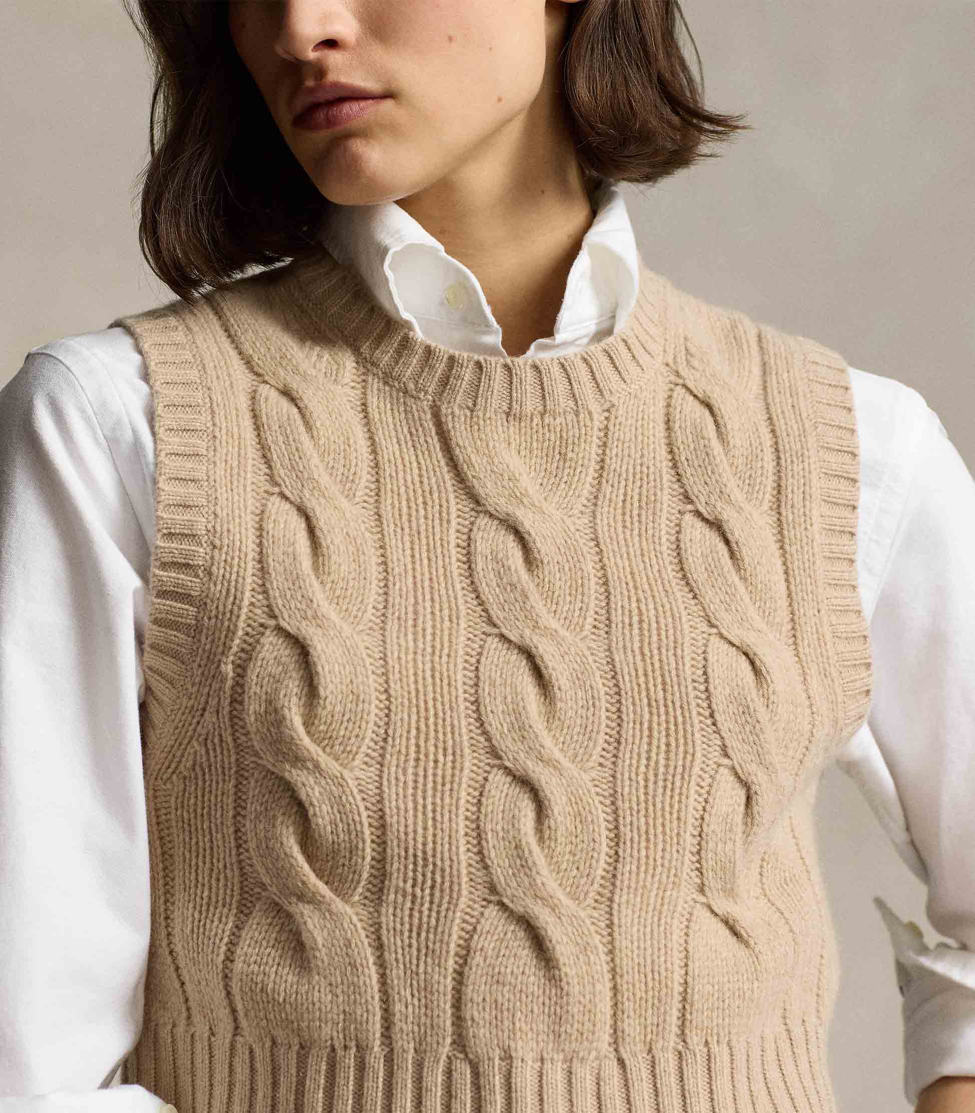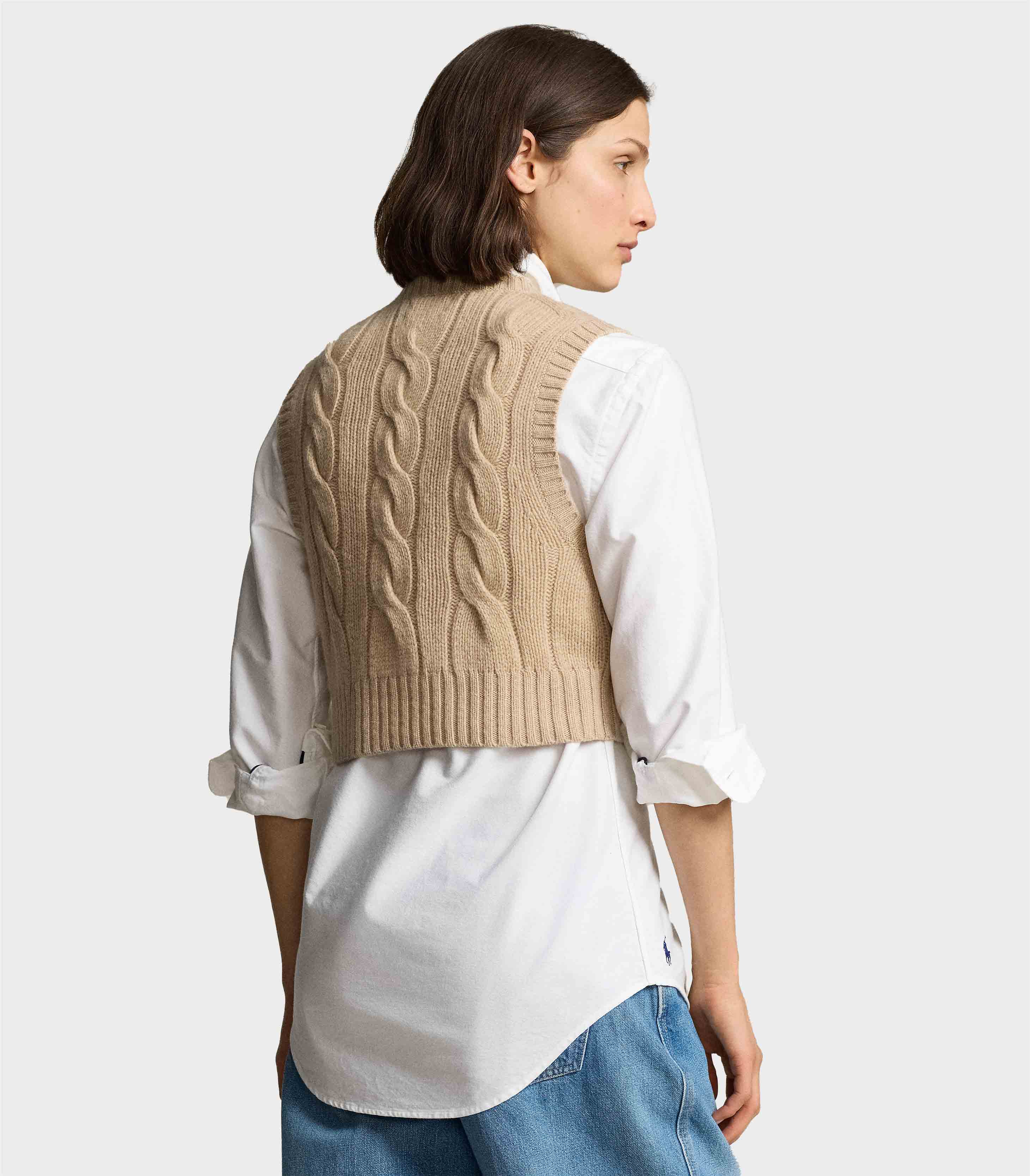 • Cut for a modern, cropped silhouette, this wool-and-cashmere sleeveless jumper features an oversize rendering of our signature cable-knit motif.