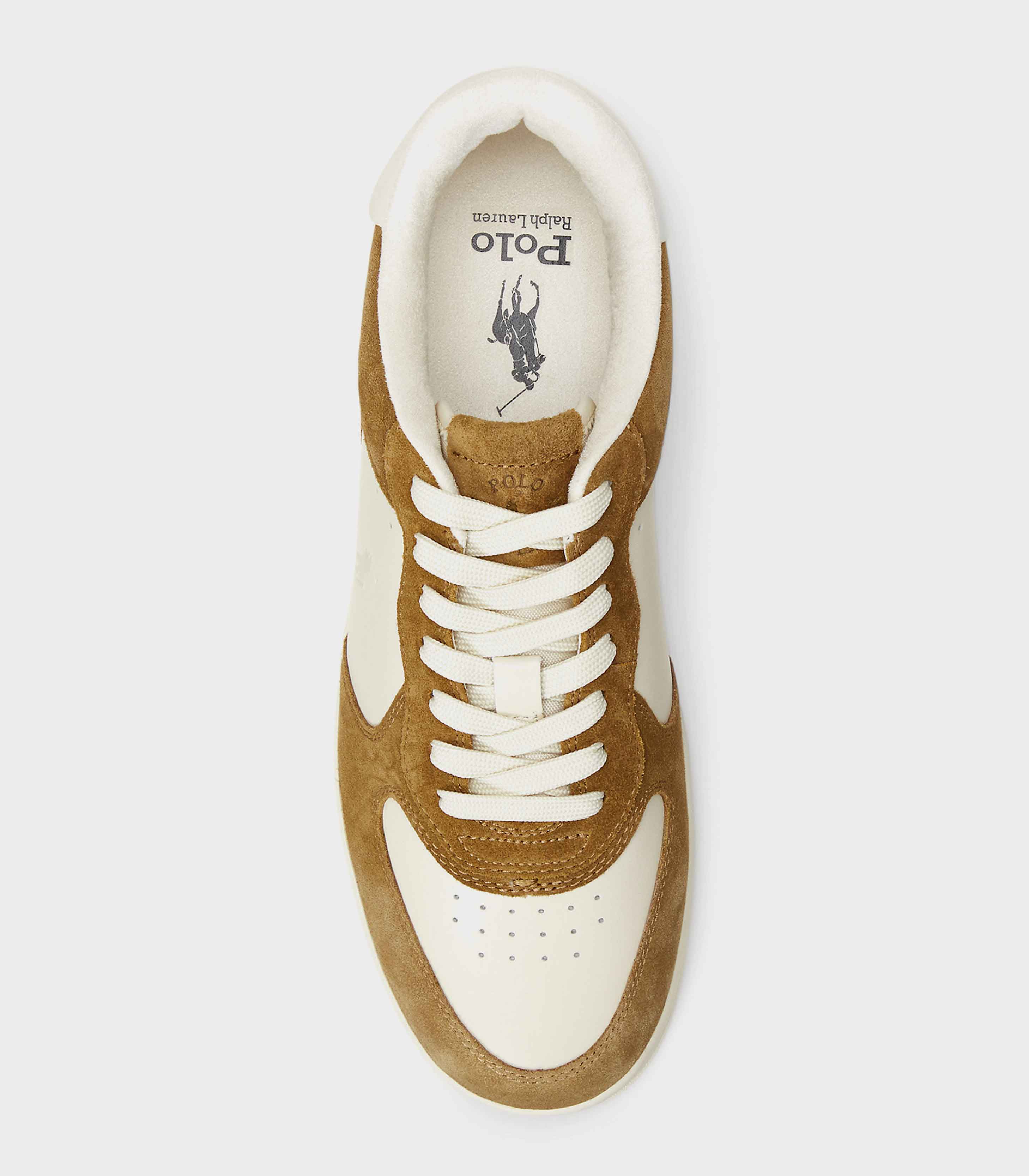 • Signature Pony embossed on the outer side. "Polo Ralph Lauren"-debossed leather patch on the tongue. "Polo" debossed on the heel.