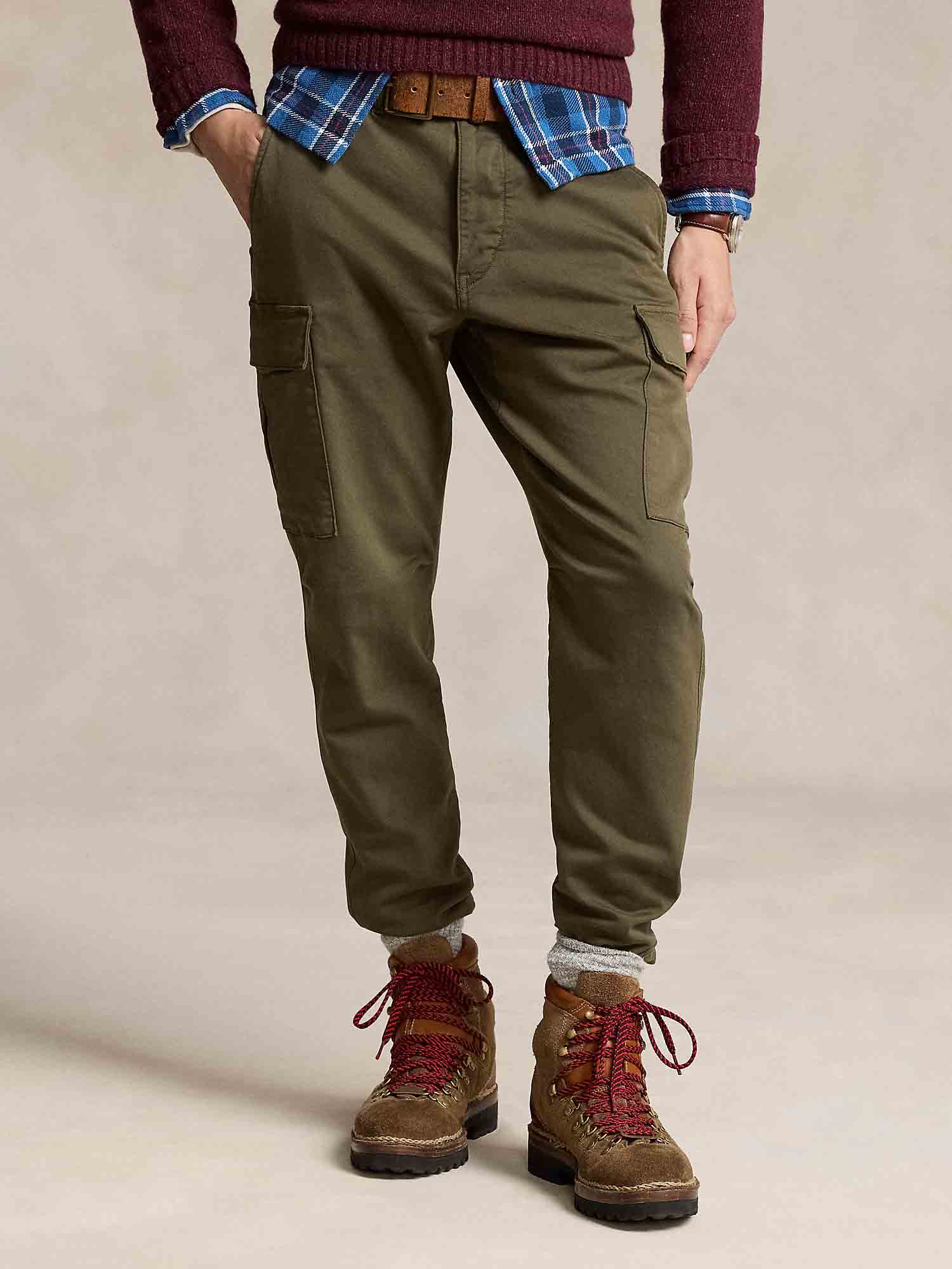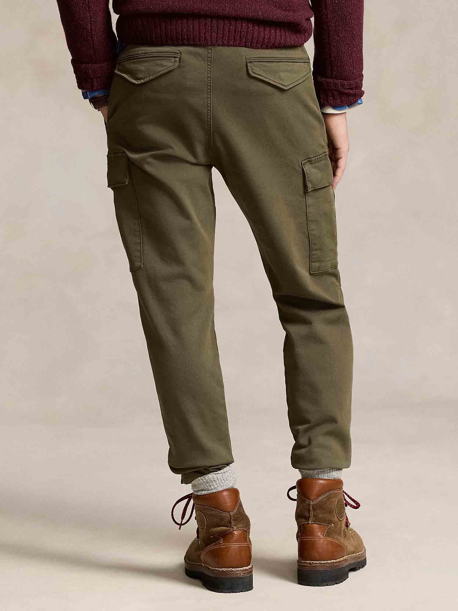 • The classic cargo trouser gets a modern Polo upgrade with a drawstring waist and slim silhouette. This pair is crafted from a knit-like cotton dobby fabric featuring extra stretch for comfort.
