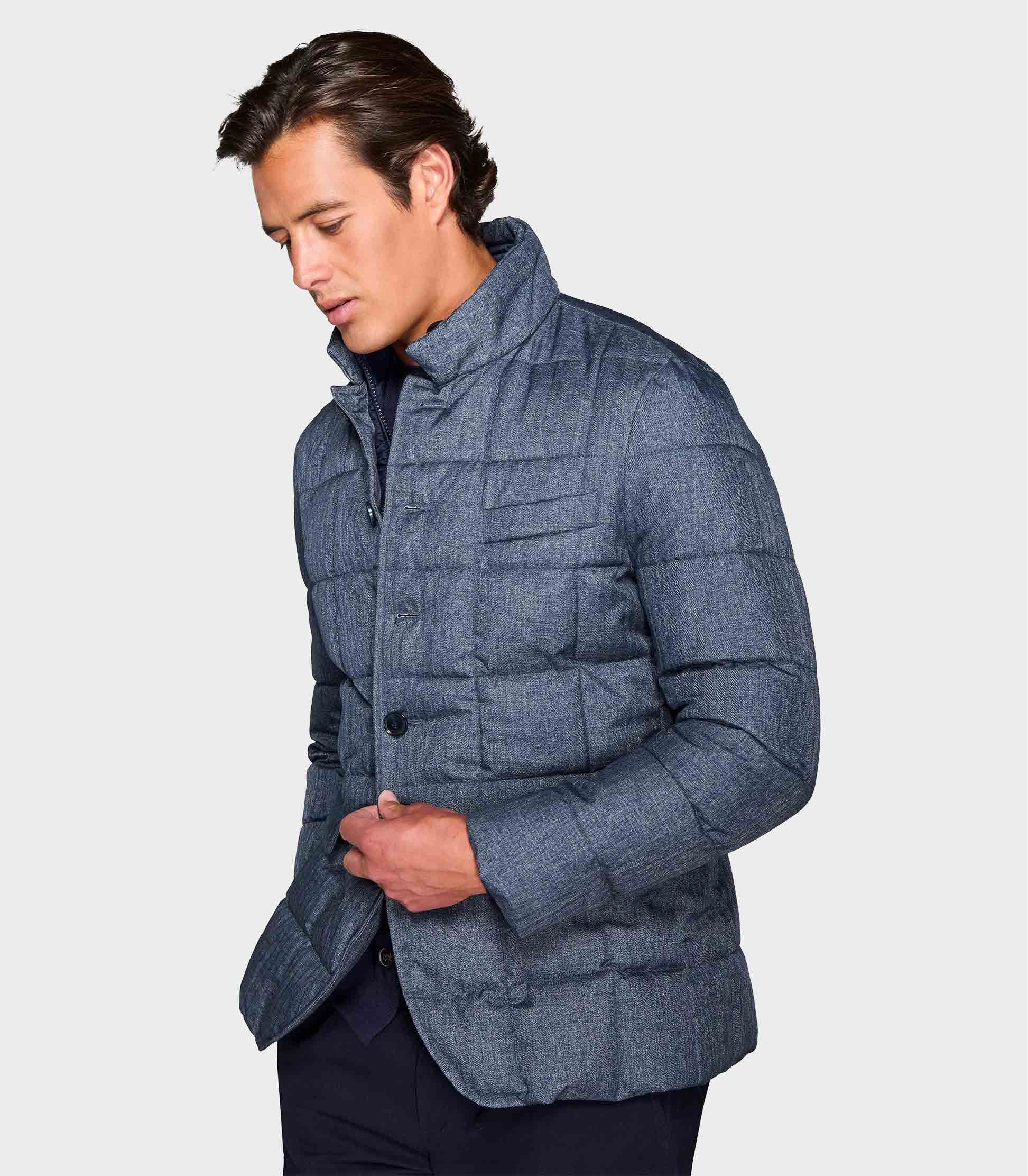 • Crafted with flap pockets, button closure and concealed zip fastening.