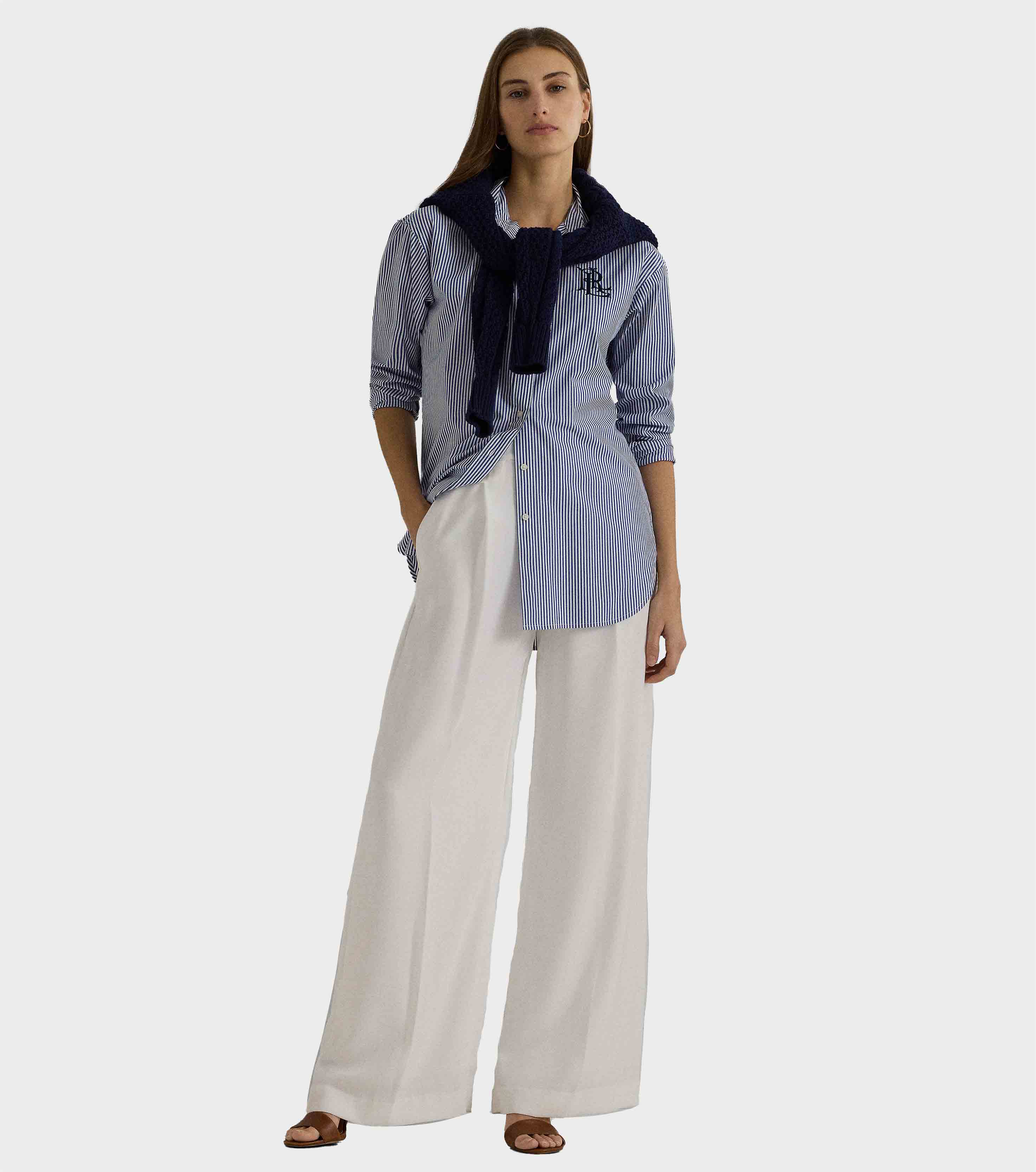 • Point collar. Buttoned placket. "Lauren Ralph Lauren"-engraved buttons.