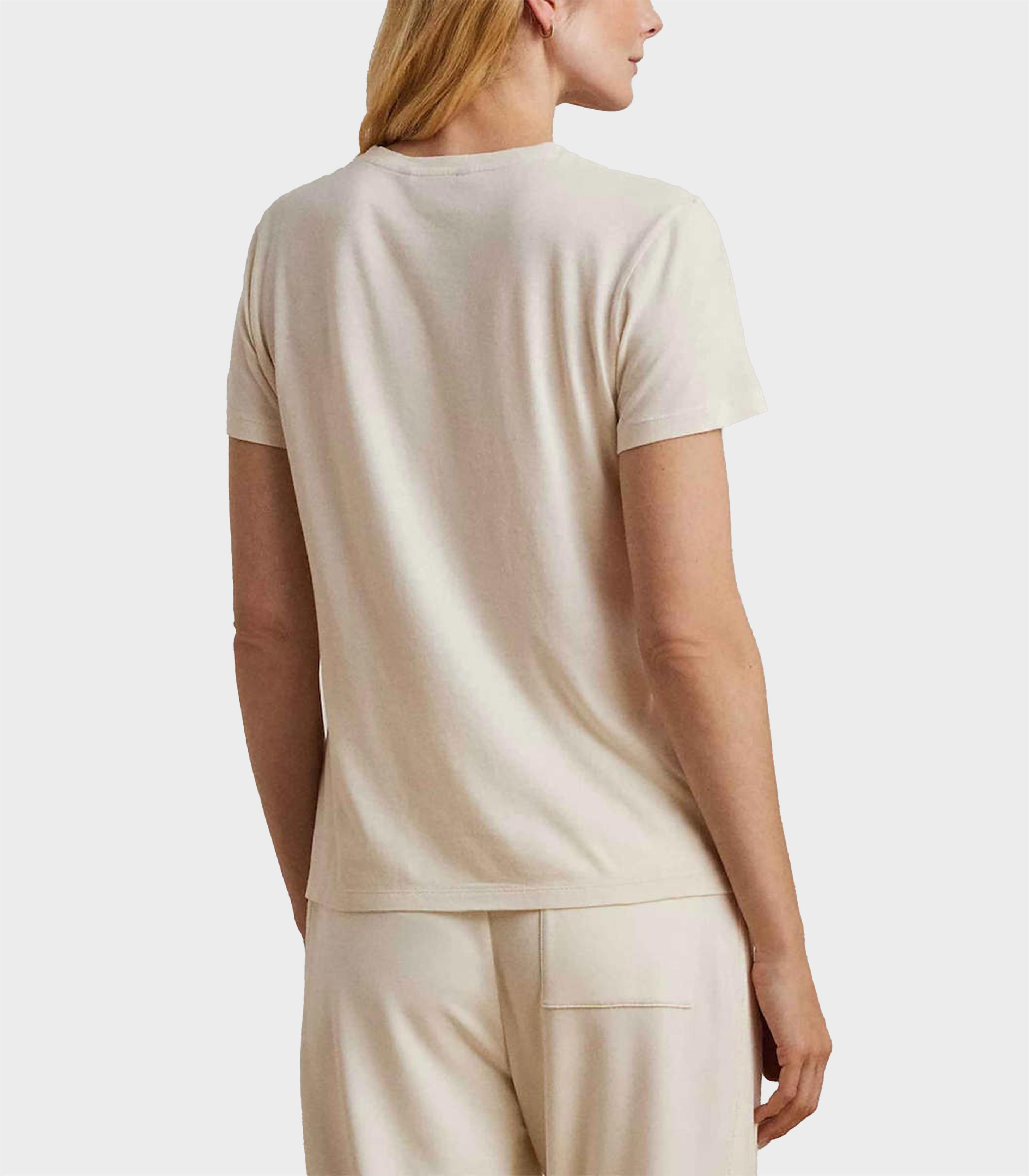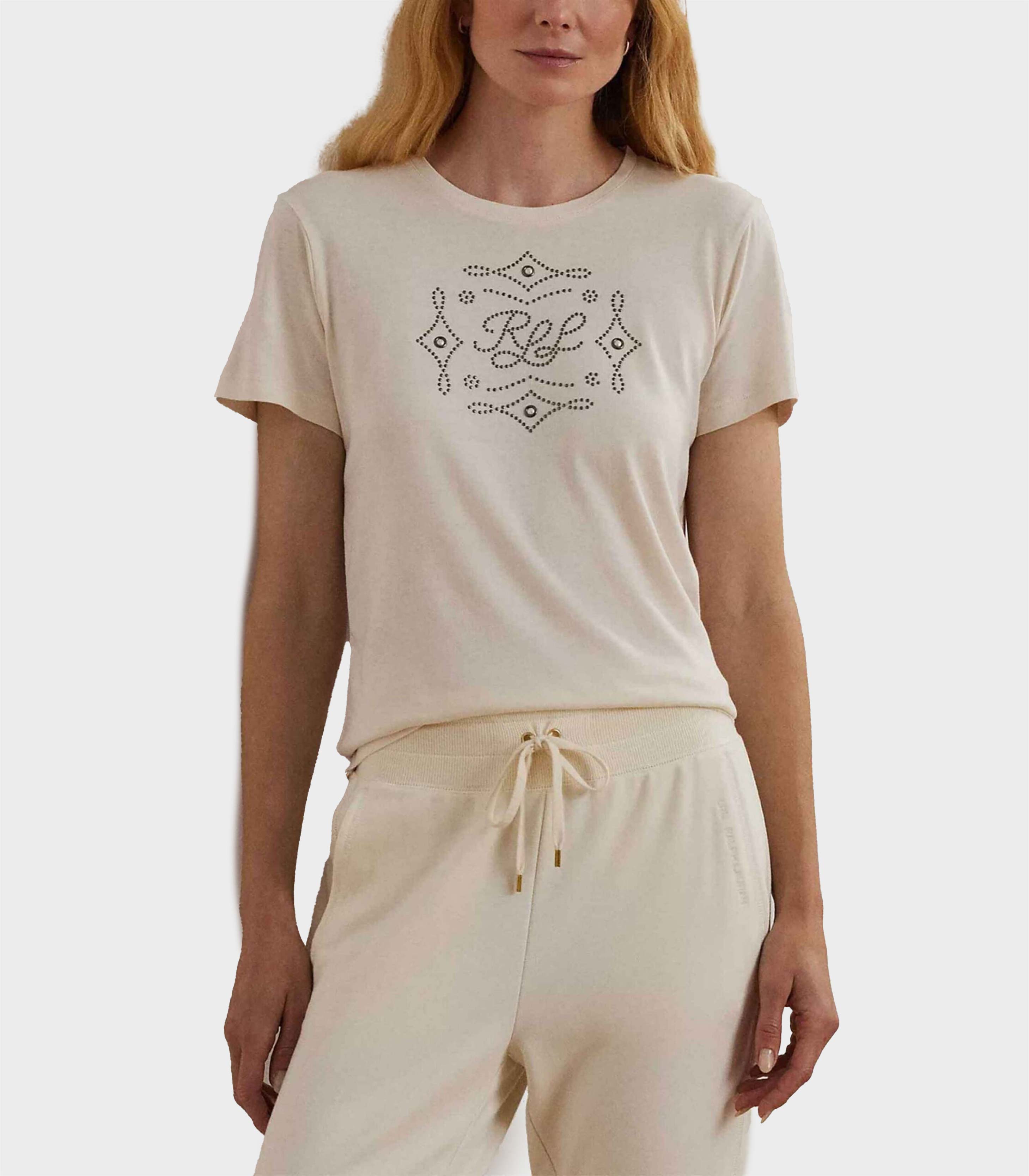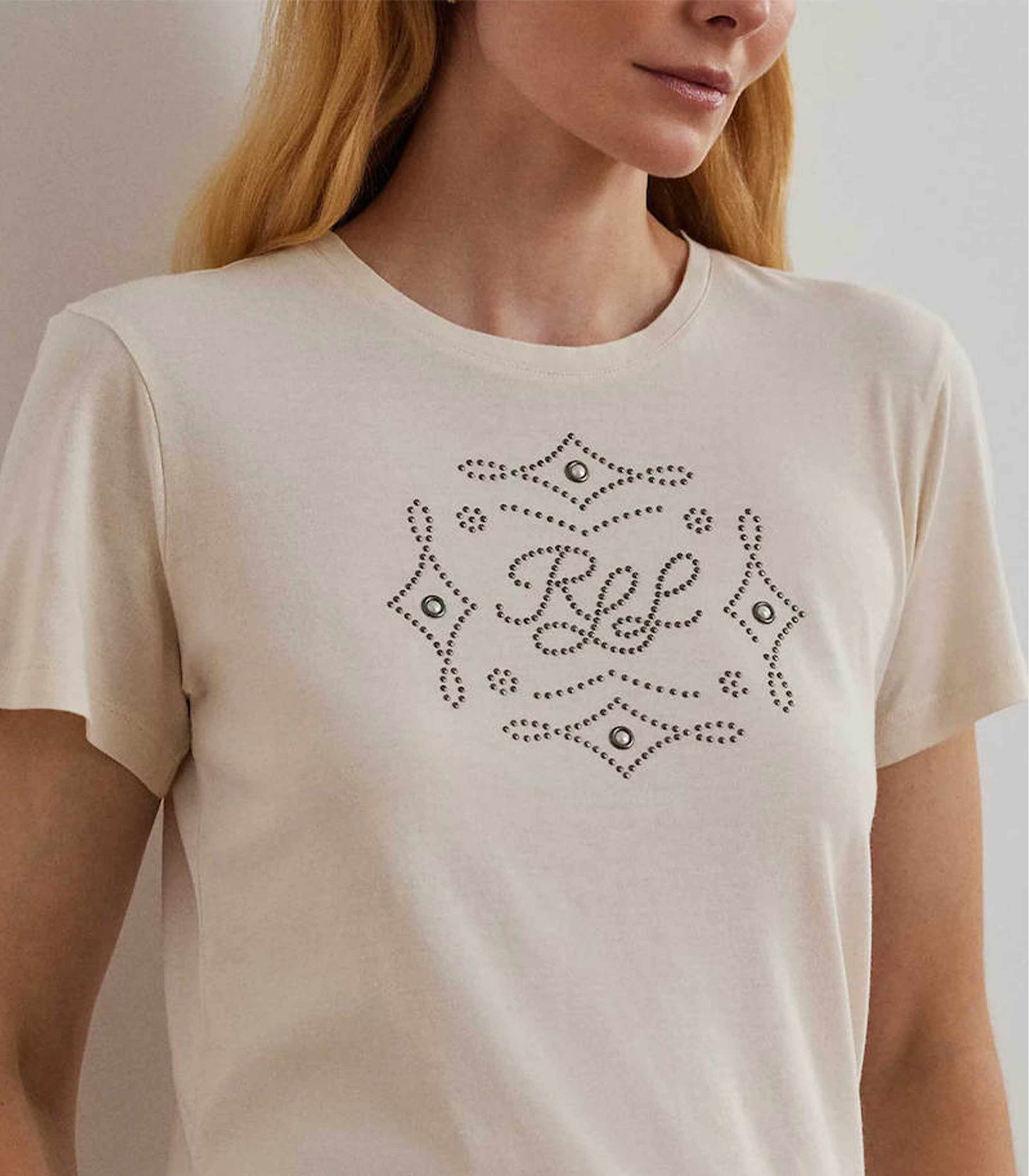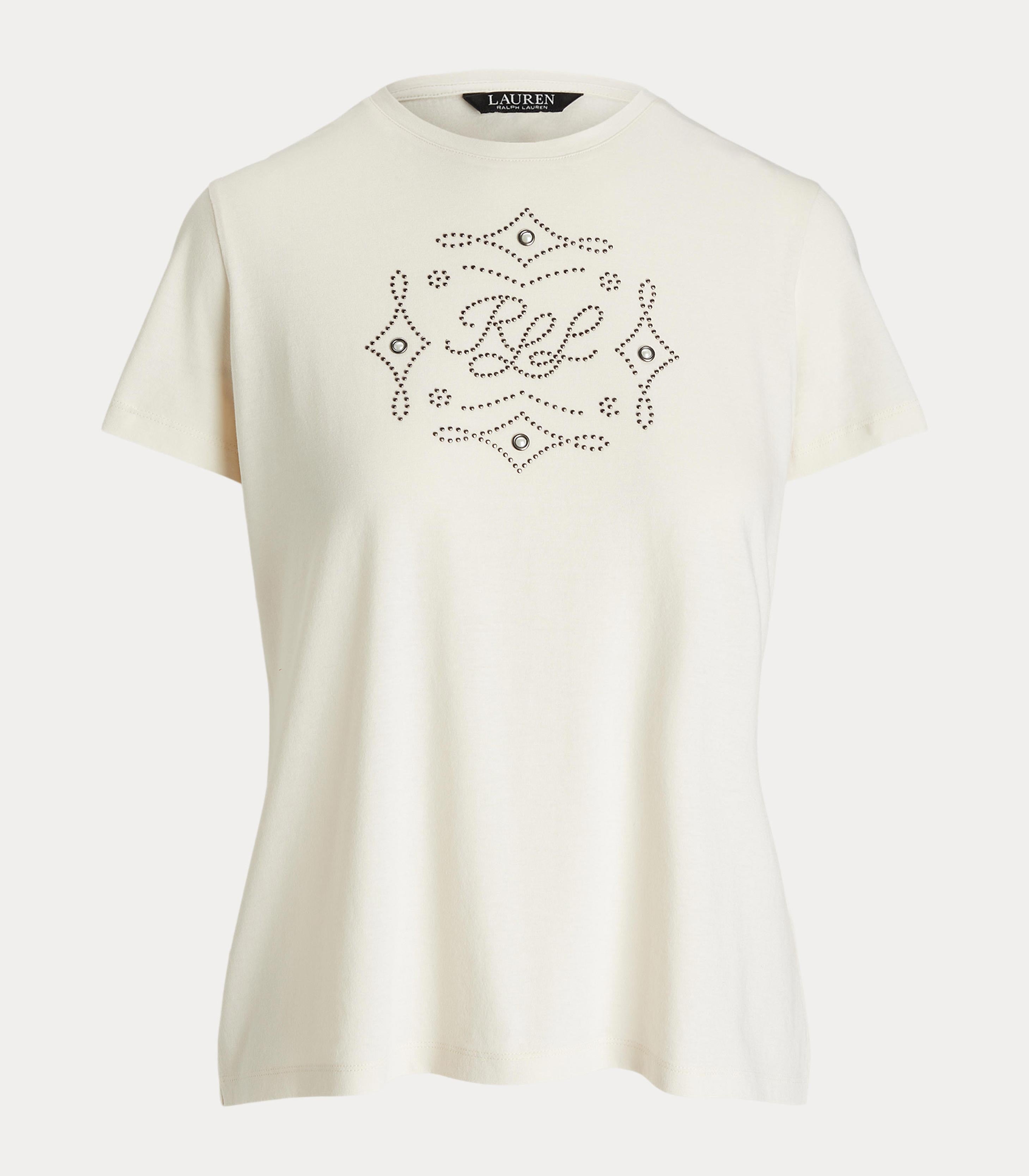 • Casual style with an iconic Lauren Ralph Lauren twist, this relaxed-fitting tee features Lauren's Western-inspired script appliqué logo on the chest, which is composed of bronze and imitation pearl studs. This version is made with breathable cotton-blend jersey for a comfortable feel.