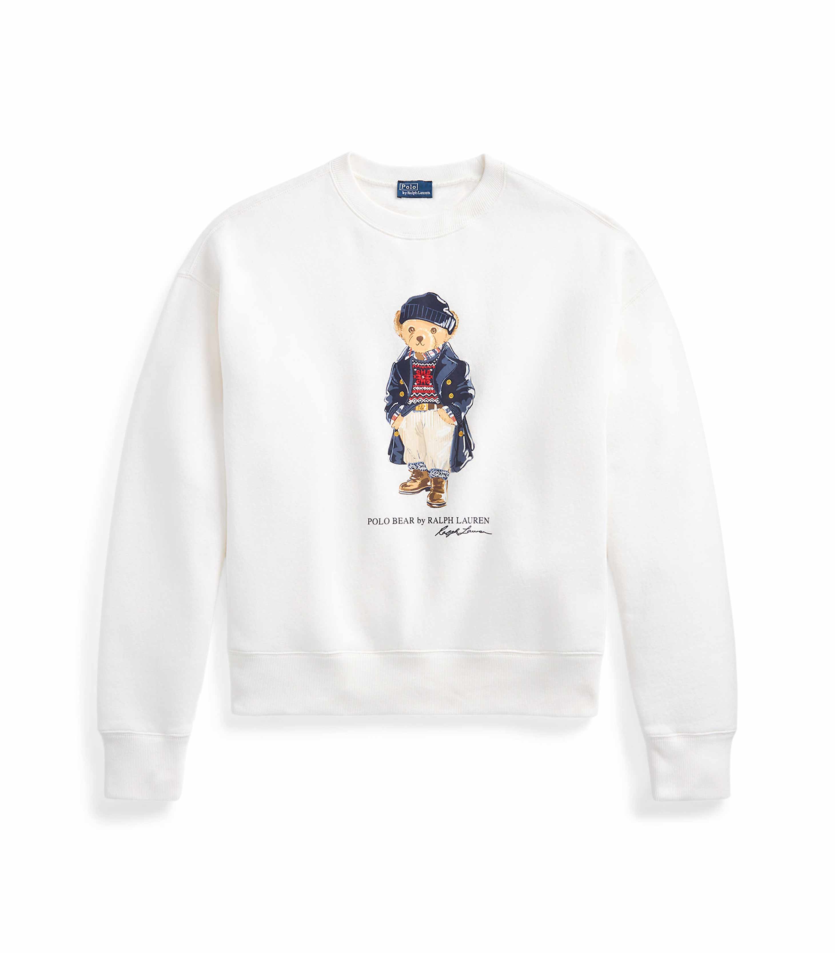 • Crafted from a soft cotton blend, this fleece crewneck features a rubber-printed rendering of Ralph Lauren's signature Polo Bear with embroidered details.