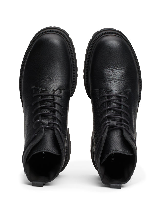 Tommy Hilfiger - Textured Leather Lace-Up Cleat Ankle Boots