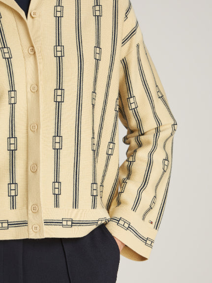 Tommy Hilfiger - GRAPHIC FLAG RLX POLO CARDI LS , S , Graphic Flag Stp/ Night Sky/ Ivory , Style WW0WW43969