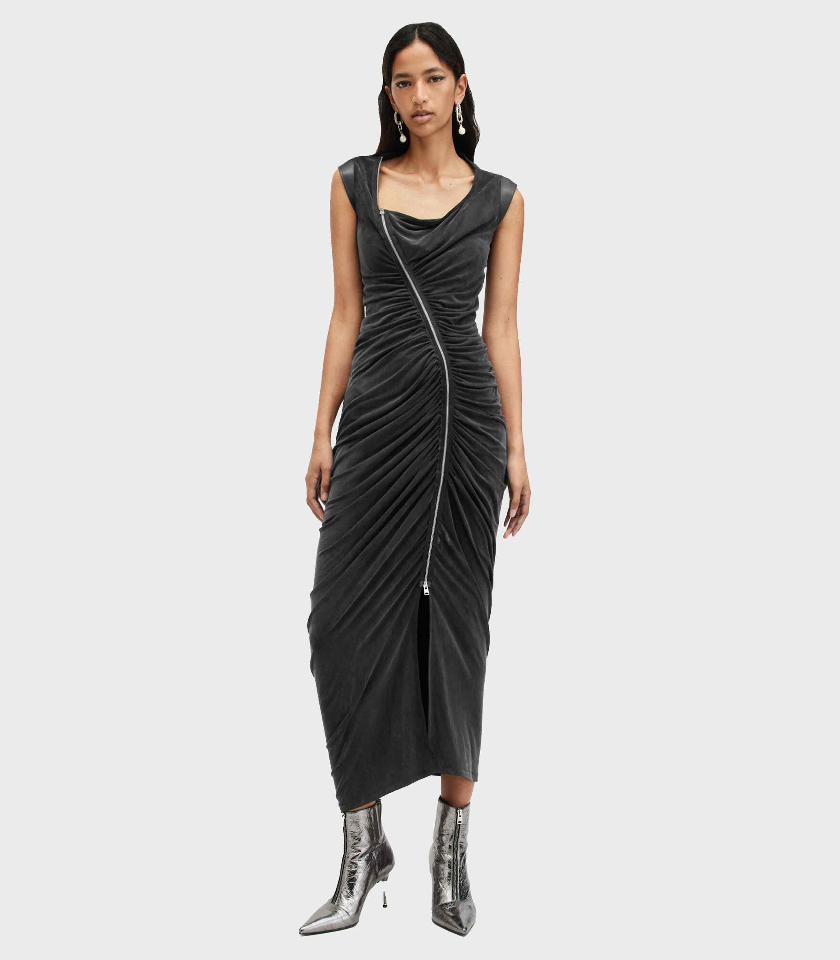 • AllSaints - Umbra Draped Zip Slim Fit Dress