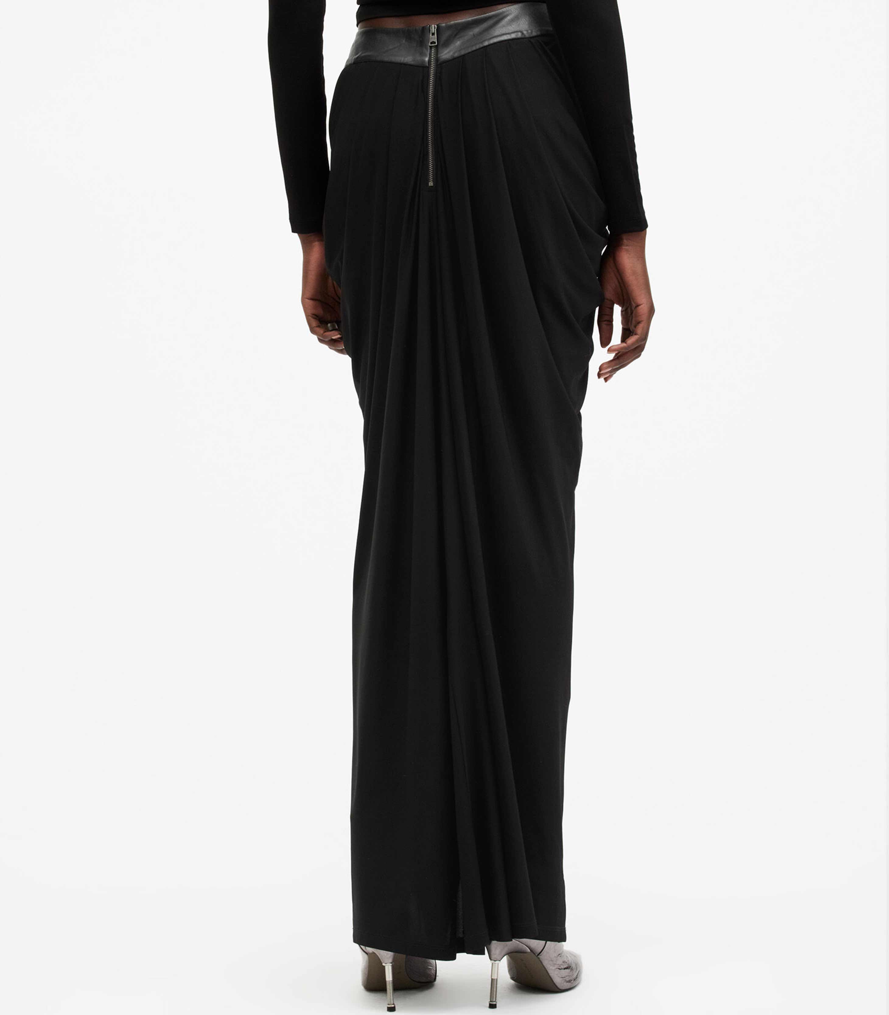 • The Madi Skirt is a dramatic maxi-length with delicate pleating and gathering on the hips creating a slim-fitting hourglass shape.