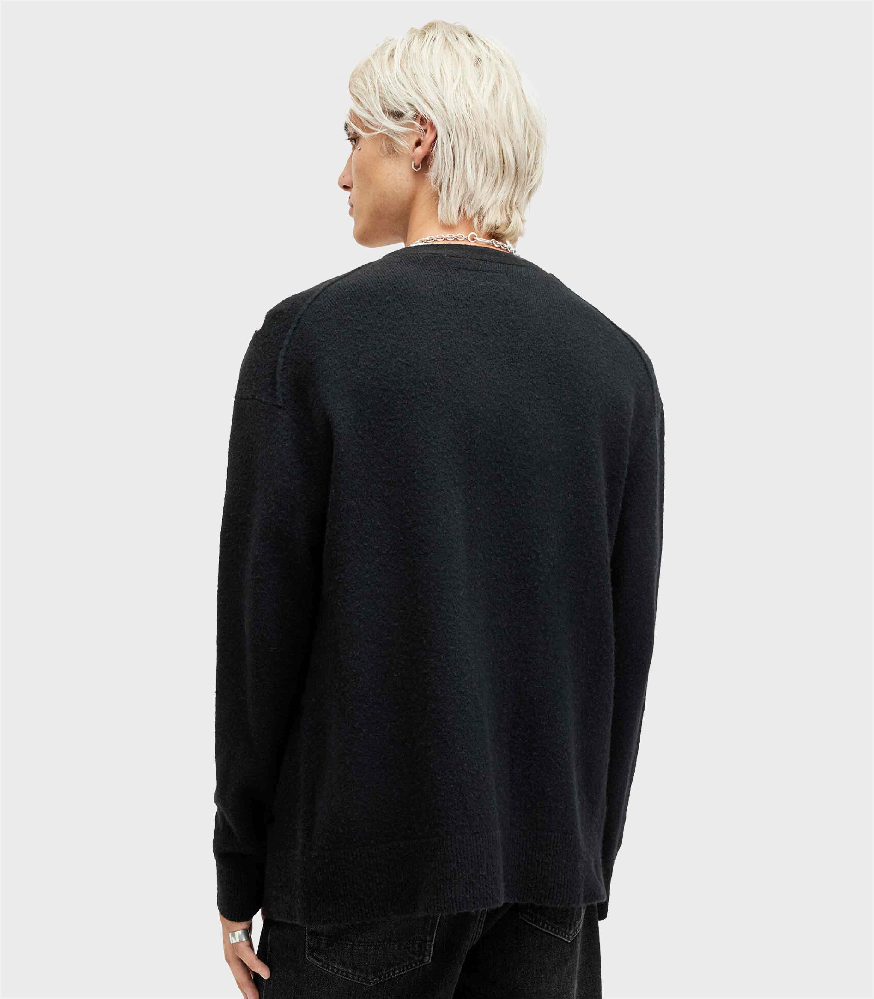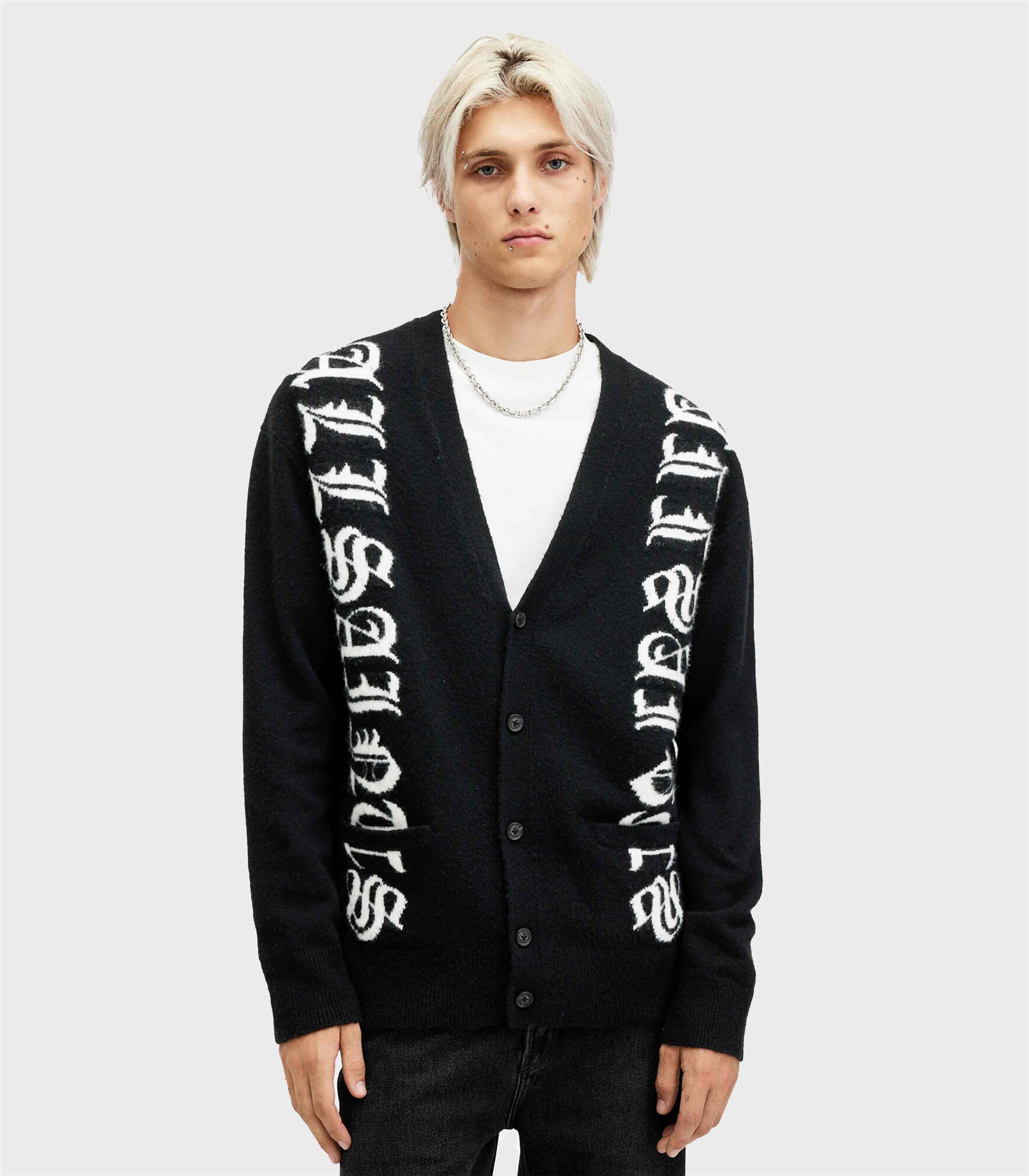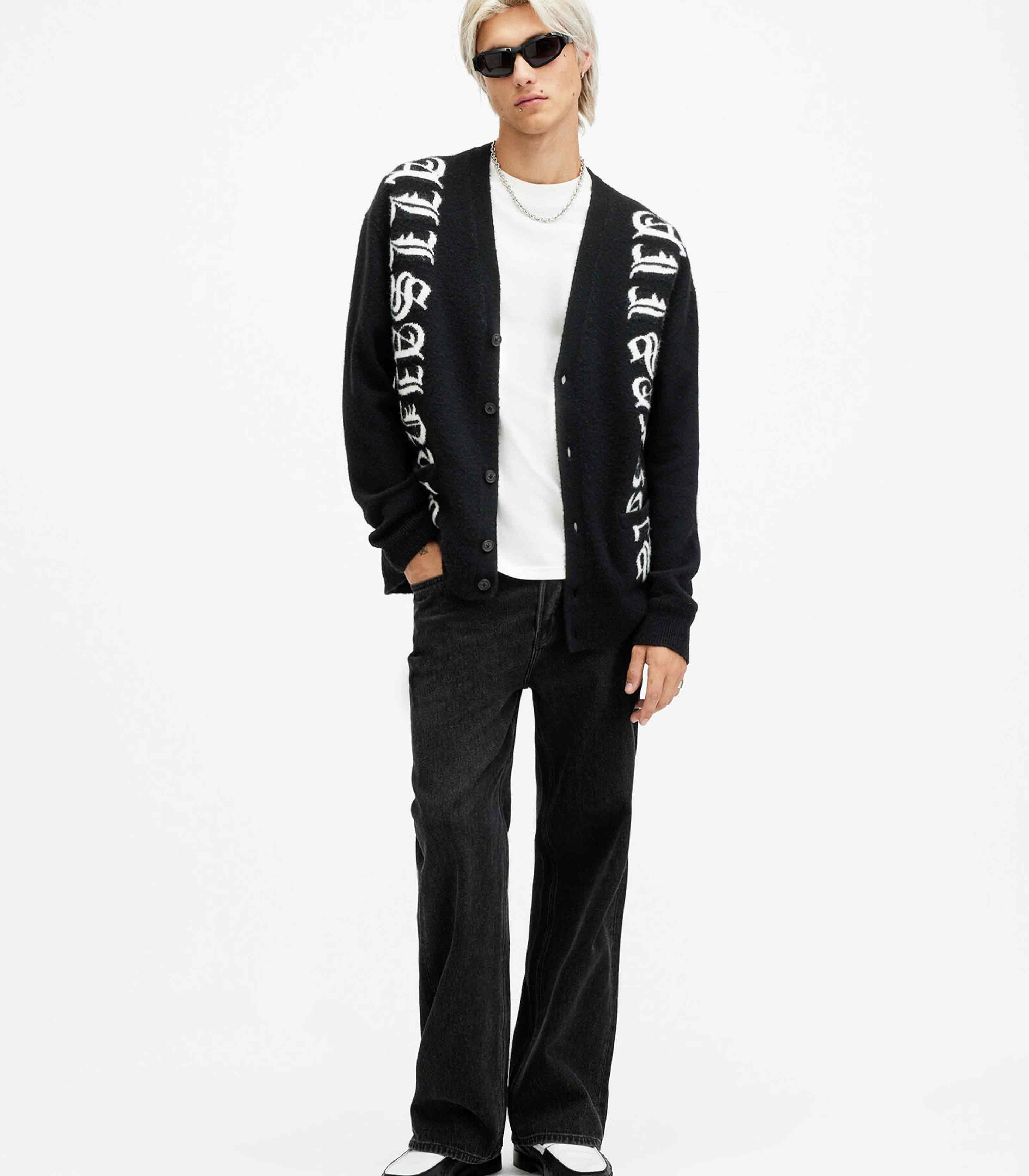• AllSaints- Scripture Gothic Jacquard Logo Cardigan