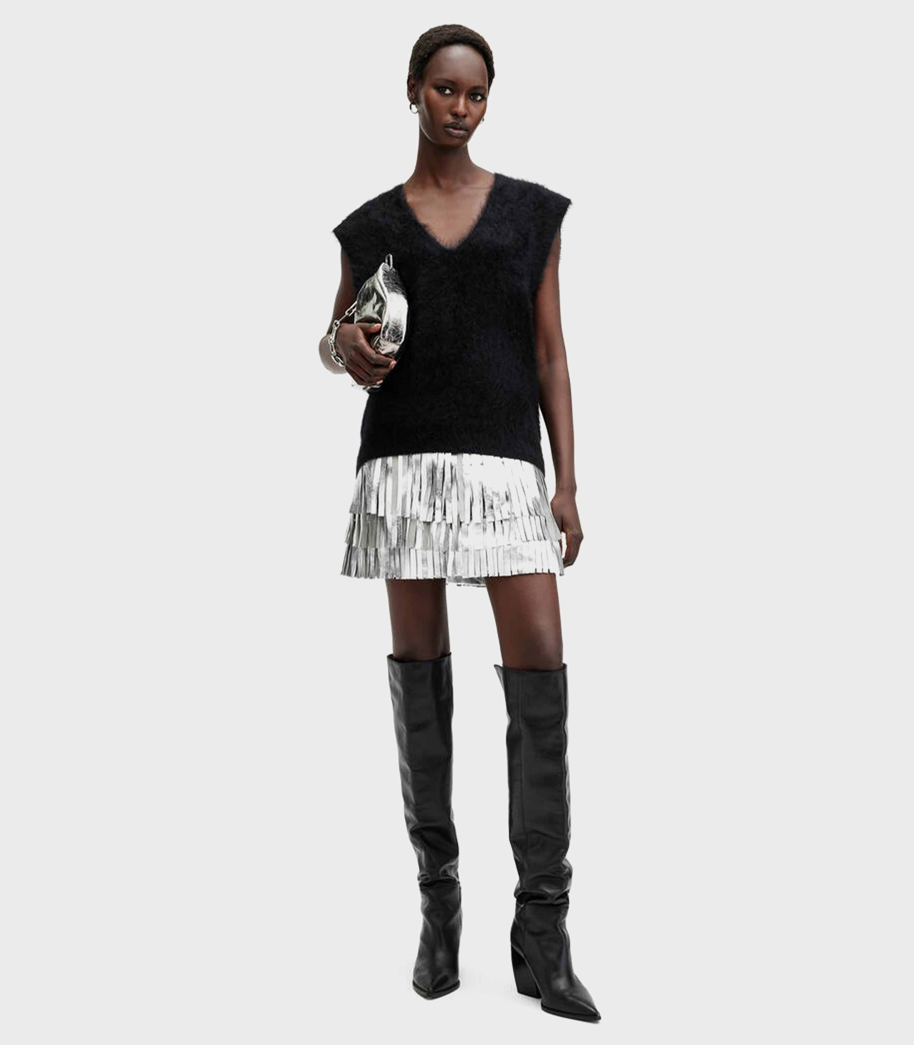 • AllSaints- Aisha Metallic Tassel Mini Skirt