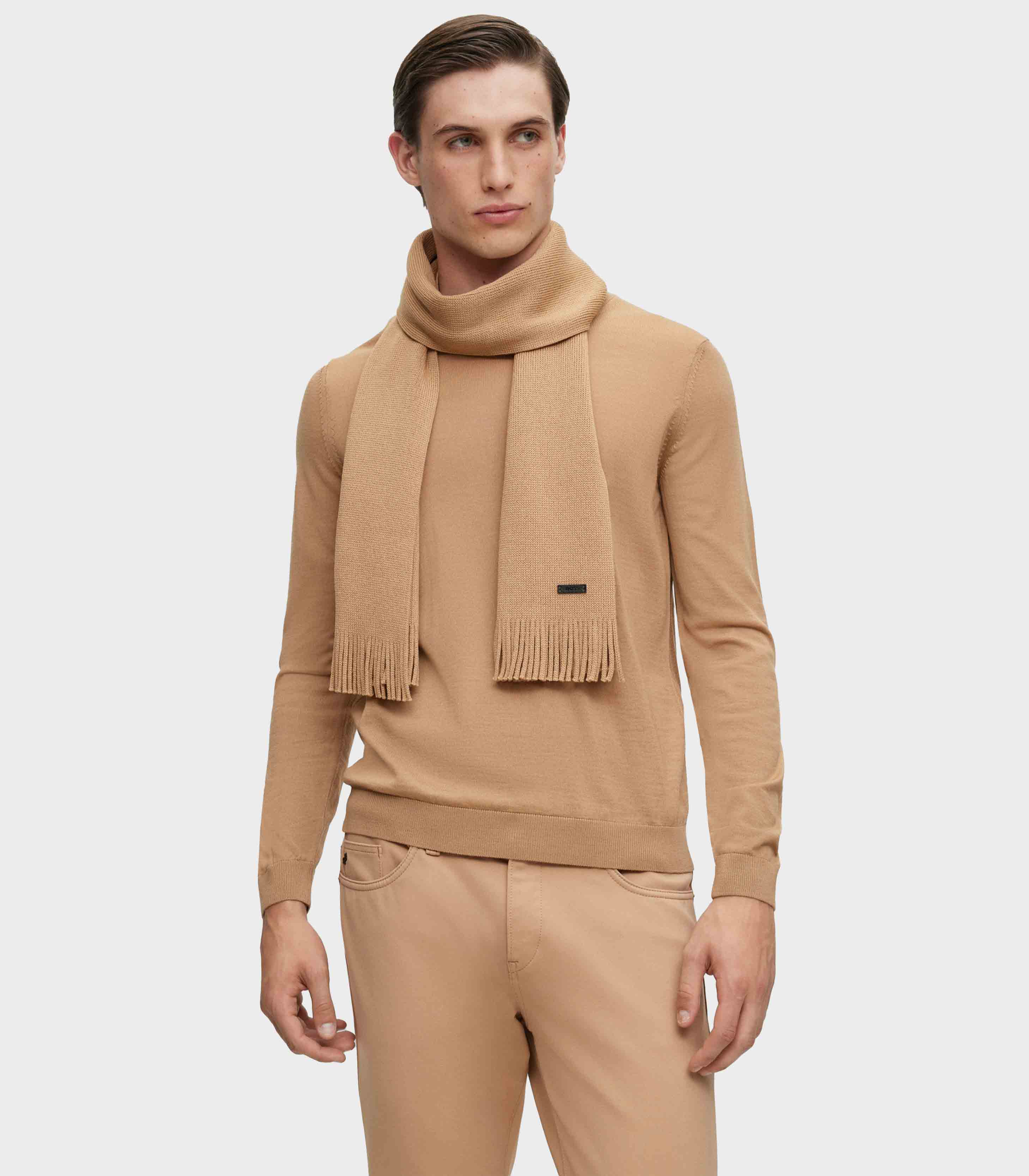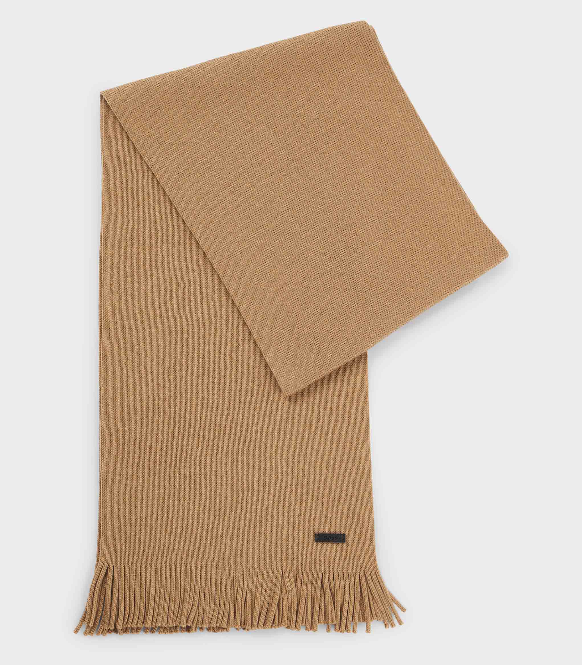 • basic raschel scarf / fake leather logo plaque / responsible style / matching to hat Fati