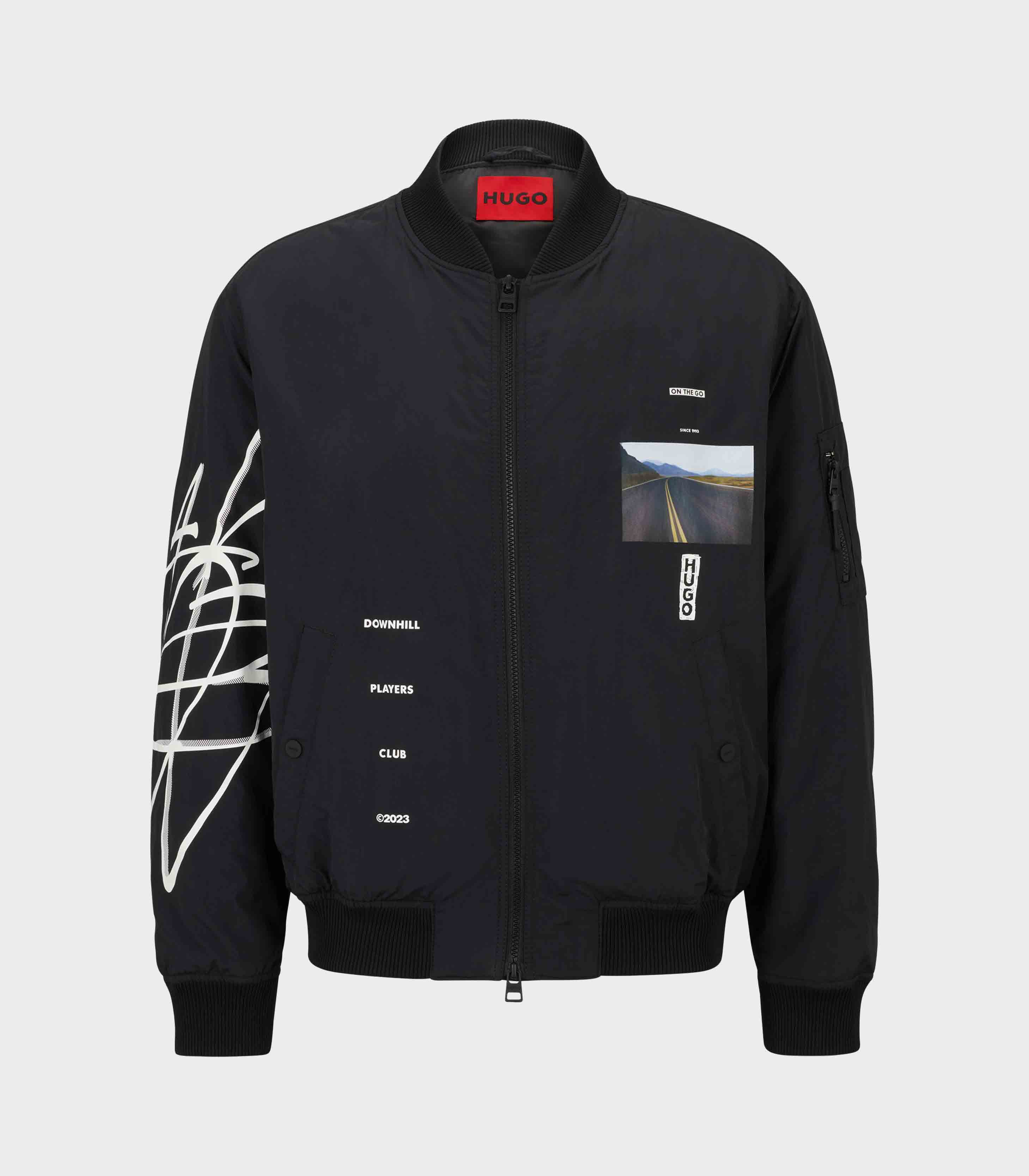 • bomber jackets / padded / printed with seasonal streetwear artwork / zip closure / welt pockets with snaps / zip pocket at sleeve/ inside zip pocket / fully lined / RESPONSIBLE / 100% certified recycled synthetics / water-repellent / piece dyed / HUGO streetwear capsule