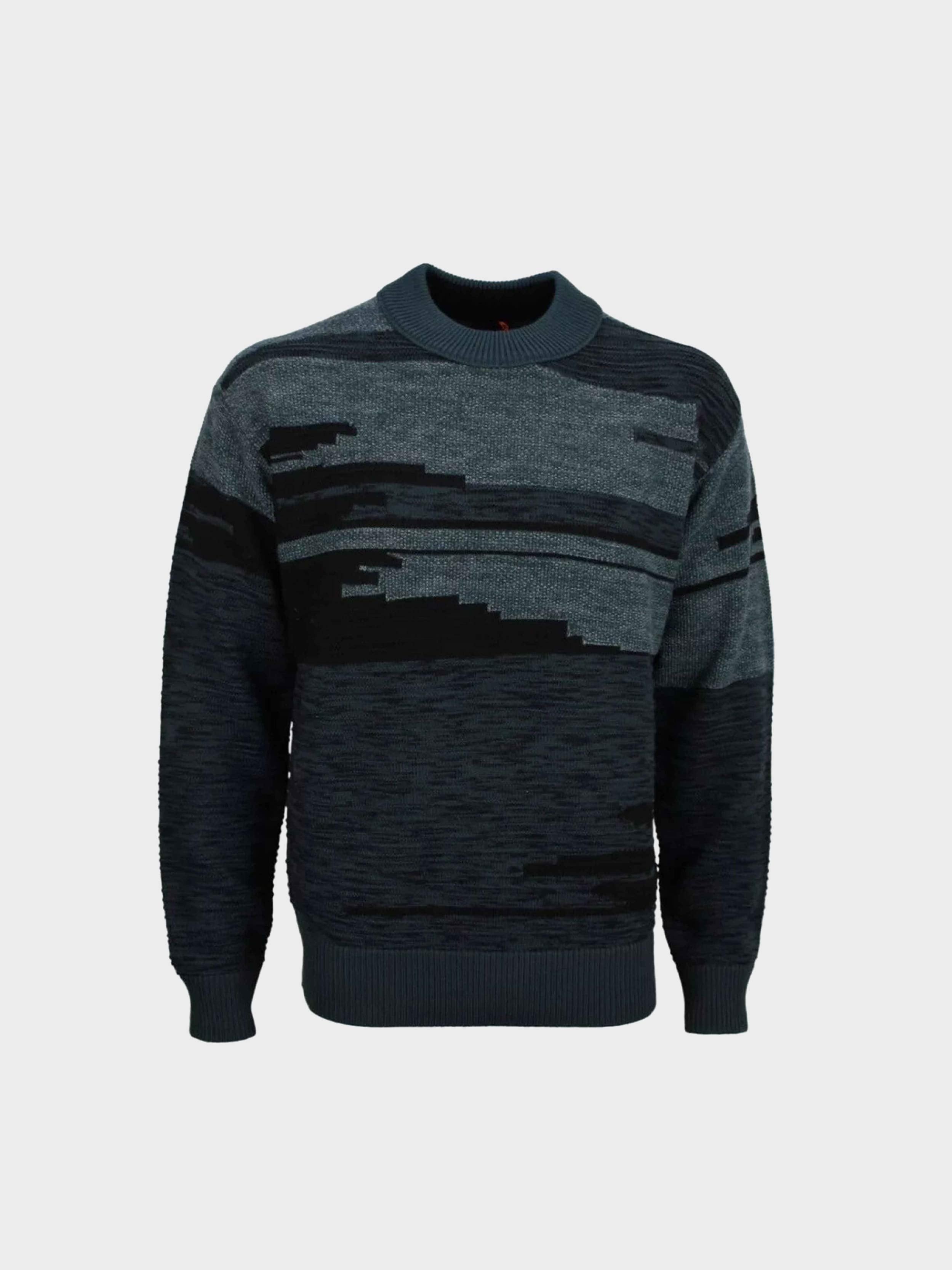 • BOSS Aglitch men's knitted sweater in black and green, item number 50497590 001. The comfort fit guarantees a comfortable wearing experience, while the modern round neck gives the sweater a contemporary touch. The ribbed collar, hem, and cuffs ensure a perfect fit and subtle structure. The patterned design captures the eye, while the very soft handle and fine knit with a touch of wool offer a luxurious feel. This knitted sweater is more than just clothing—it's a statement of style and comfort, an essential item in any man's wardrobe.
