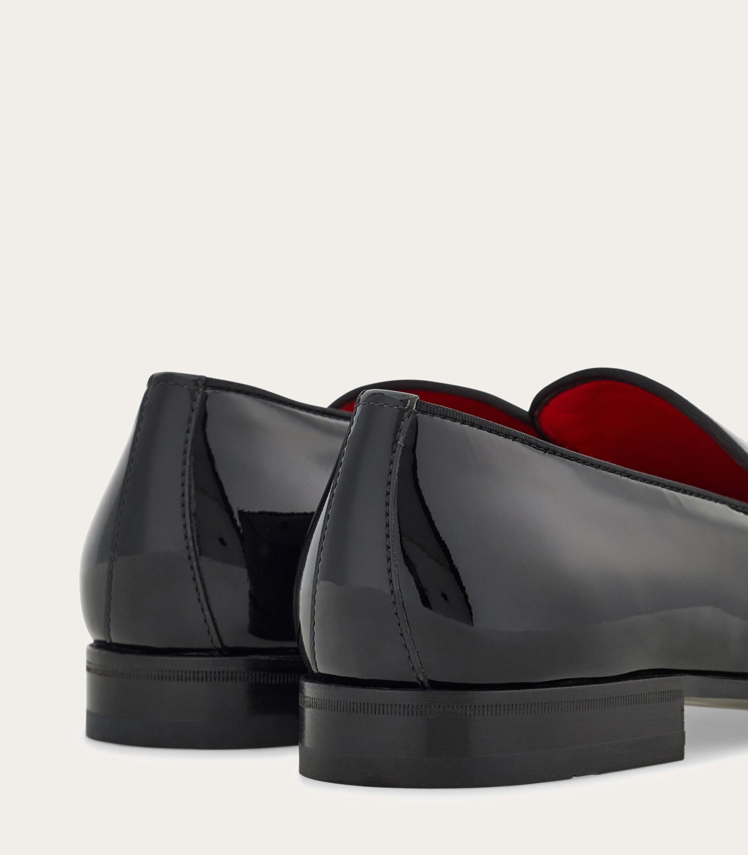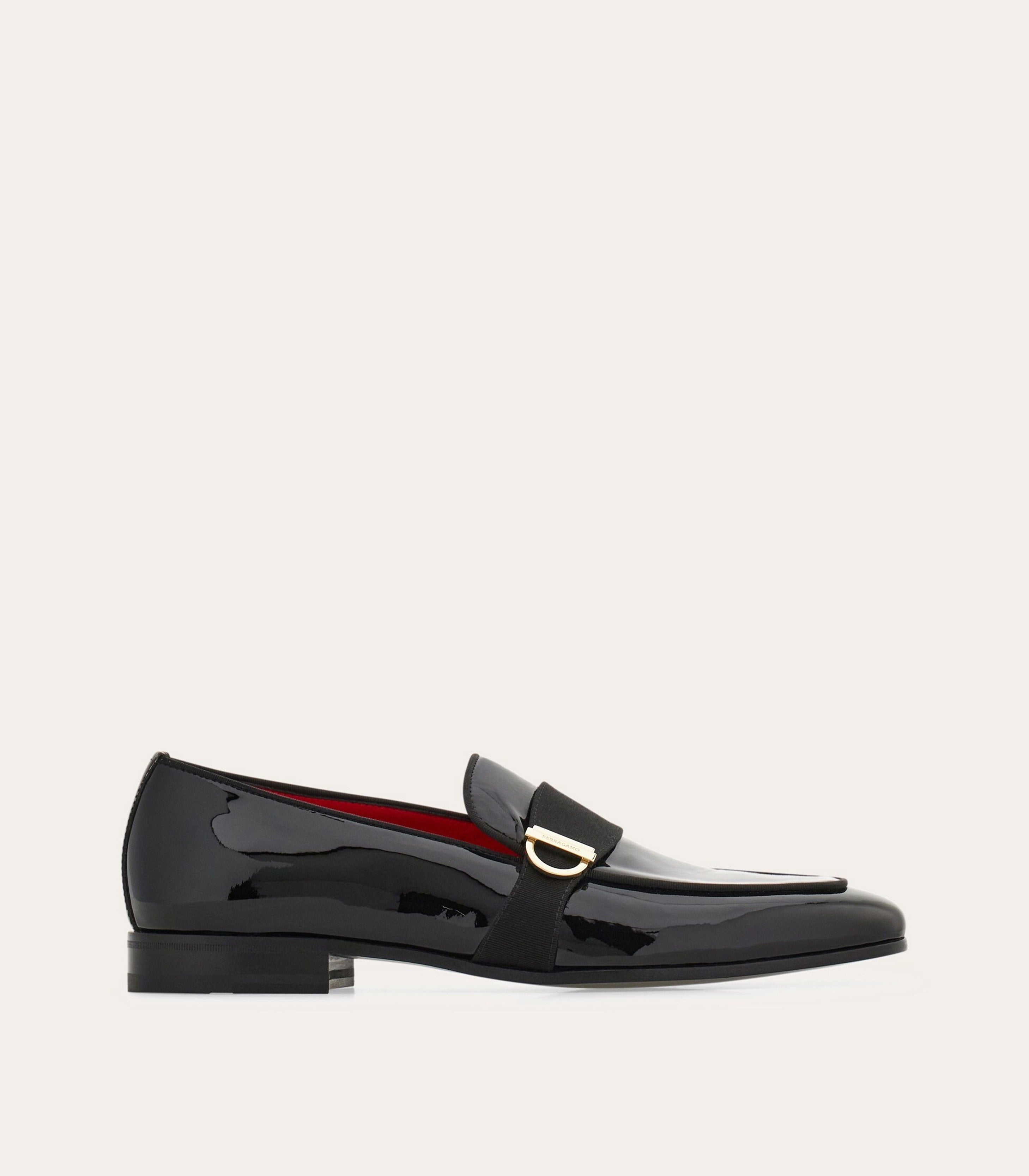 • High shine patent leather confirms the uptown feel of this slick gentlemen’s loafer.
