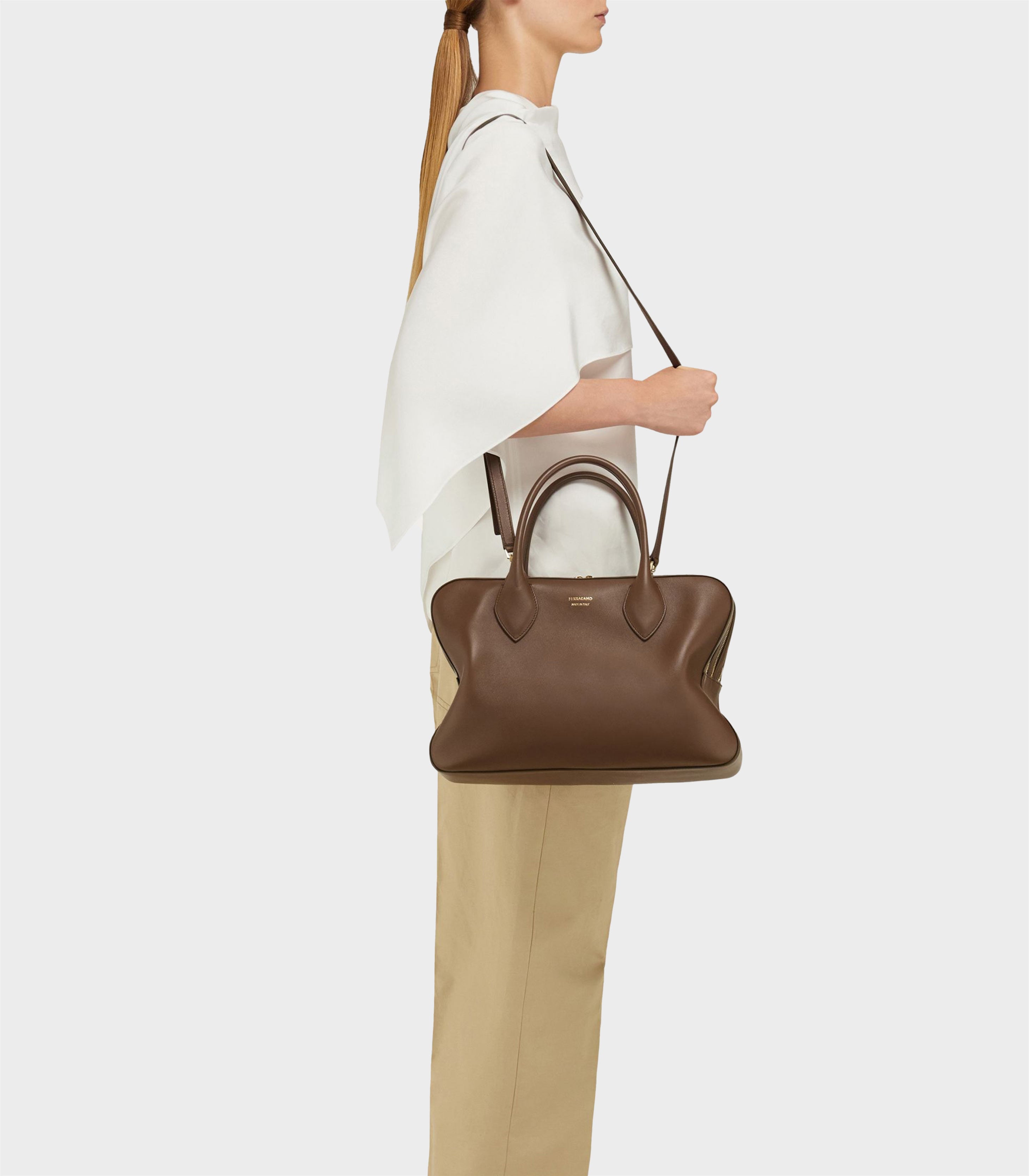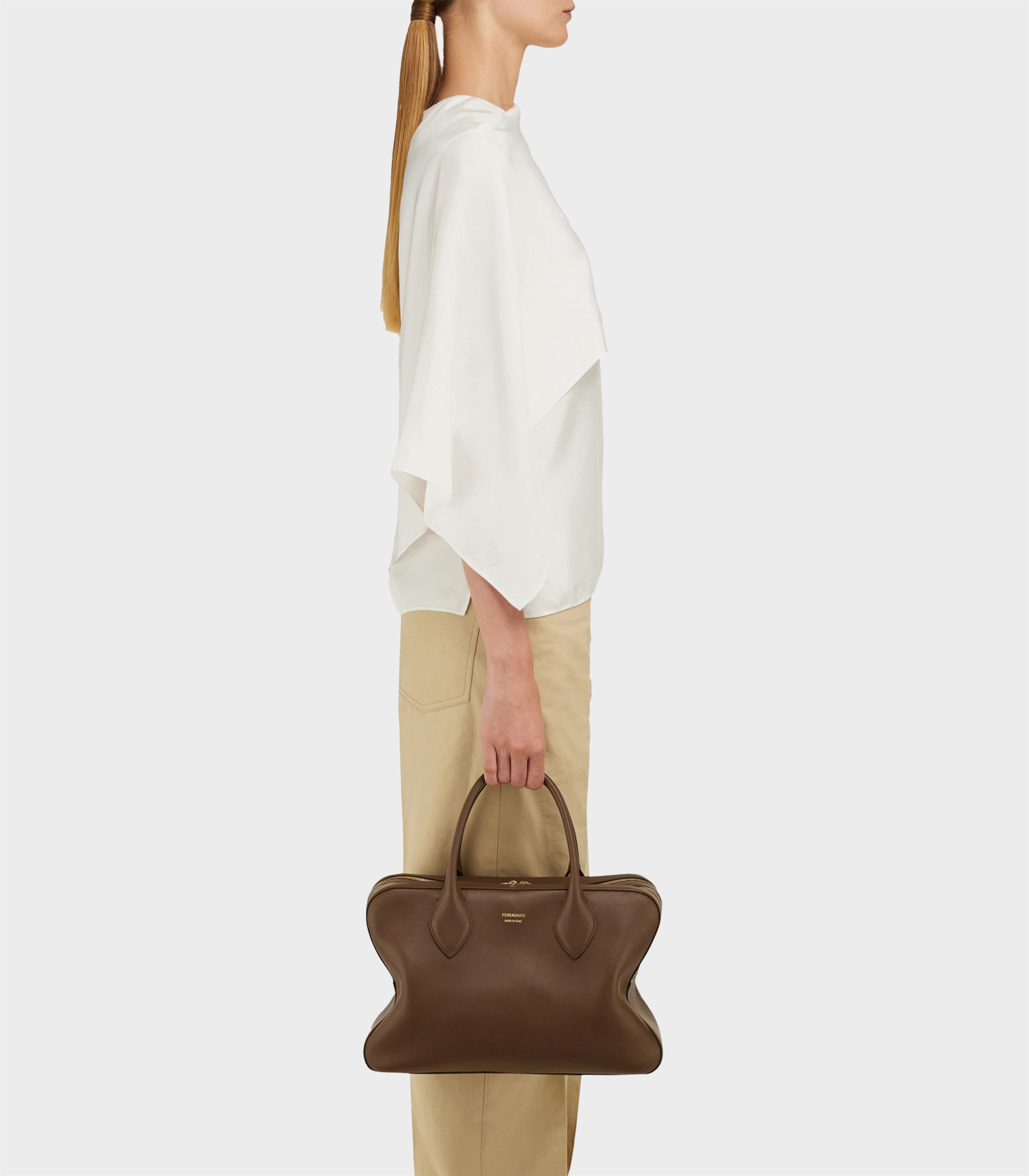 • Made of calfskin with a natural, grainy texture, this new Ferragamo take on the tote bag is relaxed style with a contemporary edge.